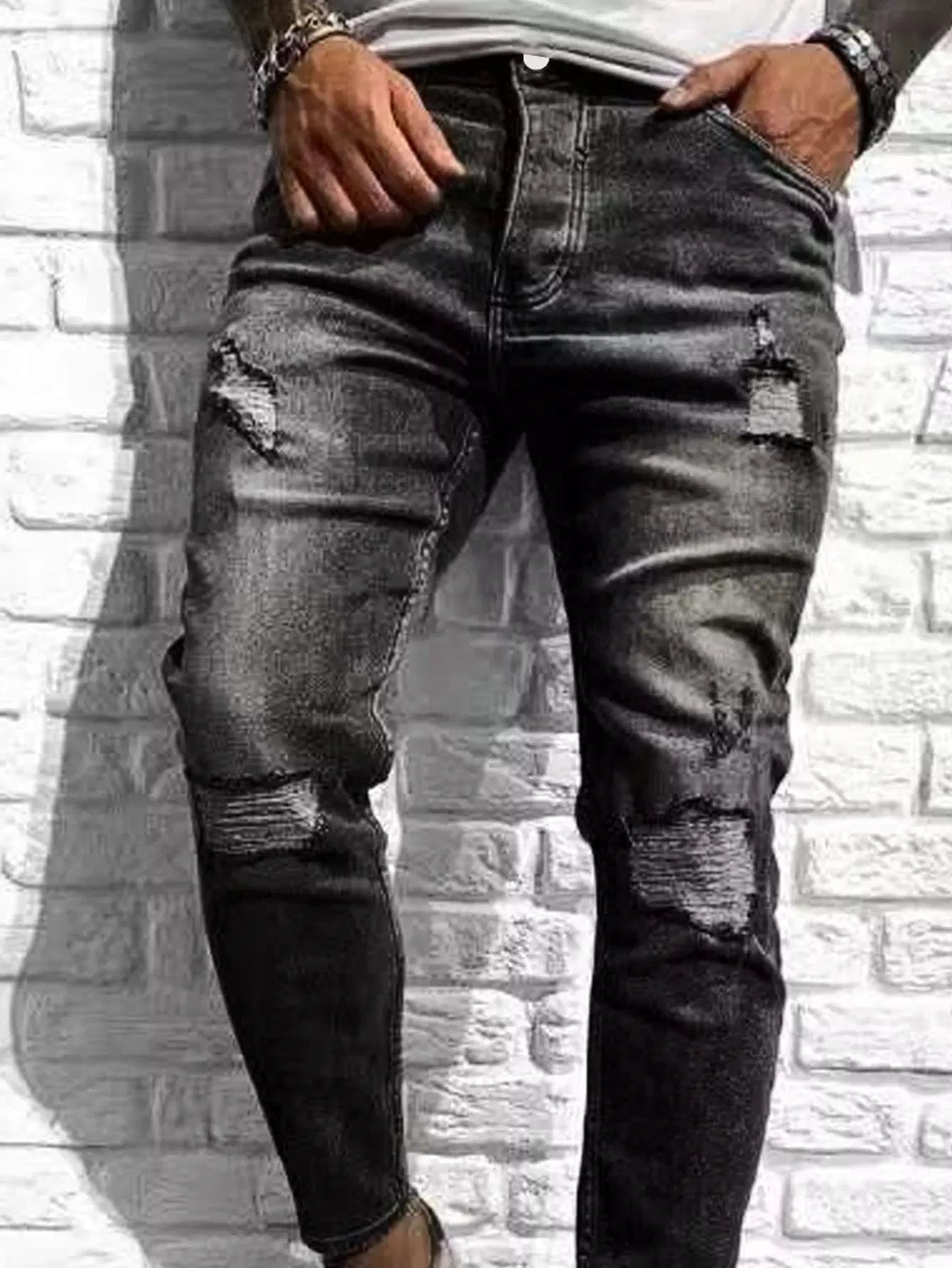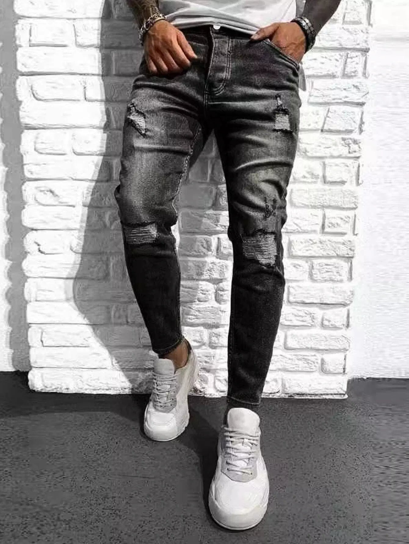 Men Ripped Frayed Cat Scratch Skinny Jeans