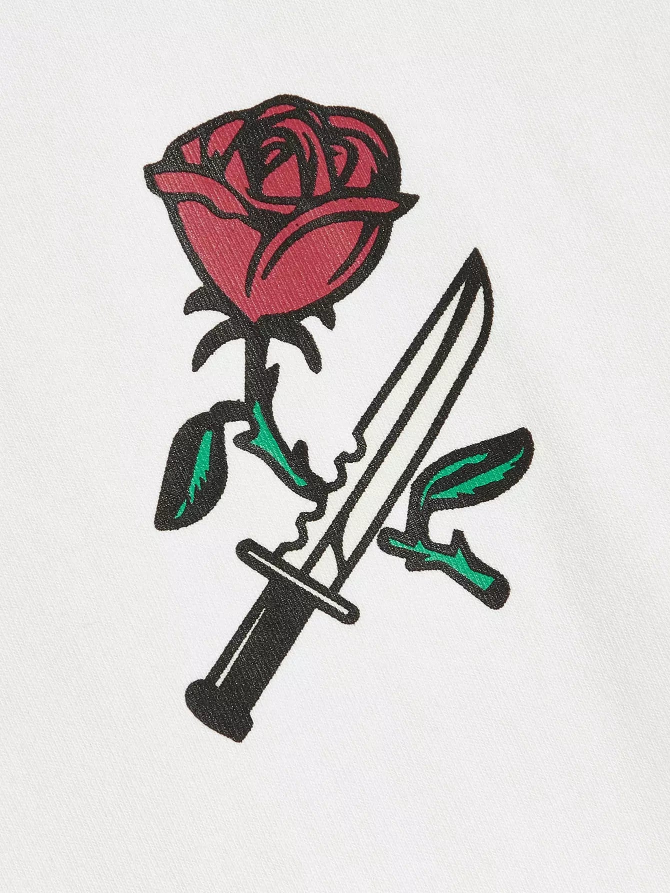 Men Rose and Knife Print Two Tone Tee