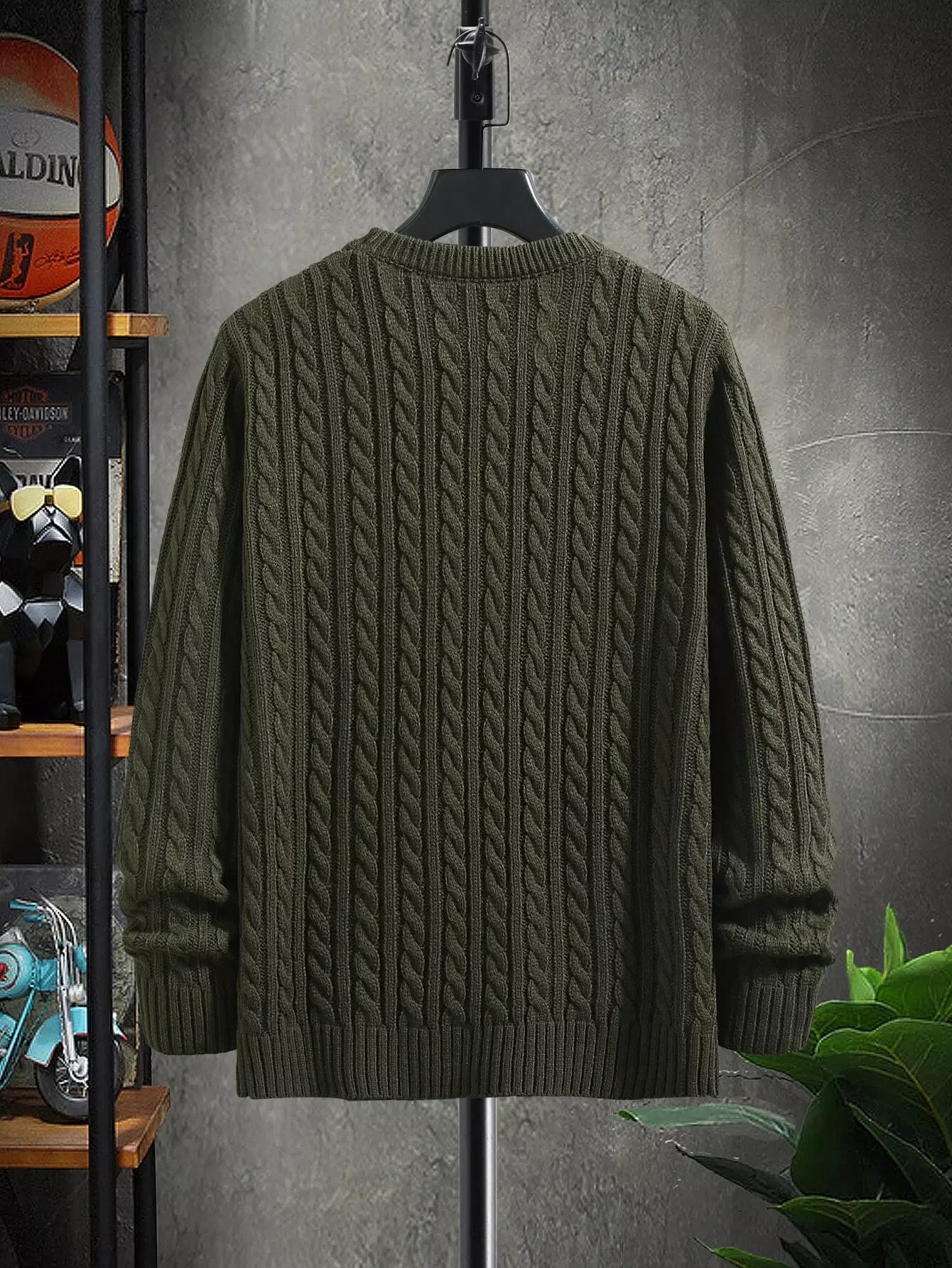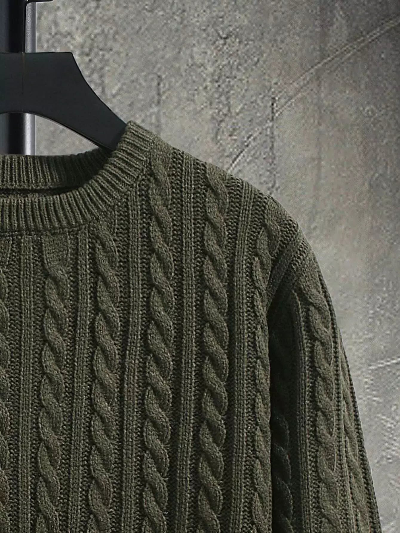 Men Solid Cable Knit Sweater