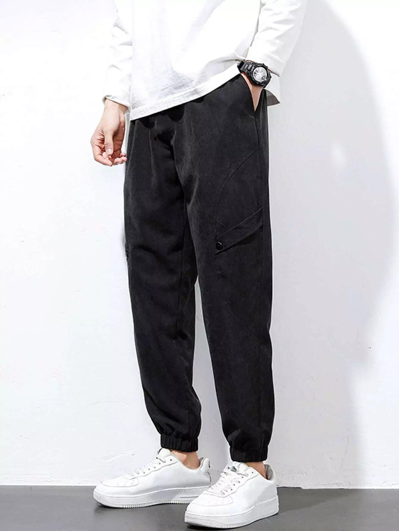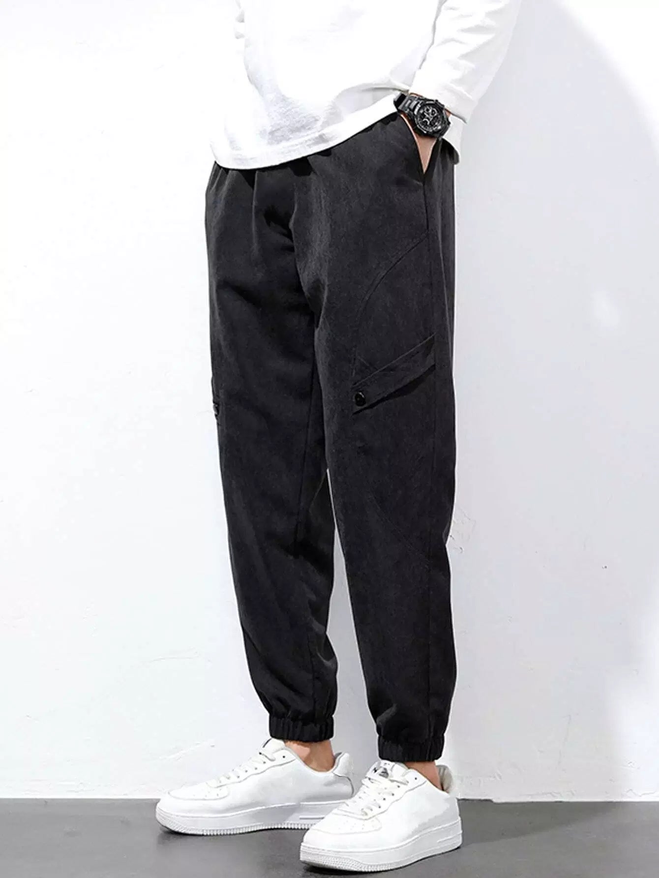Men Solid Slant Pocket Carrot Pants