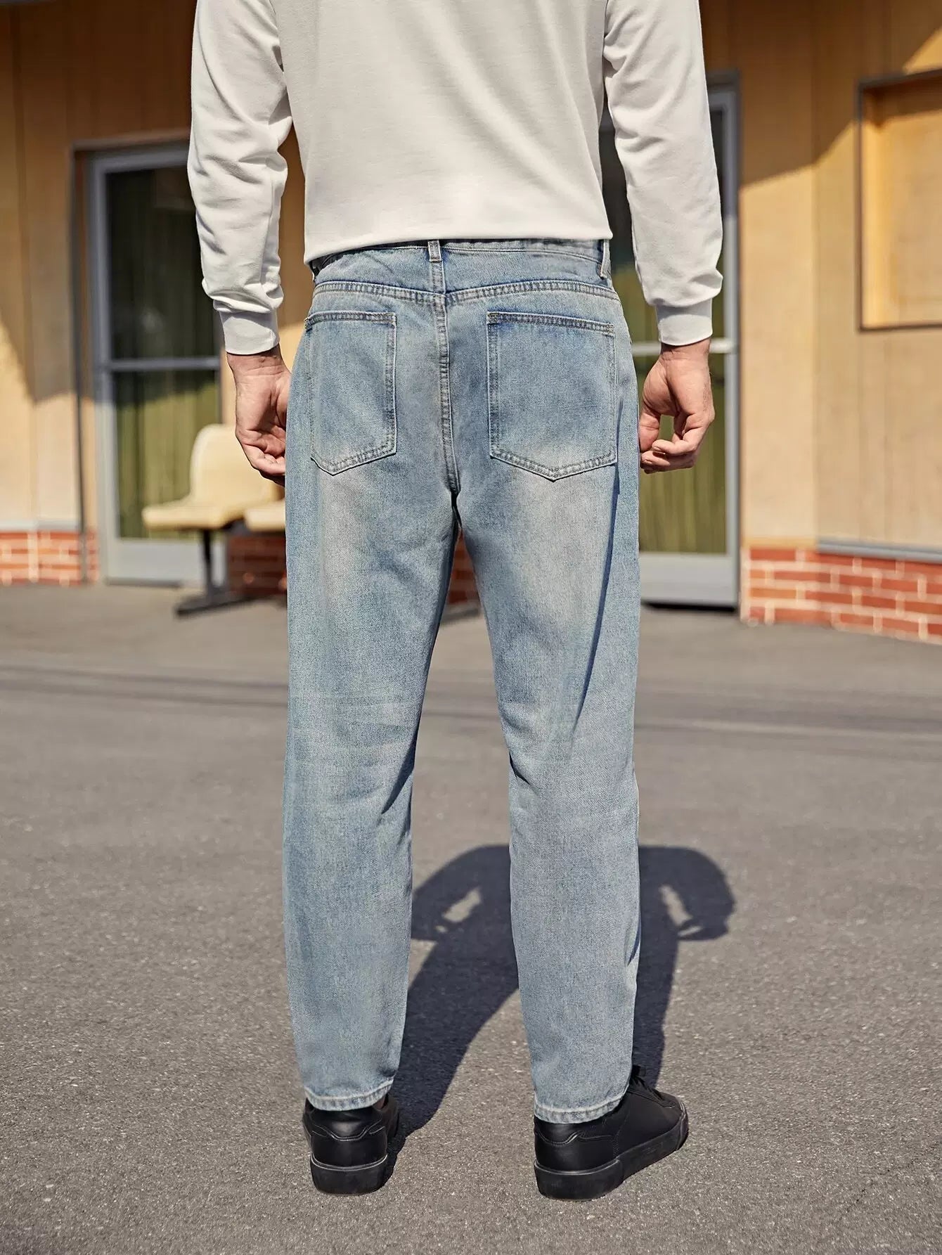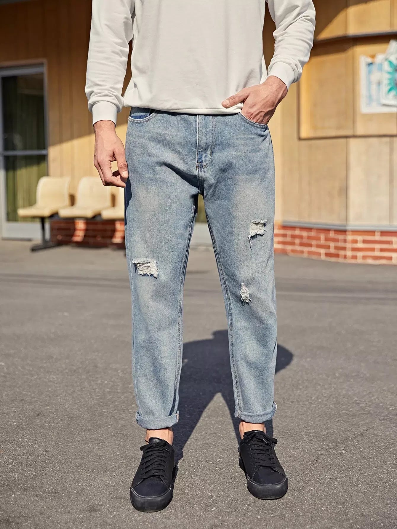 Men Stone Wash Ripped Straight Leg Jeans