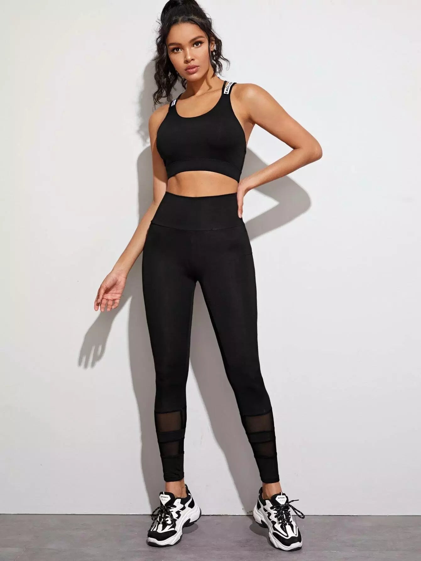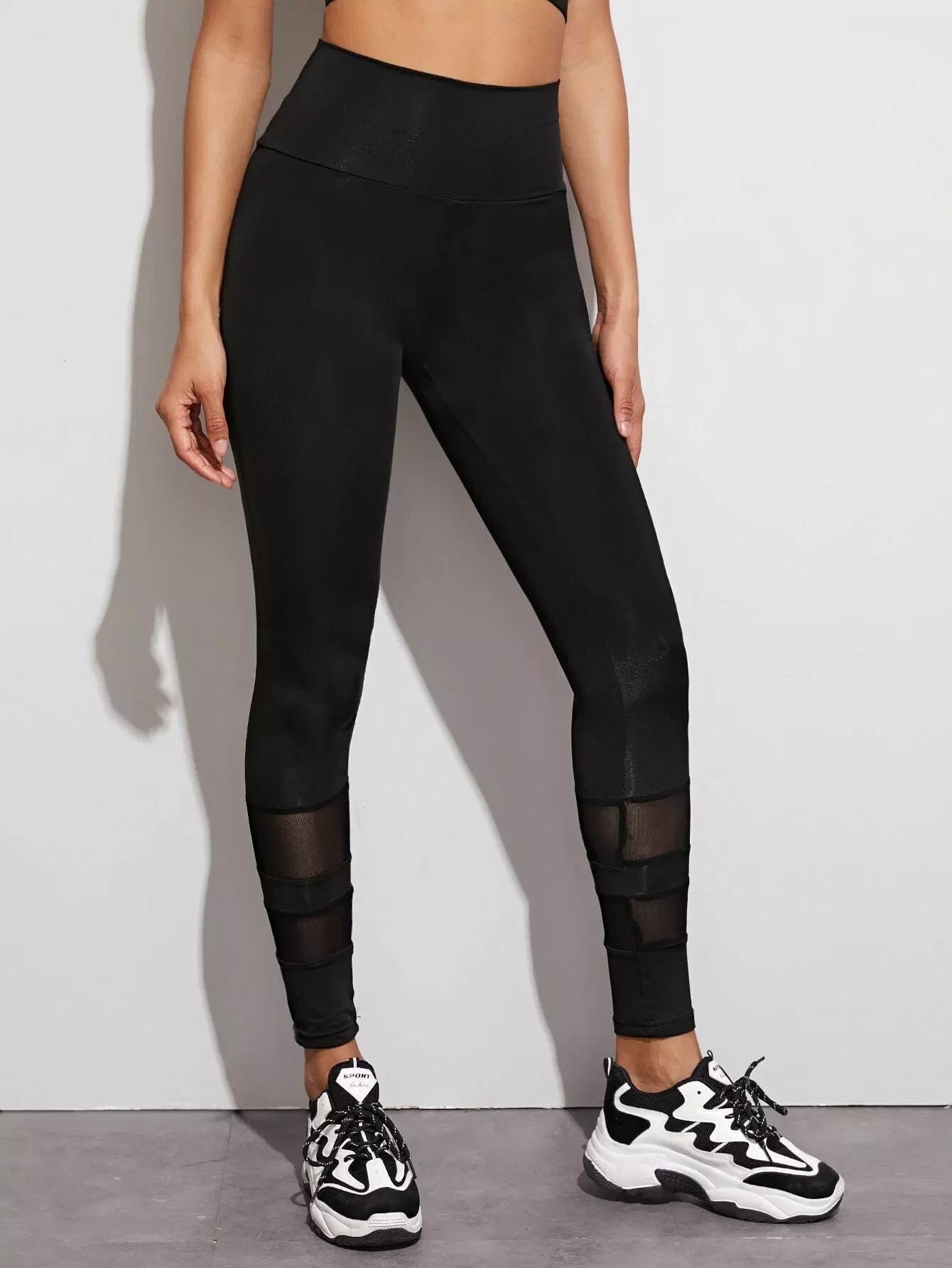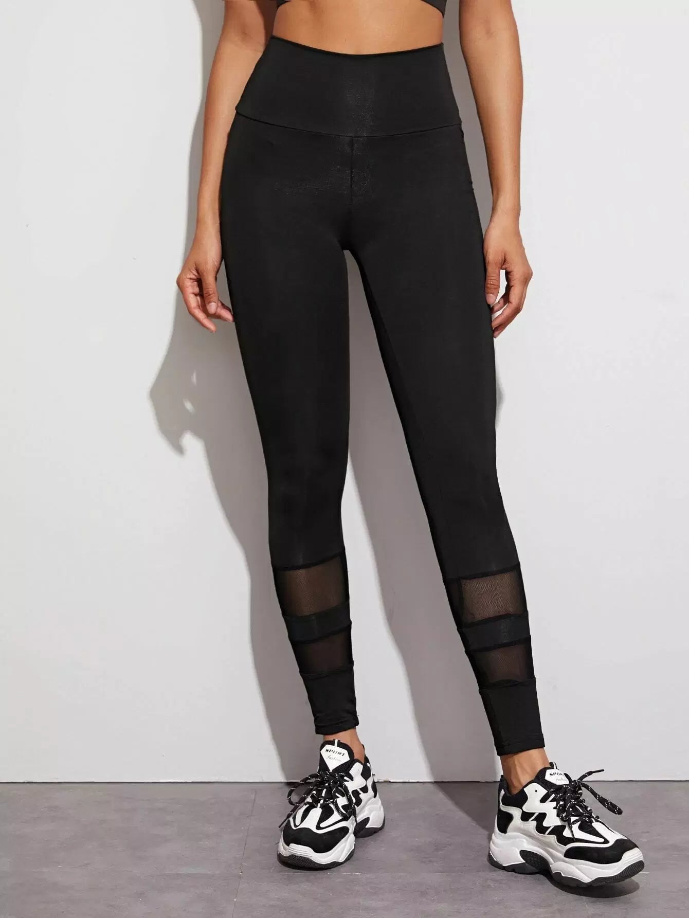 Mesh Insert Wide Band Waist Sports Leggings