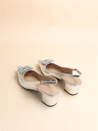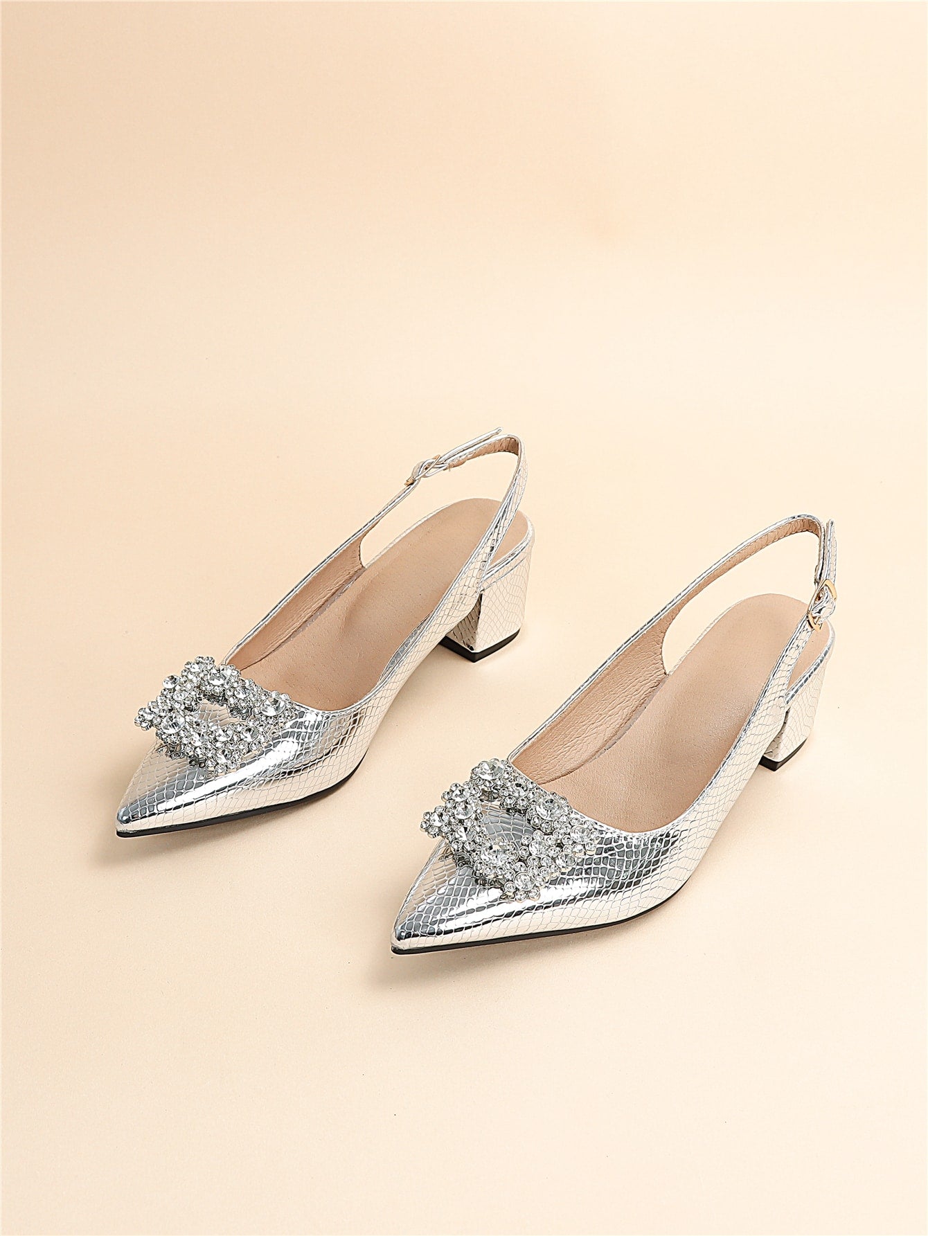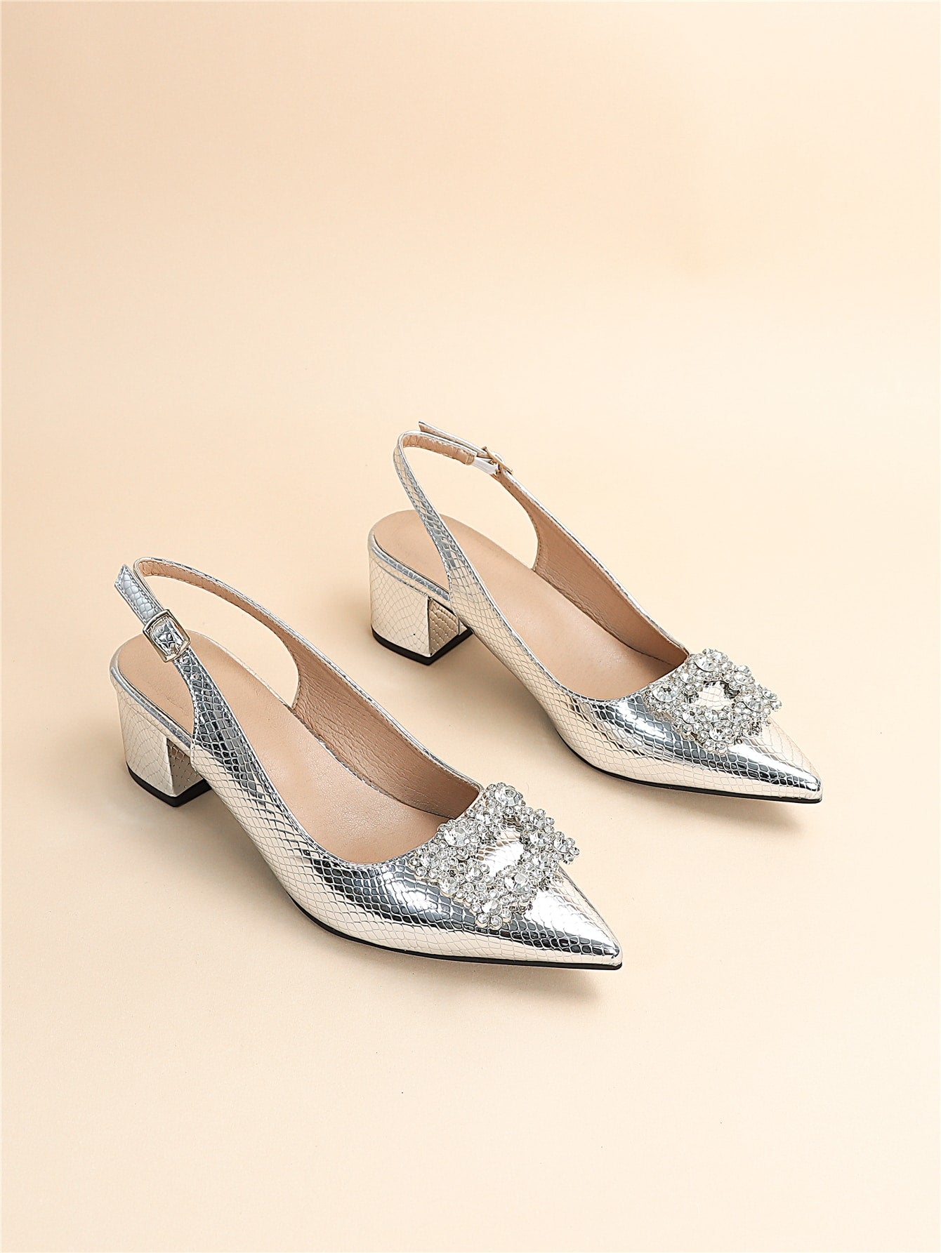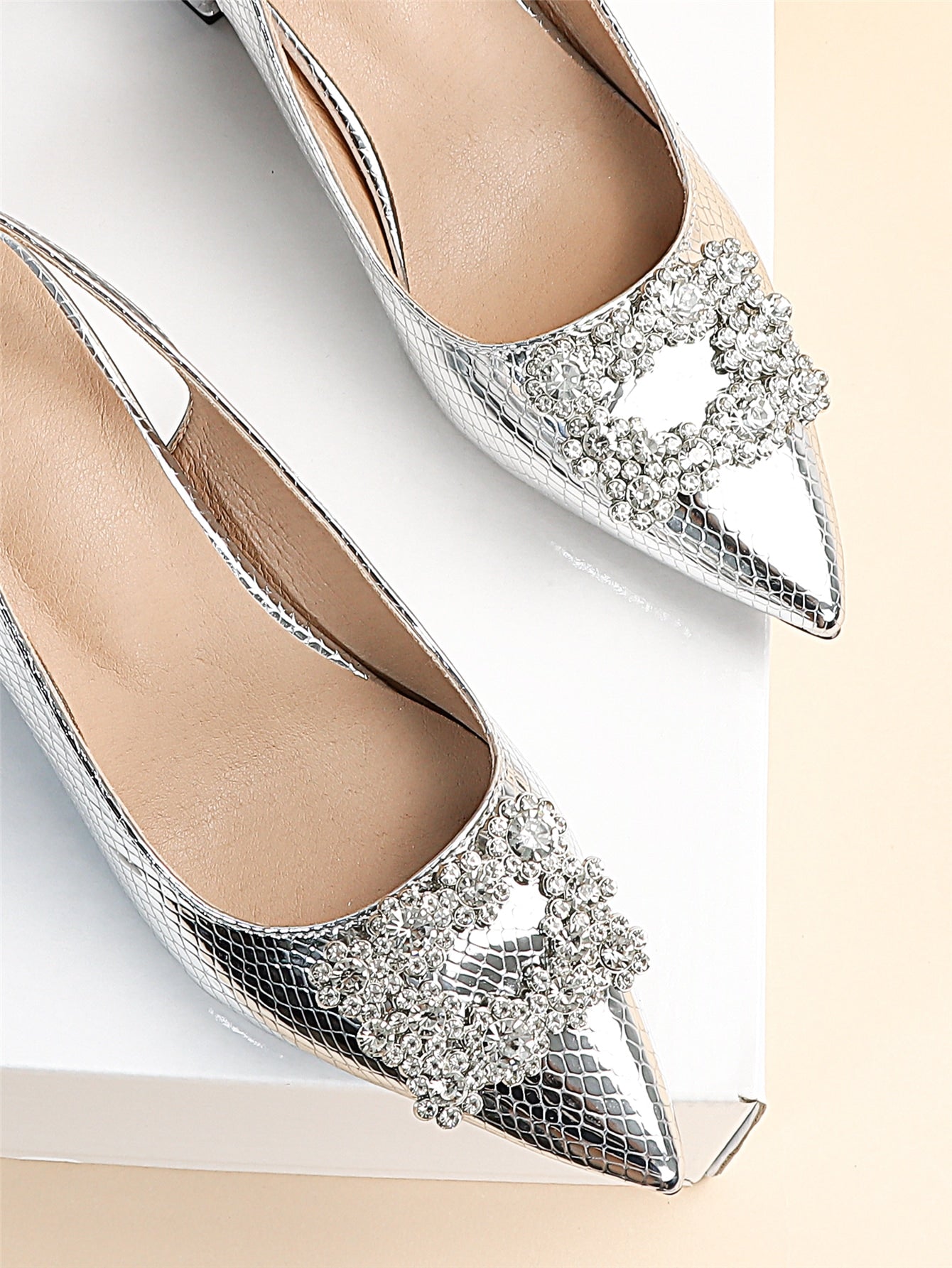 Metallic Snakeskin Embossed Rhinestone Decor Slingback Pumps