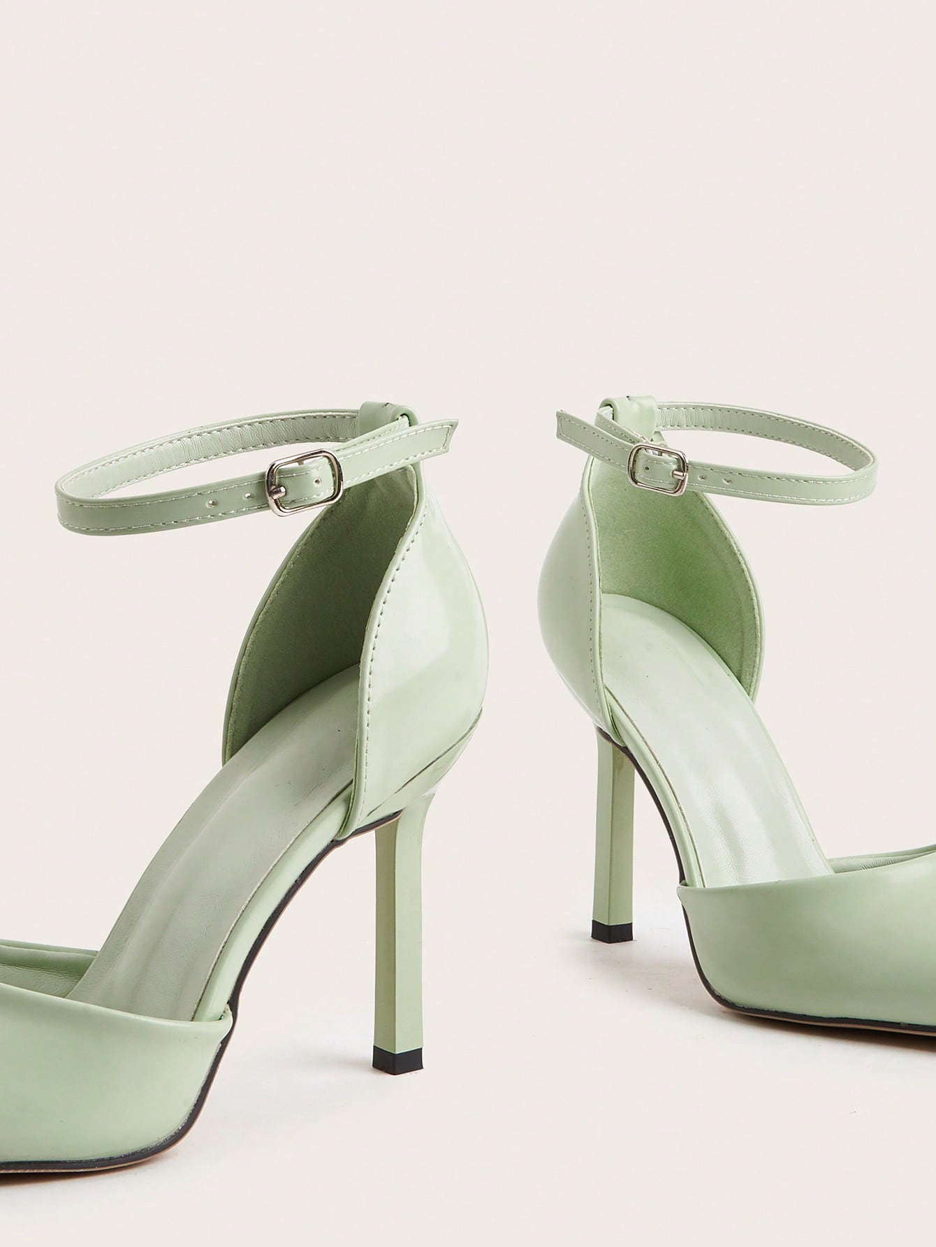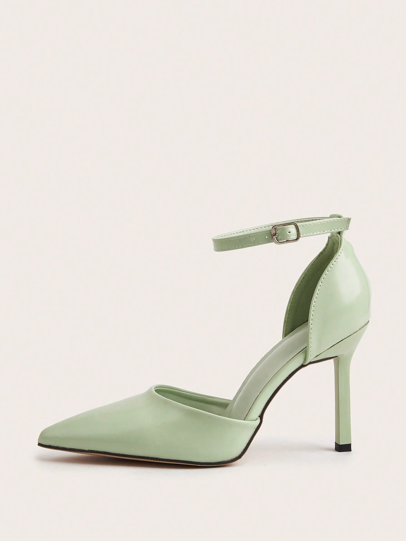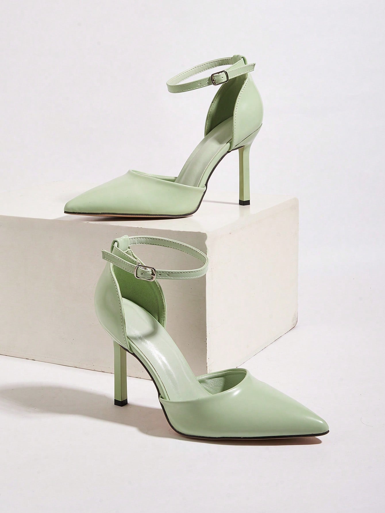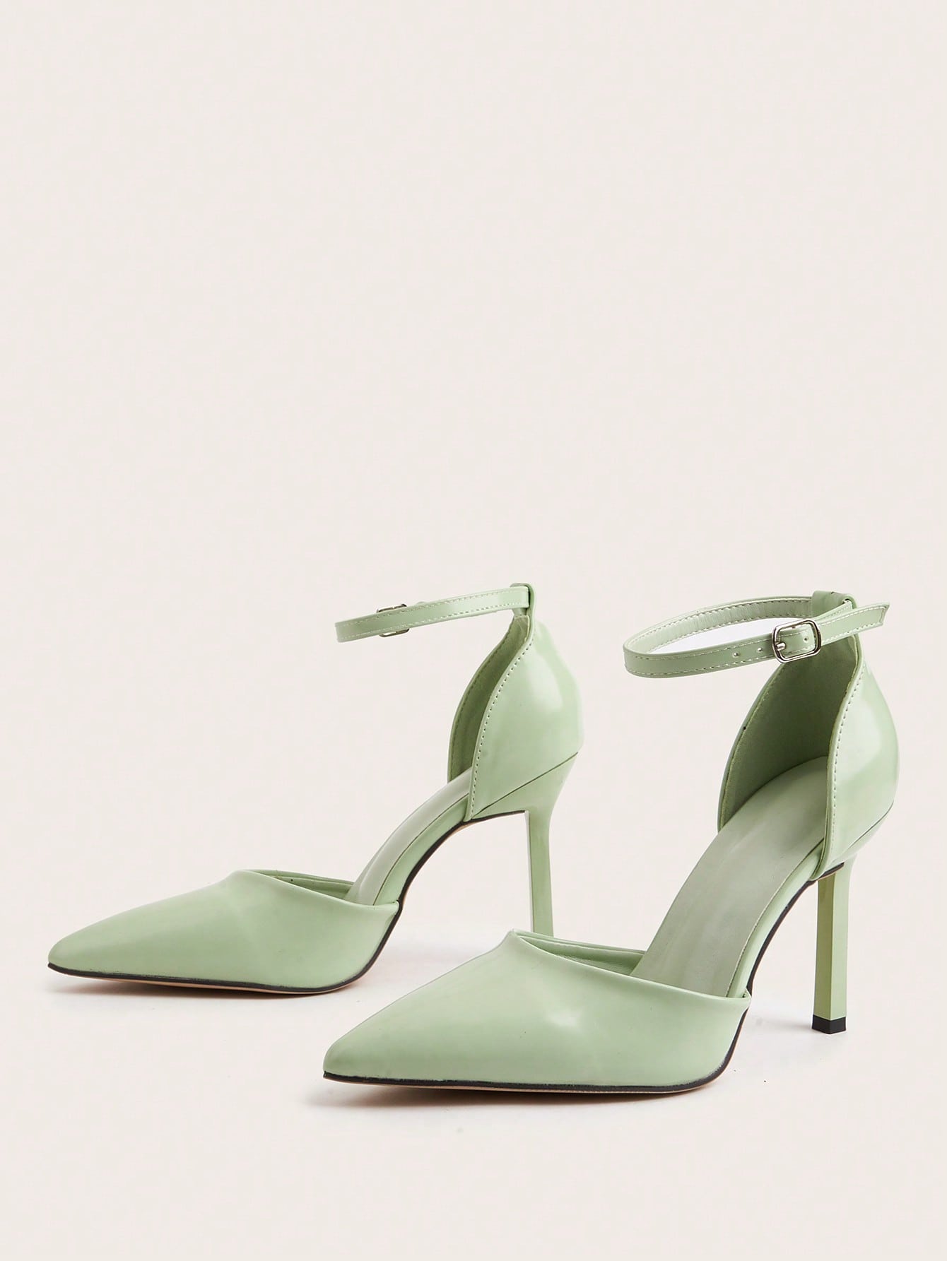 women Mint Green PU Leather Pointed Toe Hollow Stiletto Heel Dress Shoes For Women