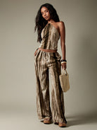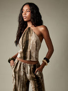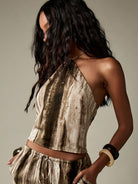 MISSGUIDED Abstract Pattern Halter Neck Corset Top Festival Party Summer Concert Clubwear Metallic Velvet