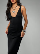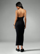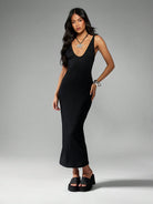 women MISSGUIDED Deep V-Neck Ribbed Knit Bodycon Maxi Dress With Cross Back Evening Cocktail Party Wedding Guest Stretchy Form Fitting Long Gown
