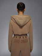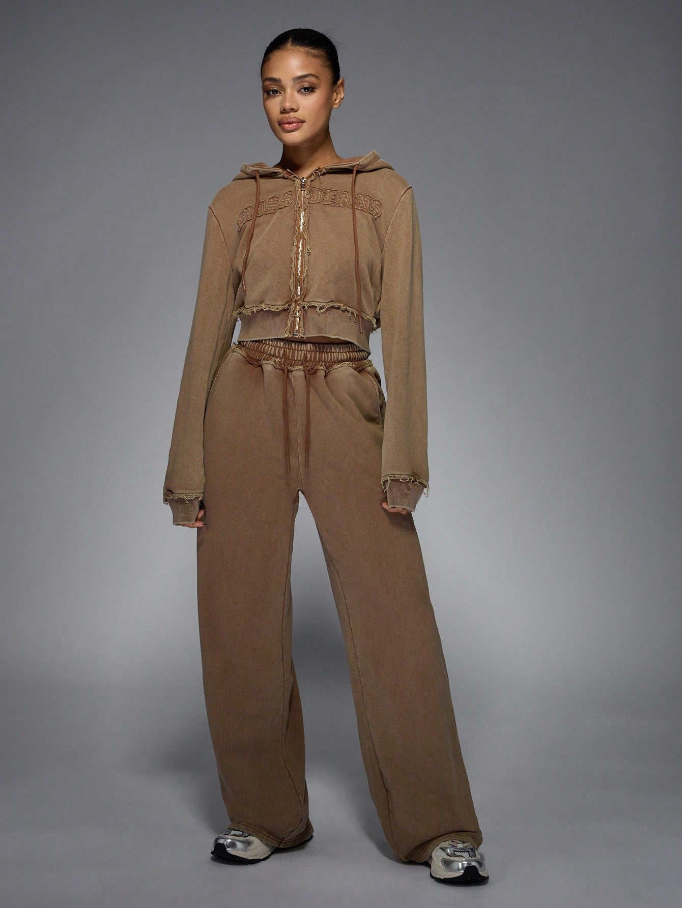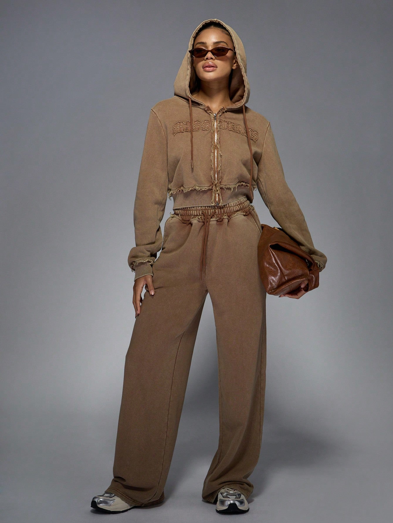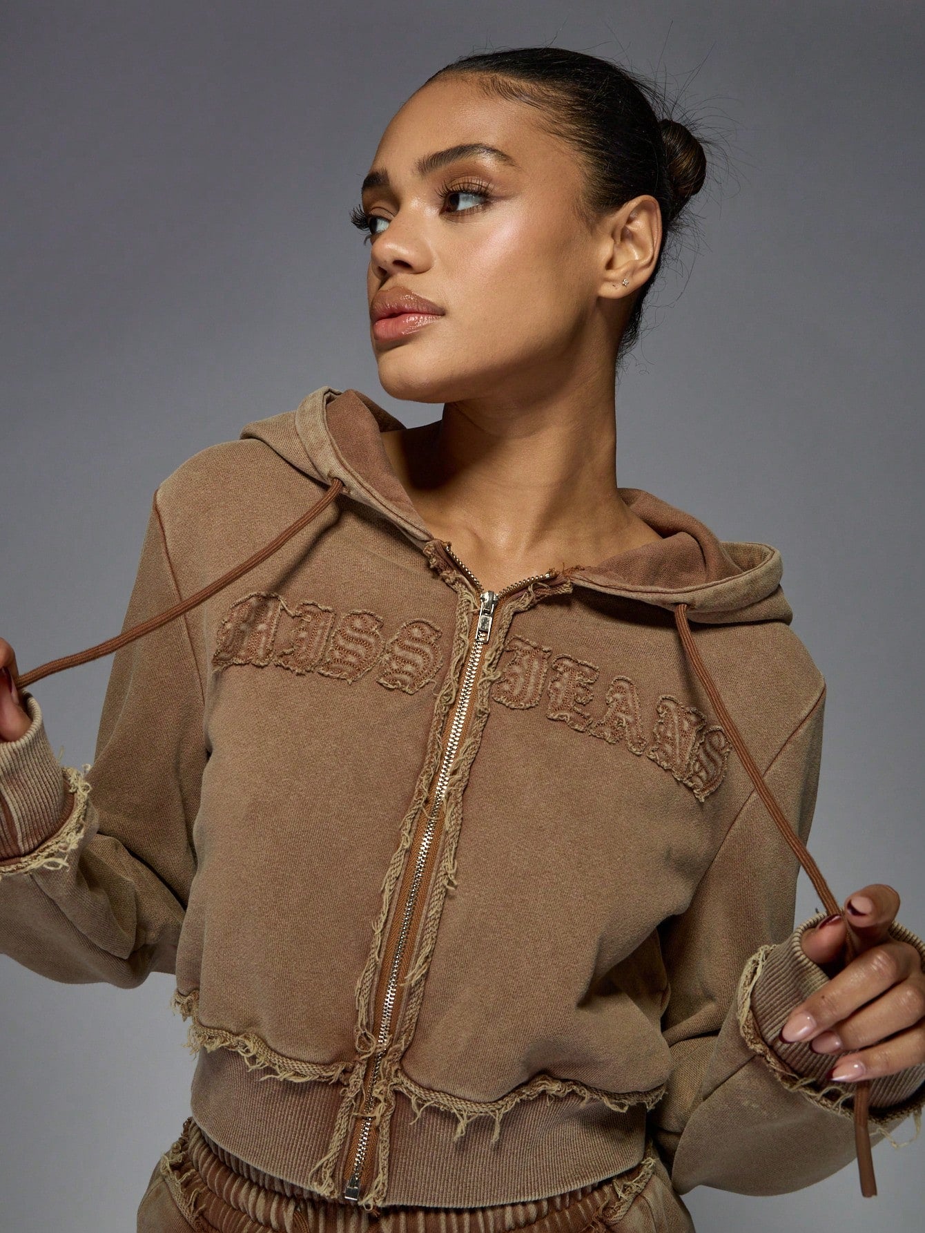 MISSGUIDED Distressed Zip Up Cropped Hoodie Vintage Style Frayed Edges Casual Athletic Loungewear Fall