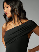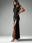 MISSGUIDED Evening Formal One Shoulder Floor Length Maxi Dress With Ruched Detailing High Slit Party