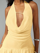 MISSGUIDED Halter Neck Mini Dress Asymmetric Ruffle High Low Hem Draped Front Party Evening Summer Wedding