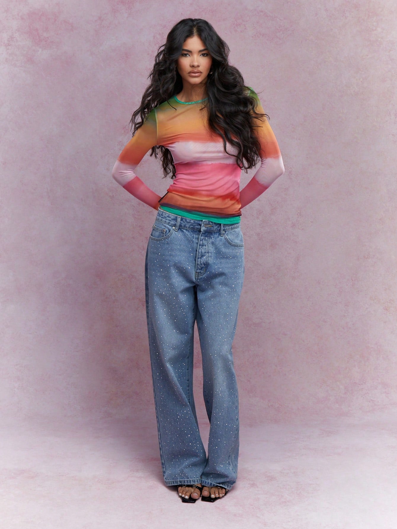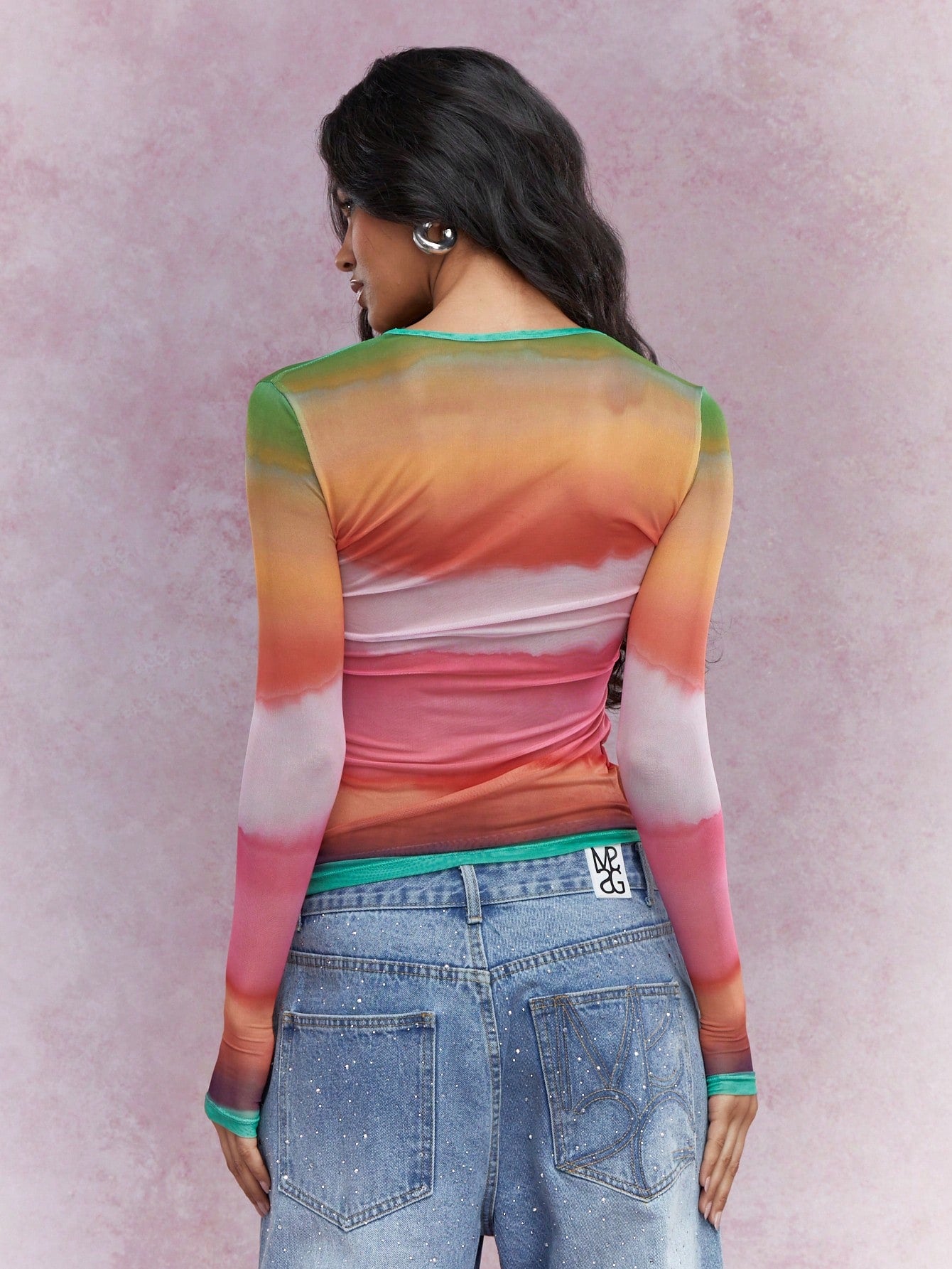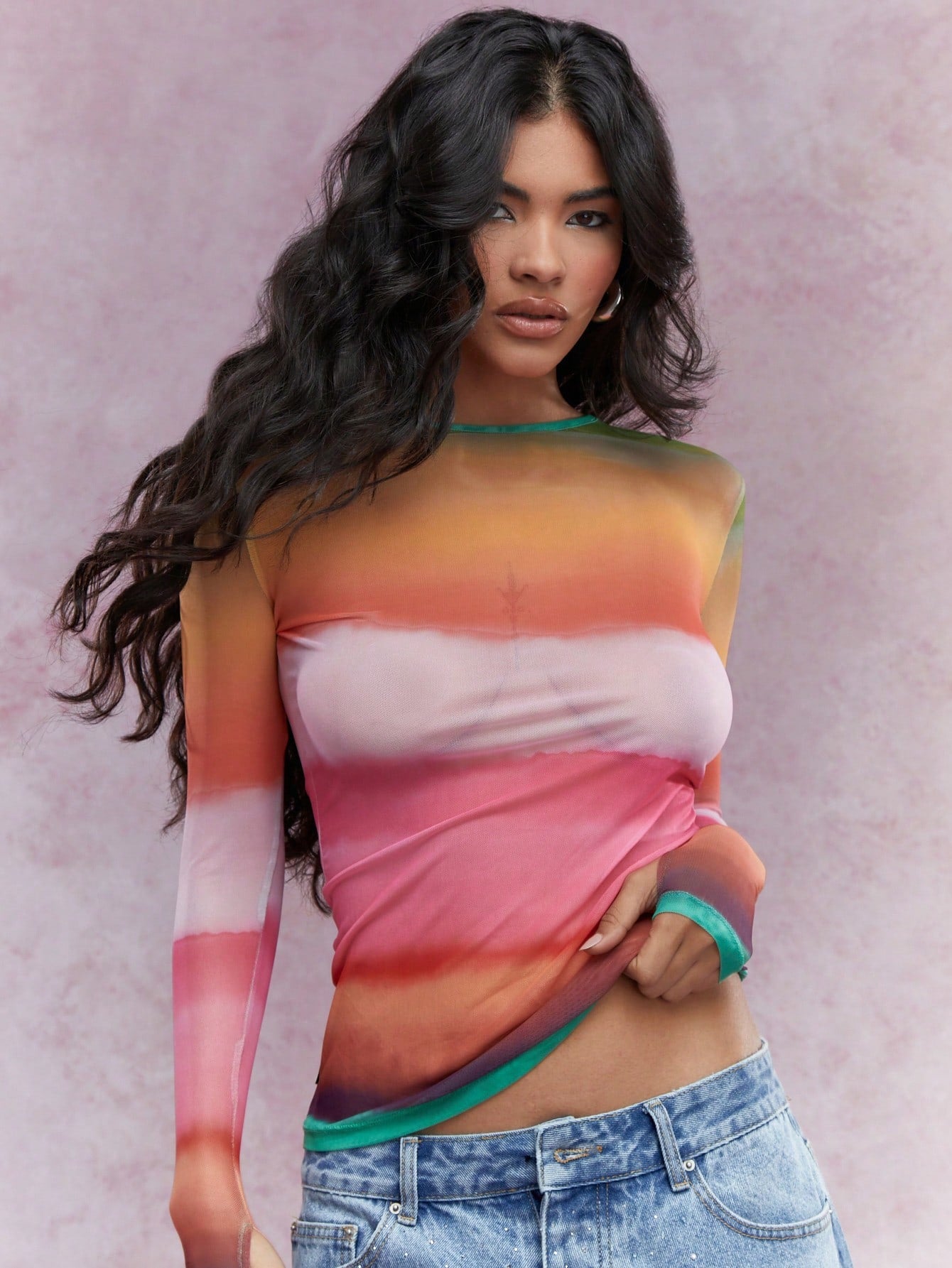 MISSGUIDED Printed Sheer Mesh Long Sleeve Top