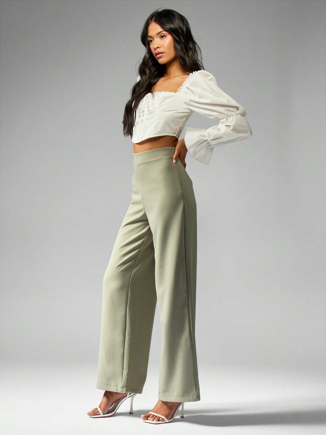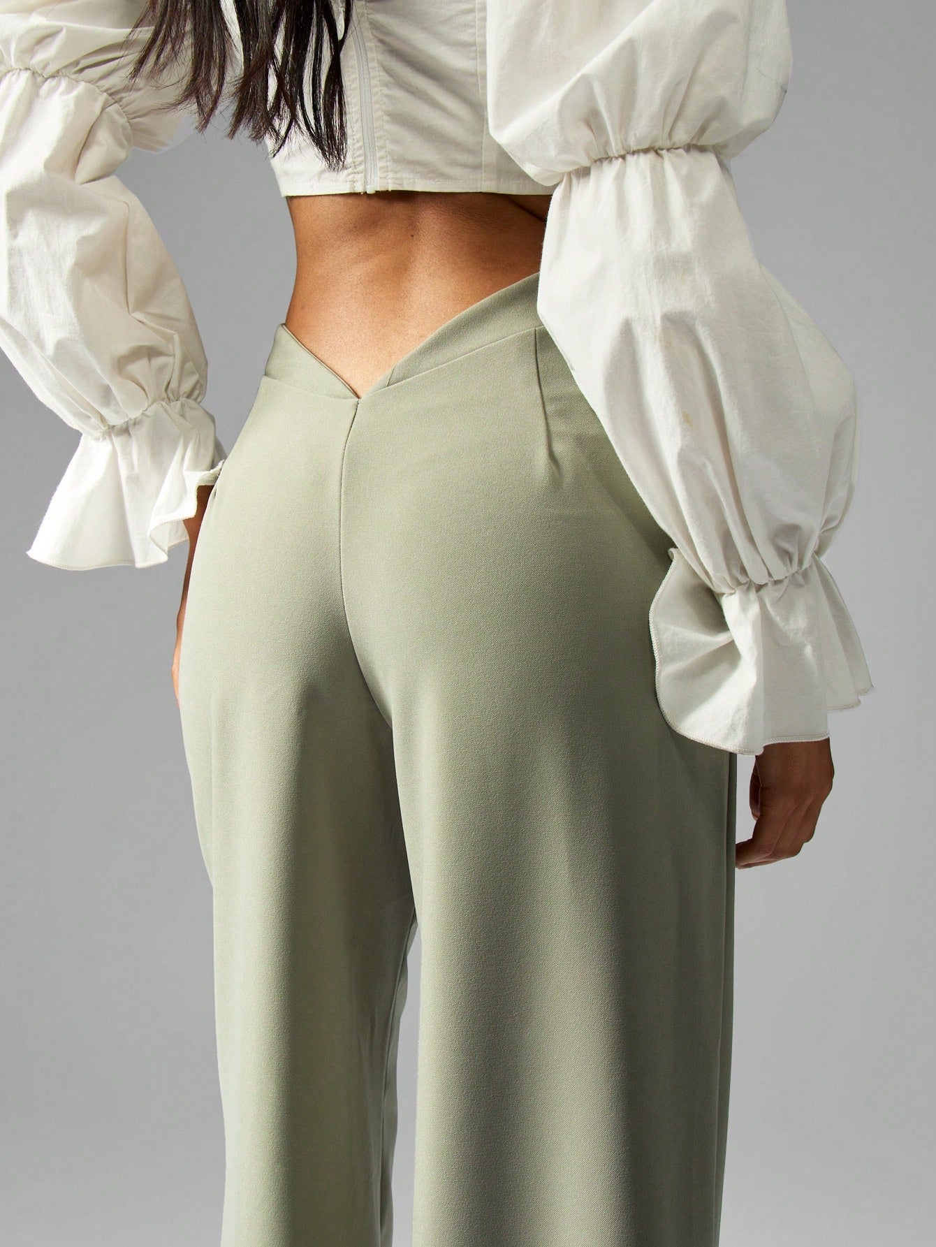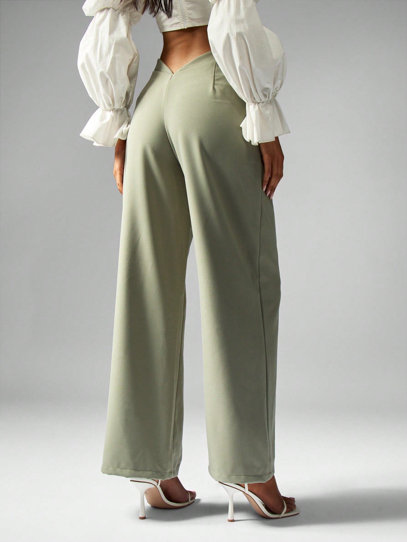 MISSGUIDED Wide Leg Dress Pants V Shaped Waistband Professional Office Work Trousers Business Formal