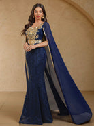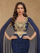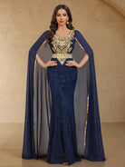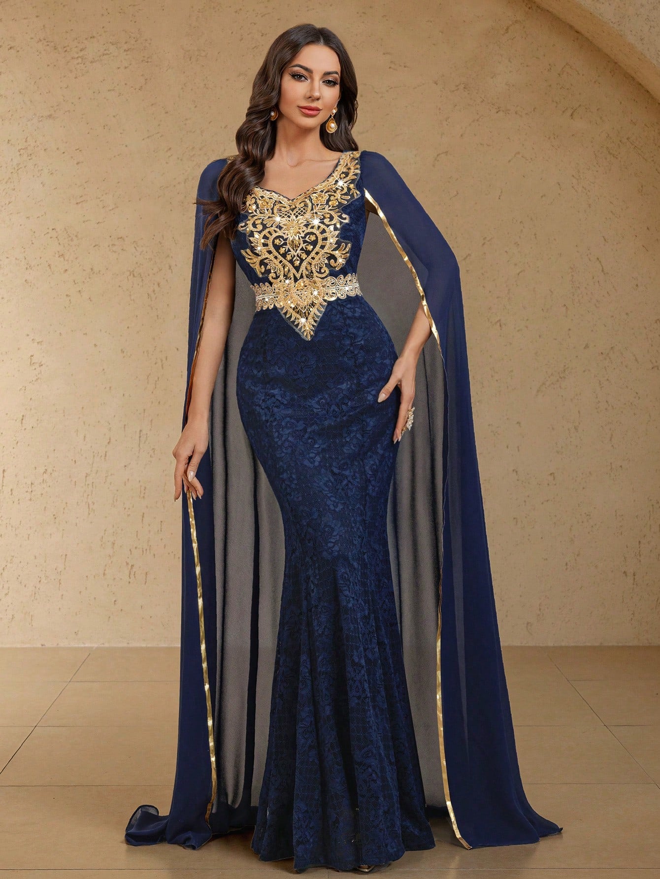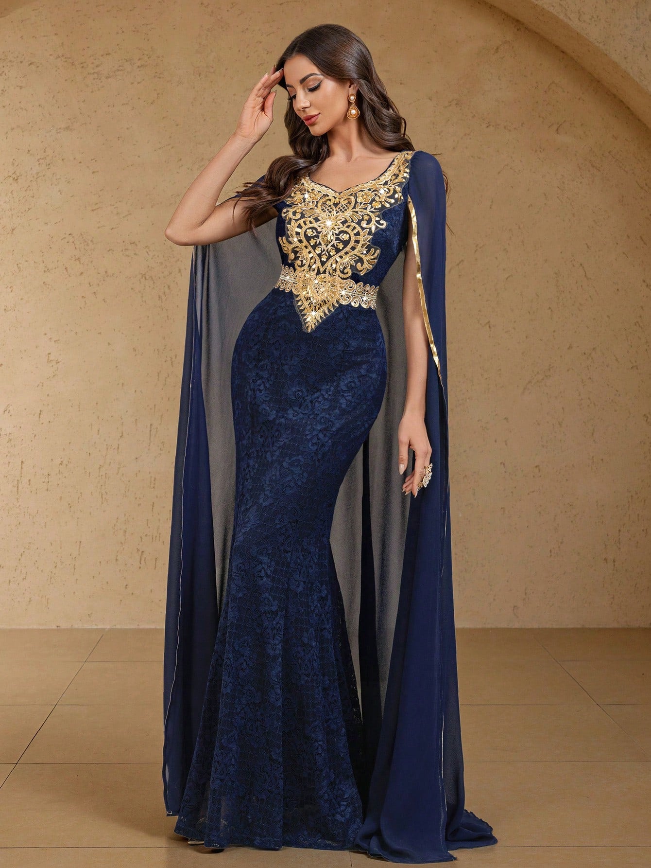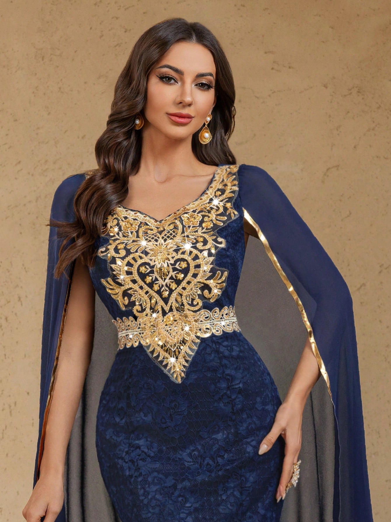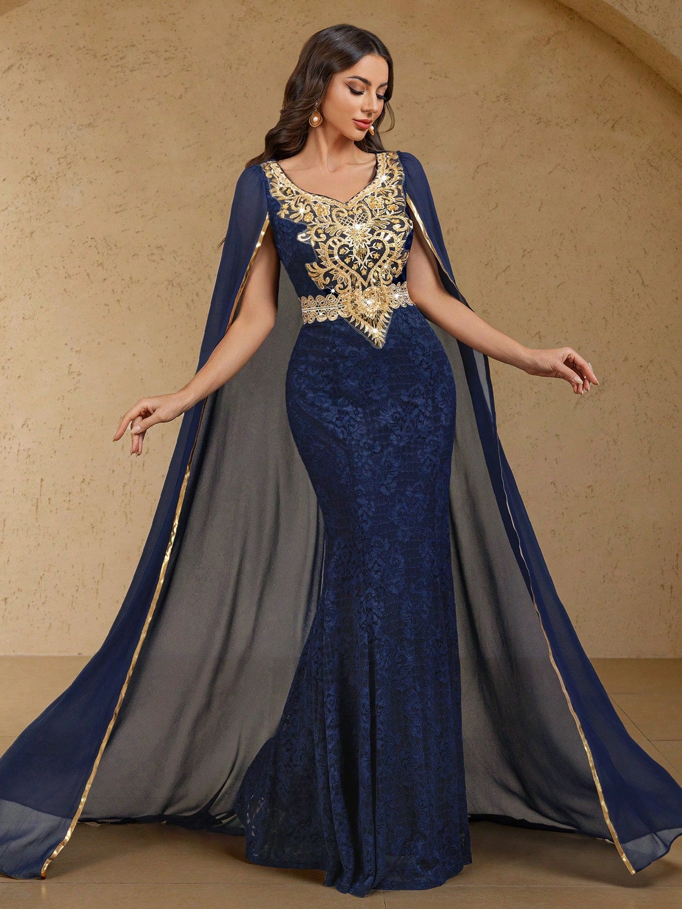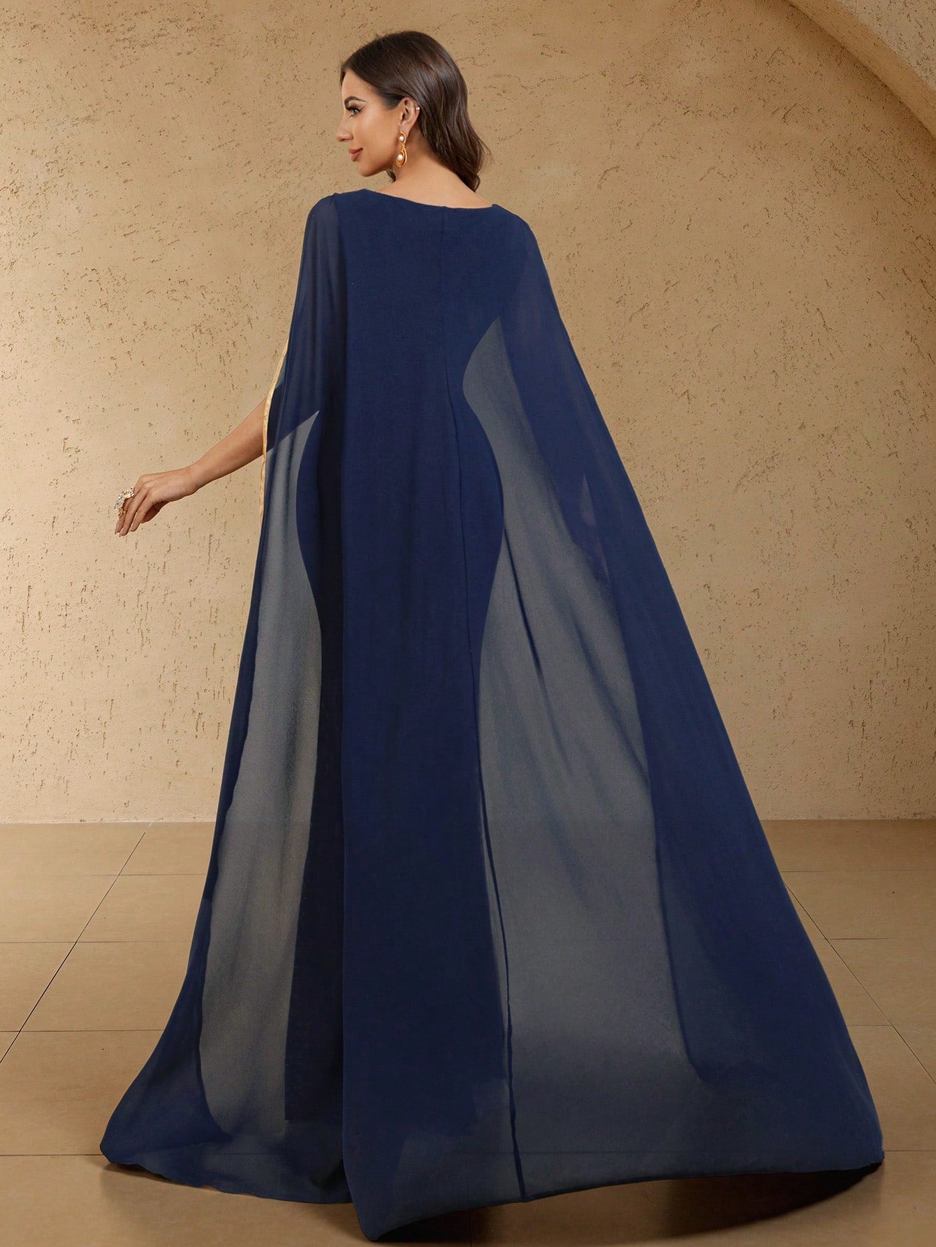 MIUSOL Elegant Floral Lace Contrast Chiffon Long Sleeve Evening Party Maxi Dress