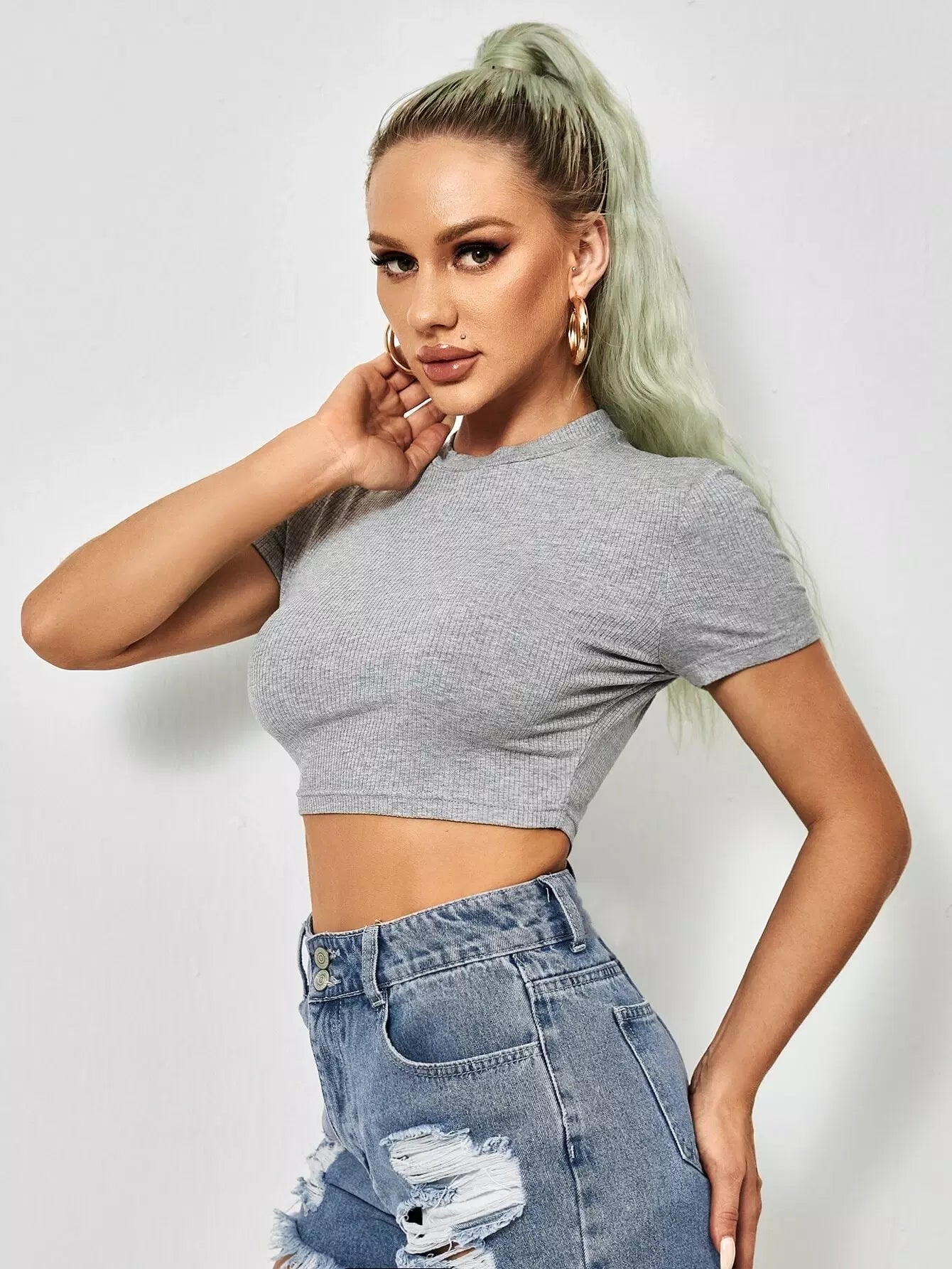 Mock Neck Crop Tee