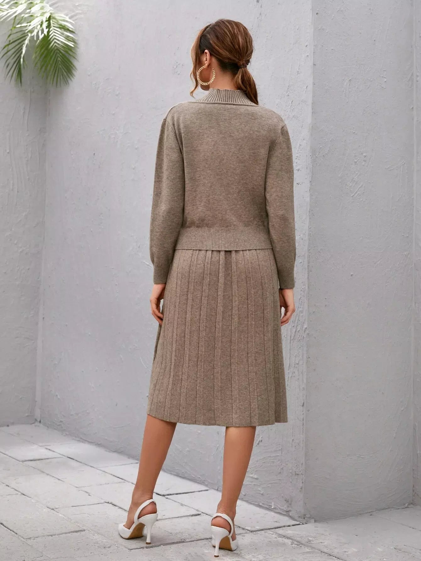 Mock-neck Rib-knit Sweater Dress With Top