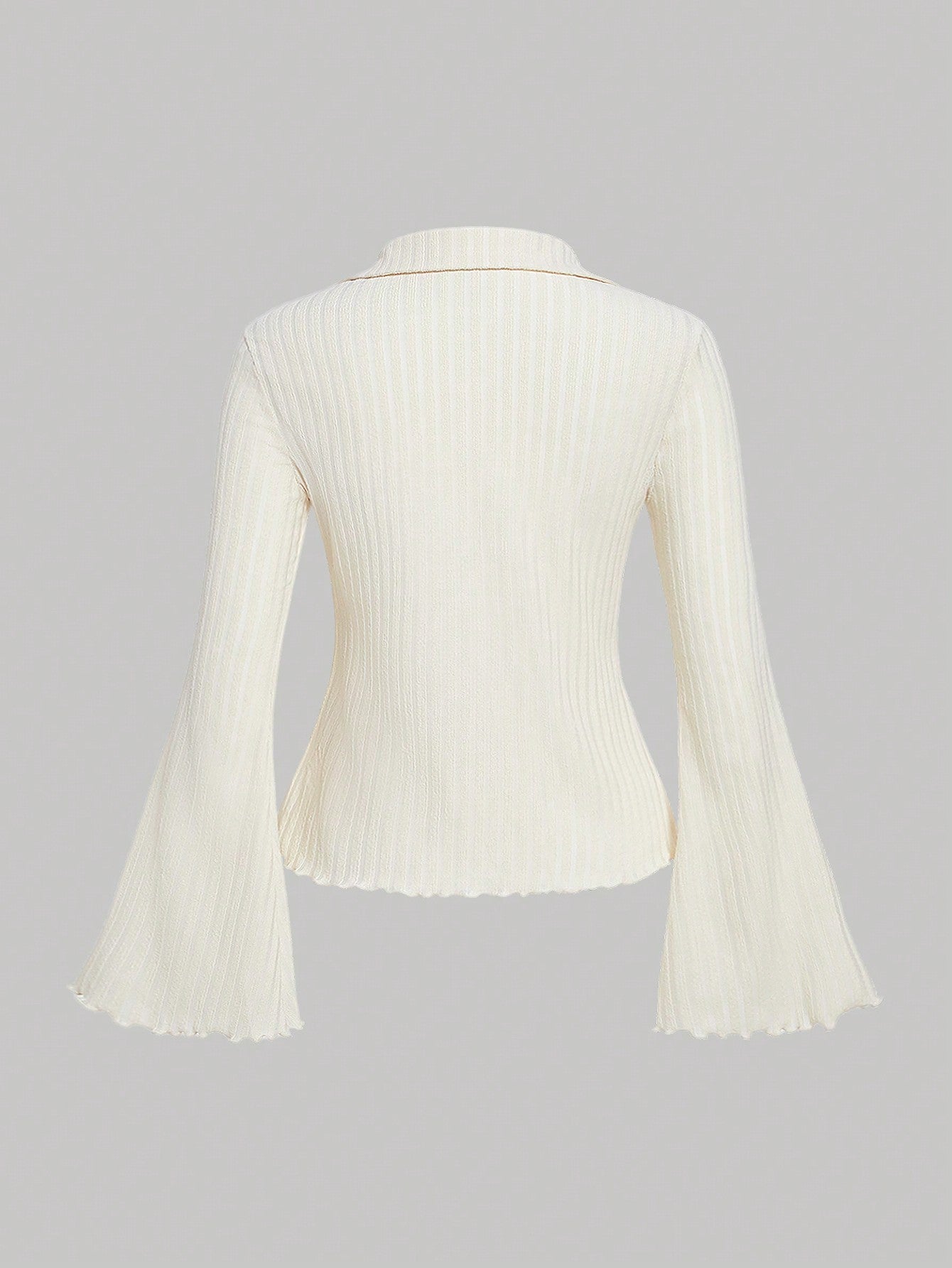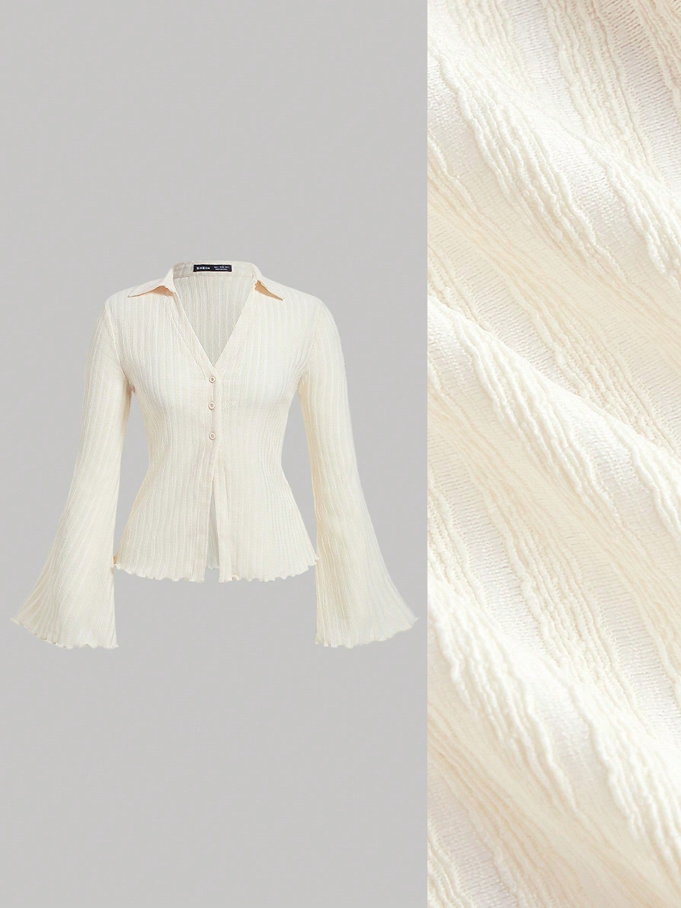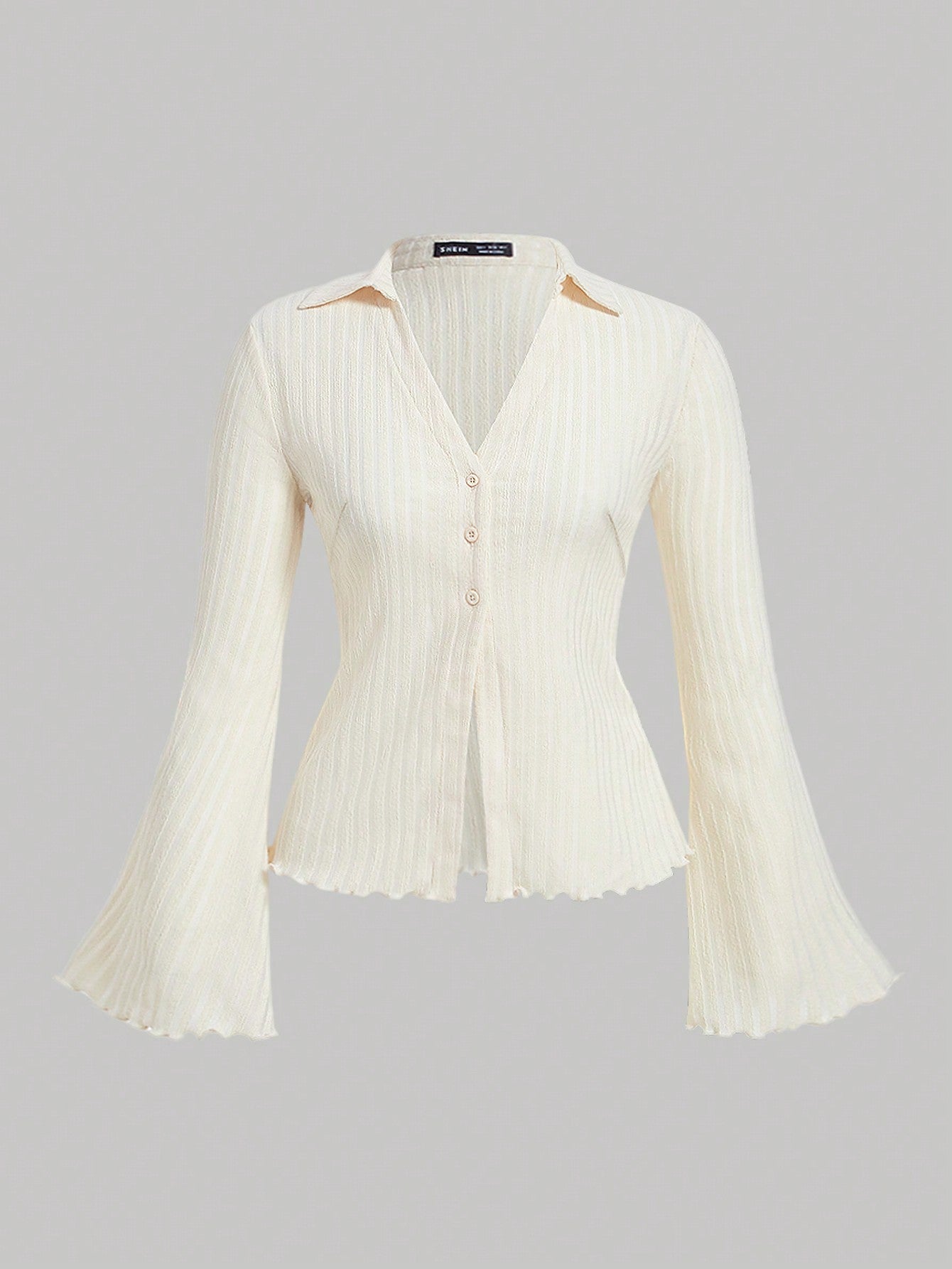 MOD Plus Size Women's Lettuce Trim Lapel Shirt