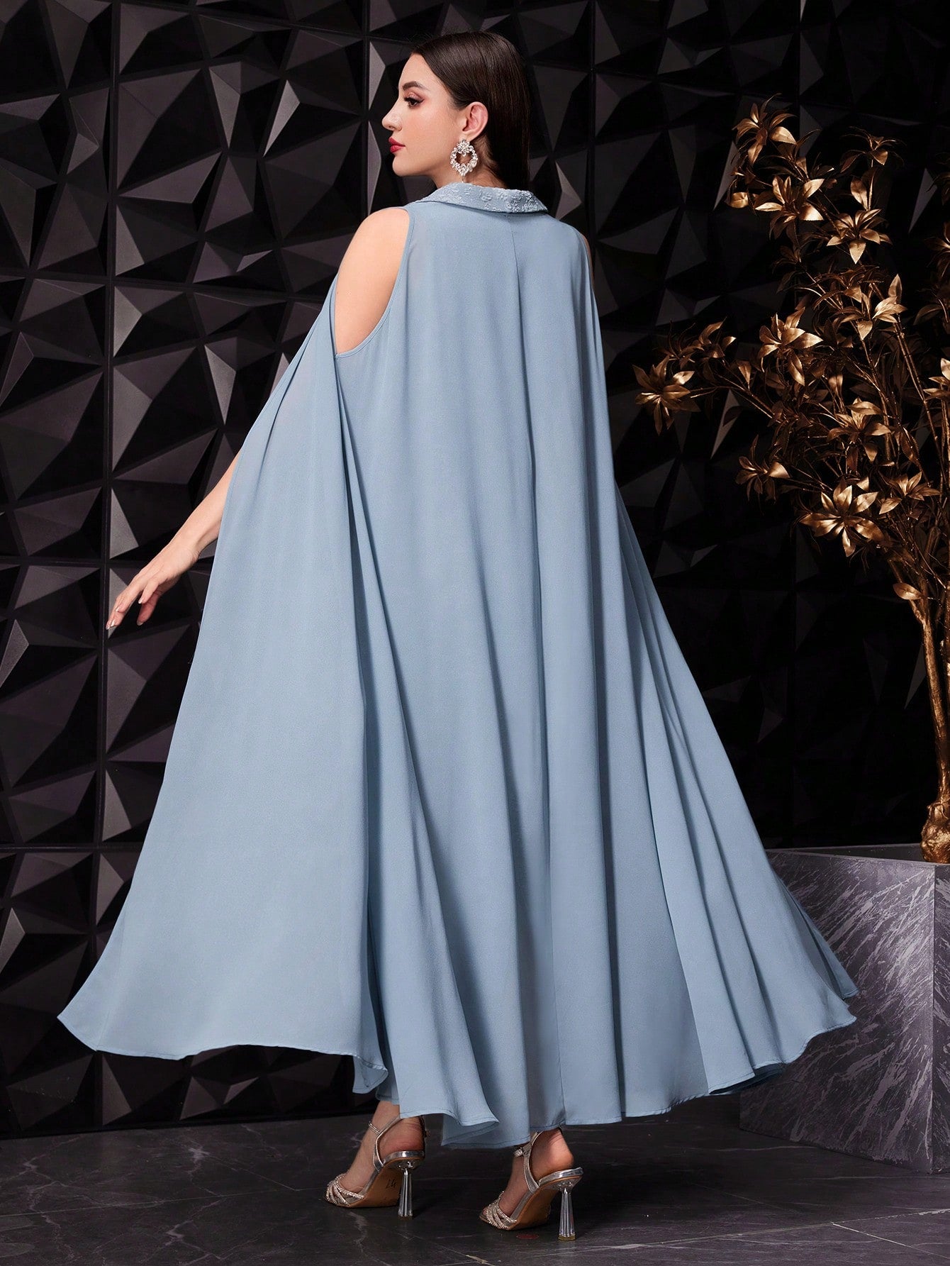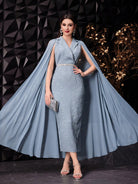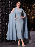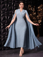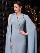Modelyn Women Floral Jacquard Textured Fabric Dress And Cold-Shoulder Cloak Sleeve Coat Two-Piece Set,