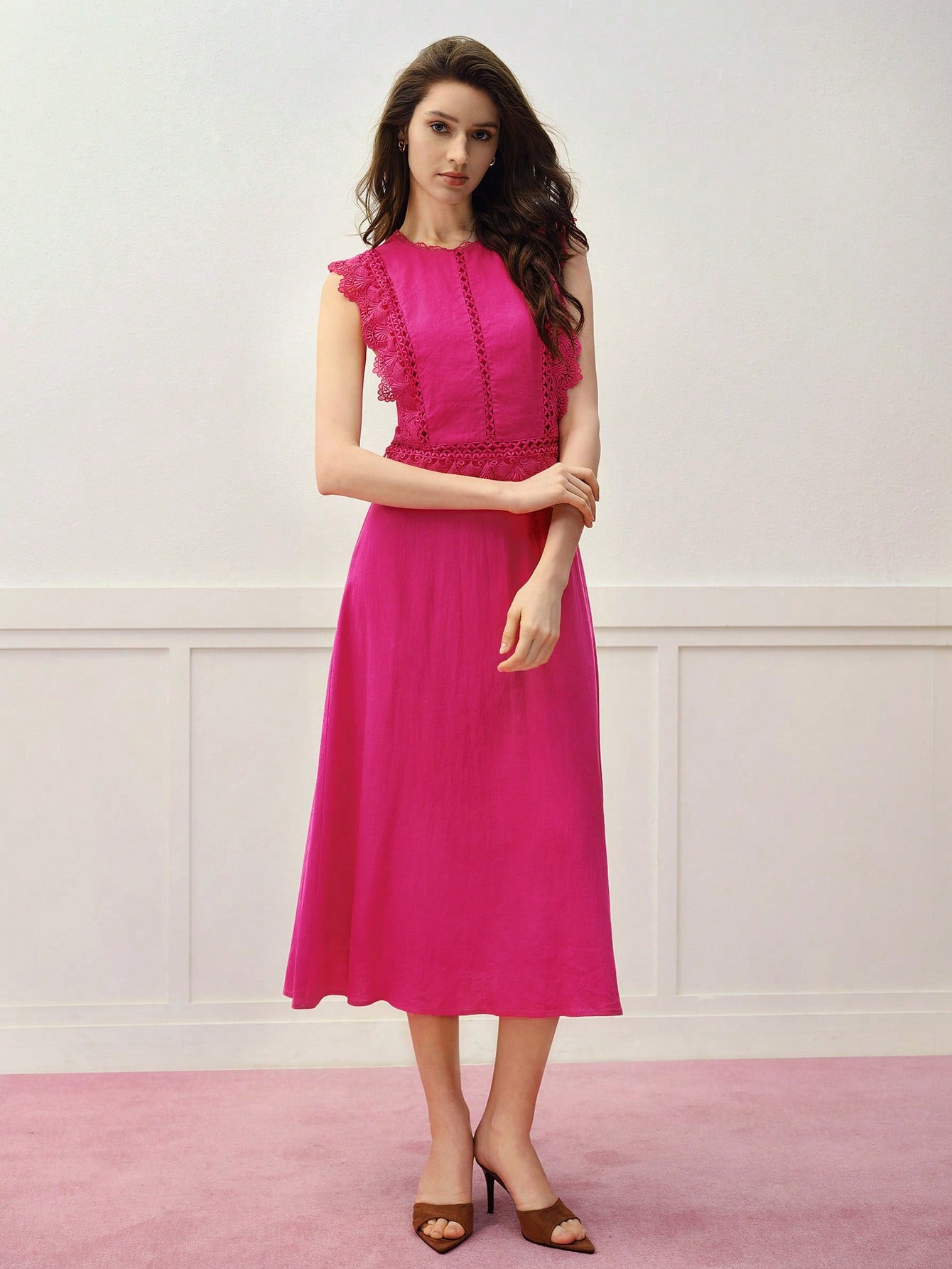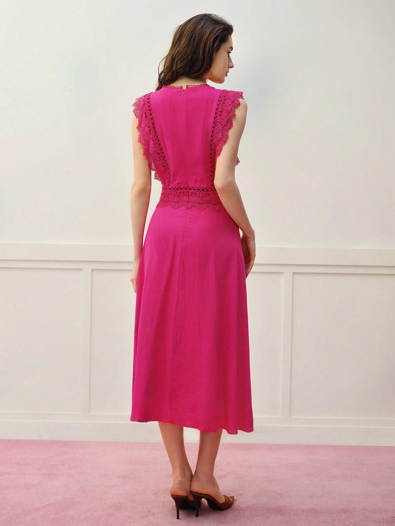 MOTF PREMIUM CONTRAST LACE TRIM MIDI DRESS