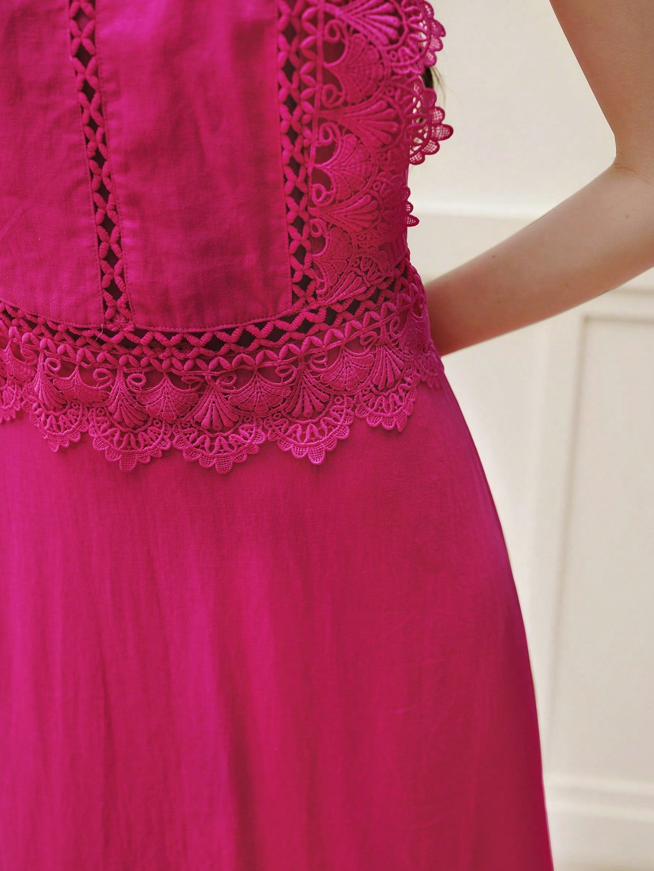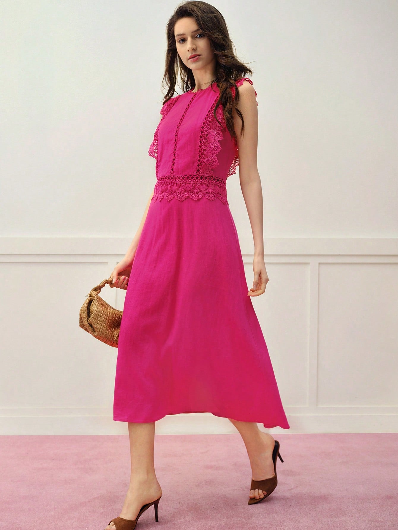 women MOTF PREMIUM CONTRAST LACE TRIM MIDI DRESS