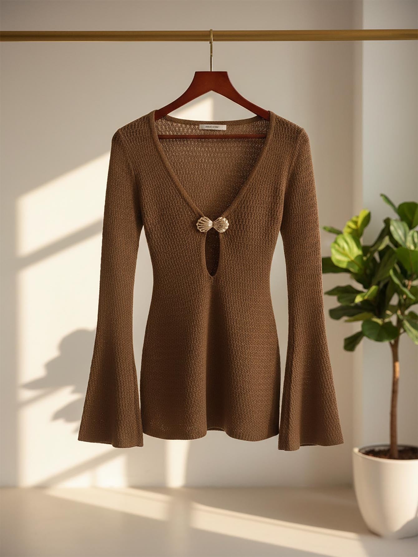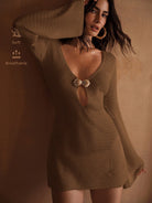 MOTF PREMIUM METAL DETAIL DEEP V NECK COVER UP DRESS FOR SUMMER BEACH VACATION