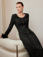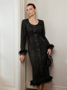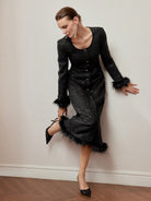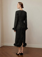 women MOTF PREMIUM TWEED FLUFFY TRIM SINGLE BREASTED PLACKET DRESS