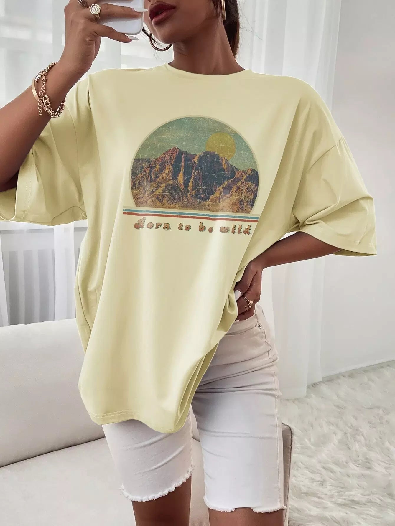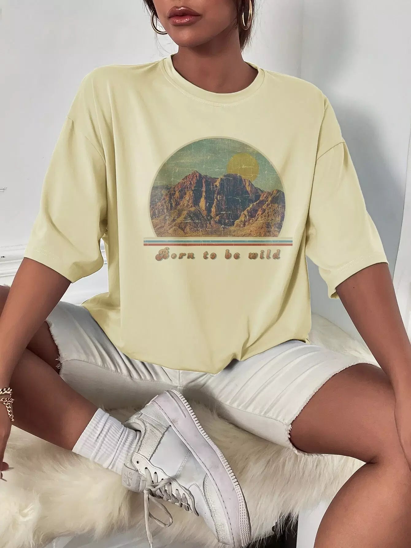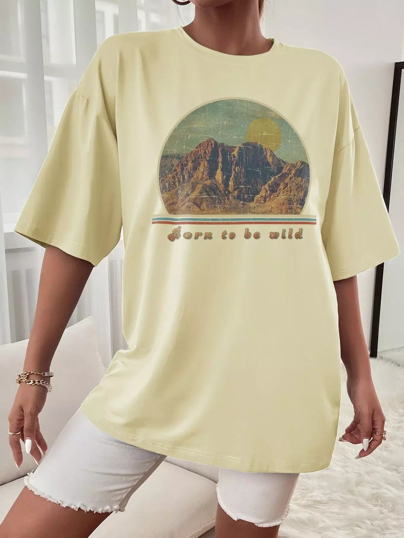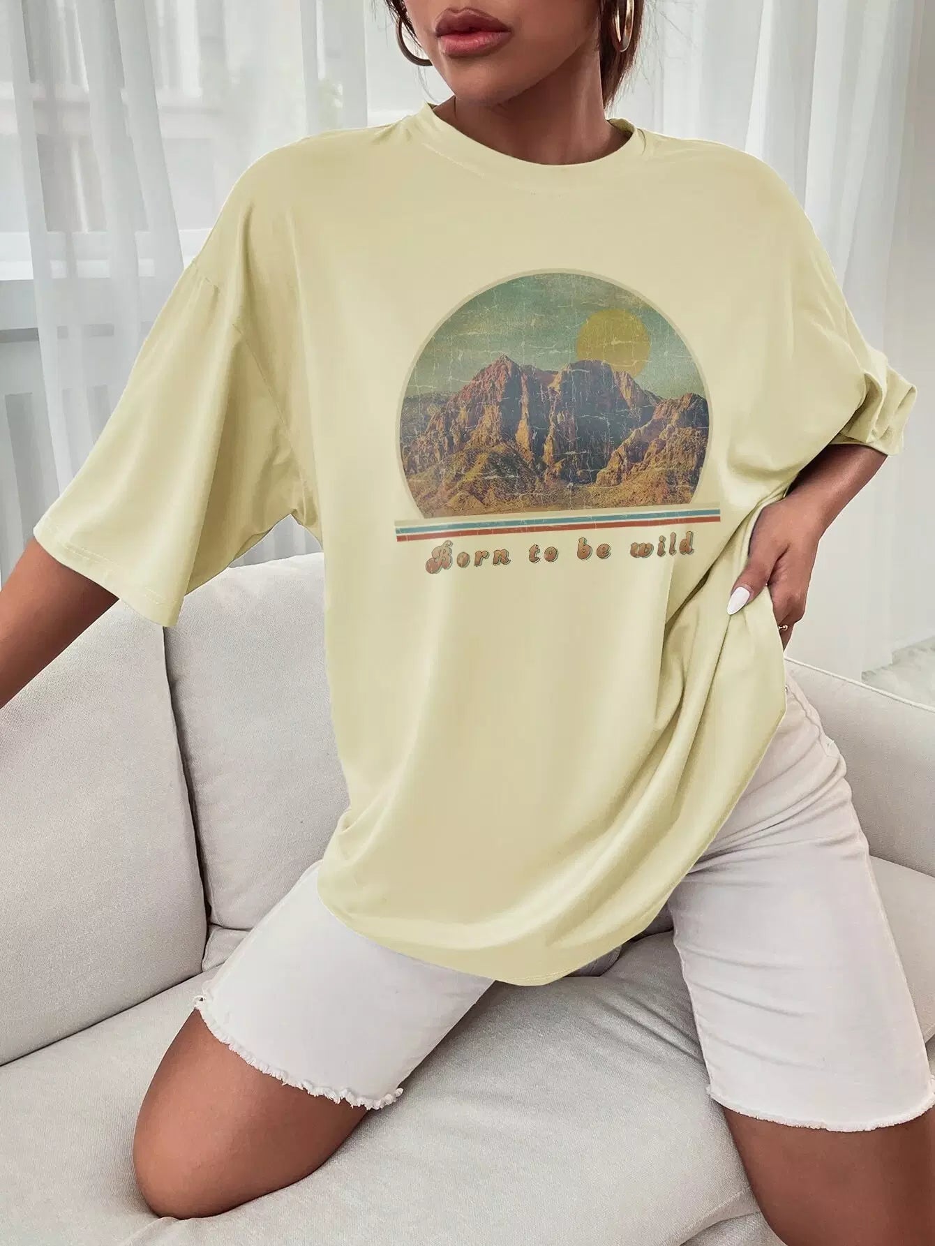 Mountain And Slogan Graphic Drop Shoulder Tee