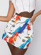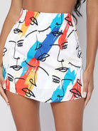 Multi Colored Sketch Face Art Print Mini Skirt