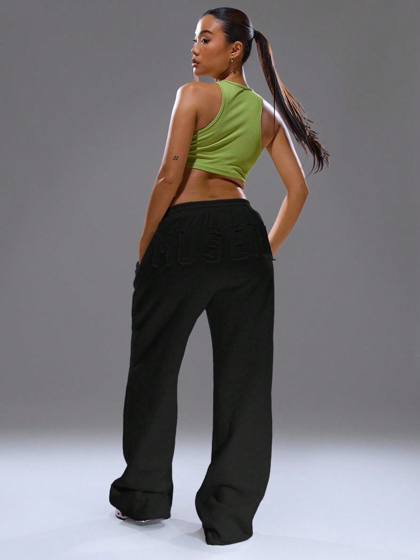 MUSERA Distressed '' Logo Wide Leg Baggy Joggers Cosy Cute Casual Basic Everyday Winter Lounge Sweatpants