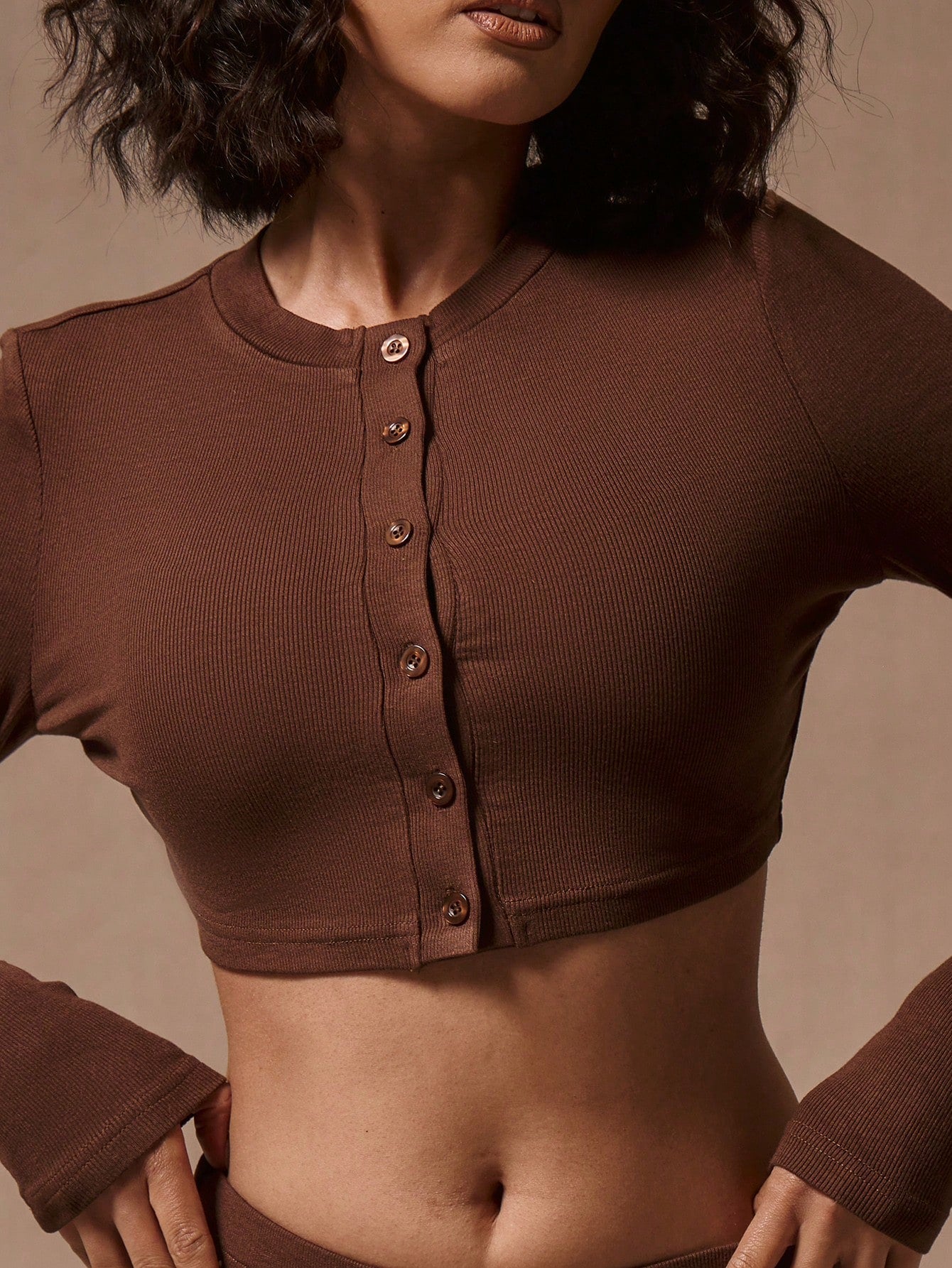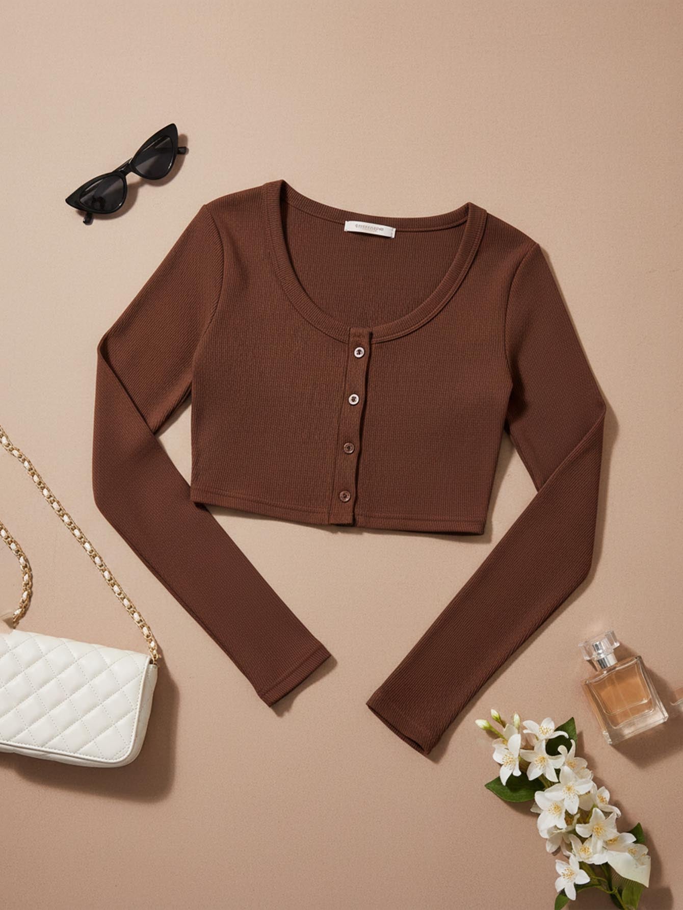 MUSERA Long Sleeve Button Placket Crop Top Clothes Casual Summer