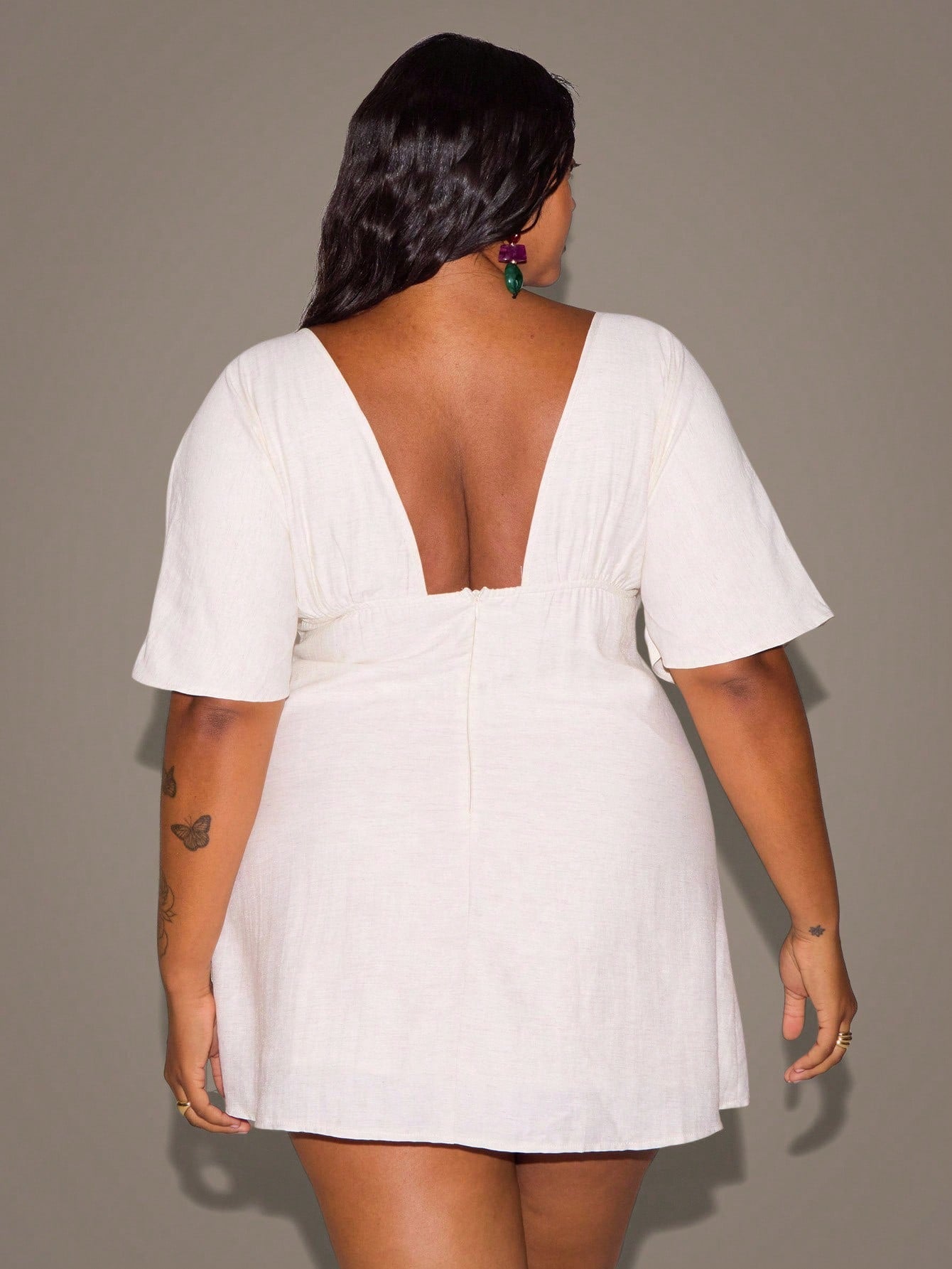 MUSERA Plus Size Women Plunge V Neck Tie Front Wide Sleeve Loose Fit Mini Dress Summer Vacation Holiday