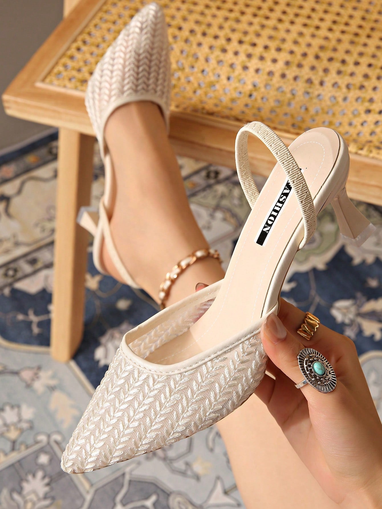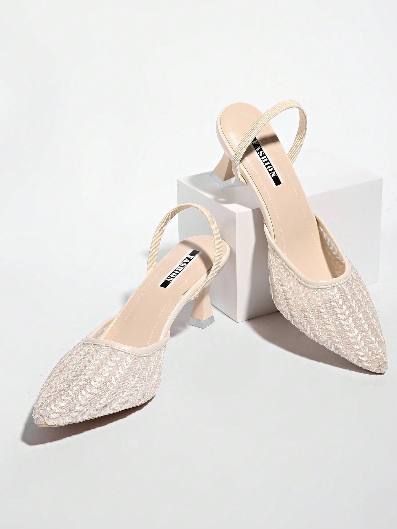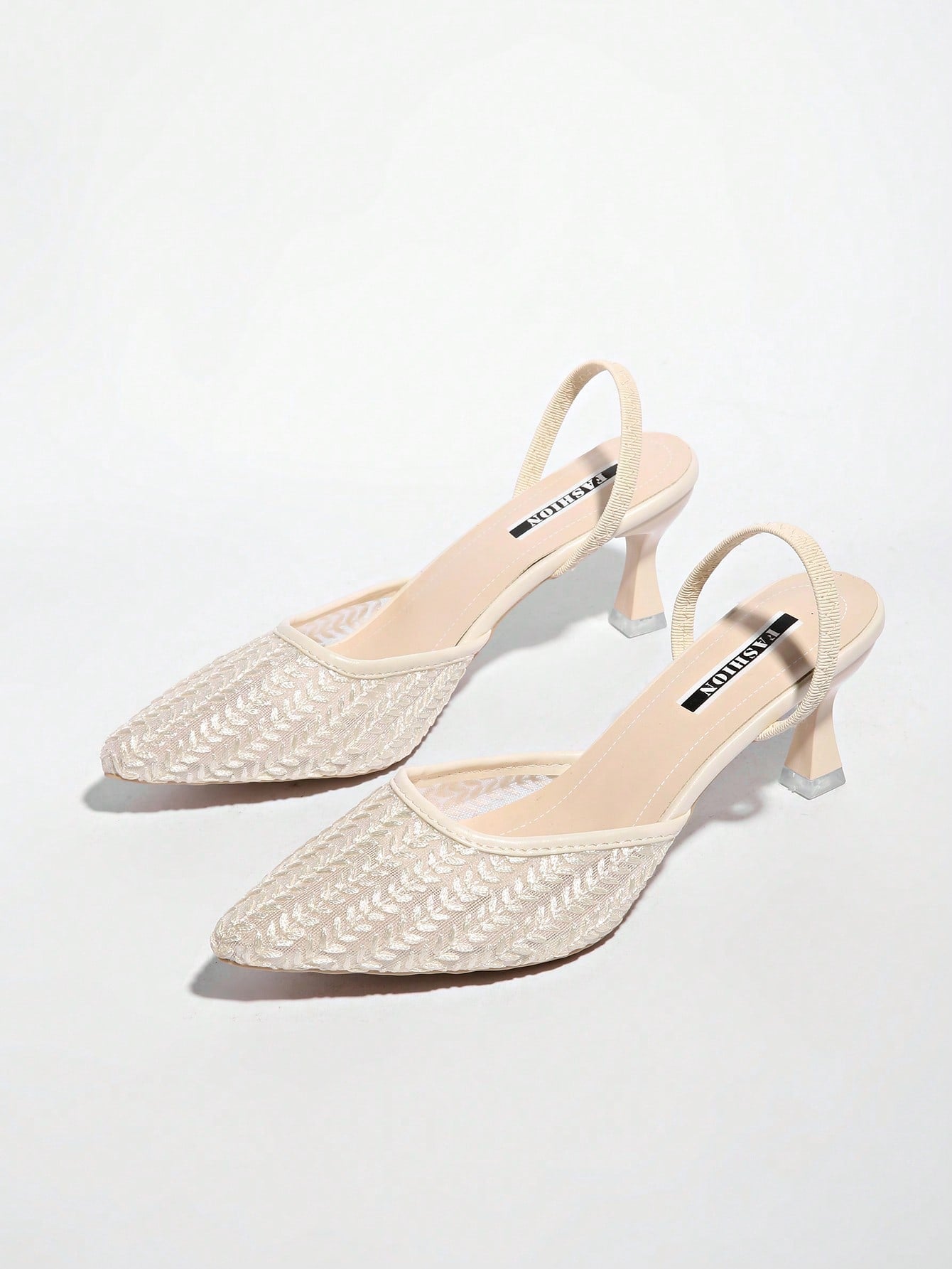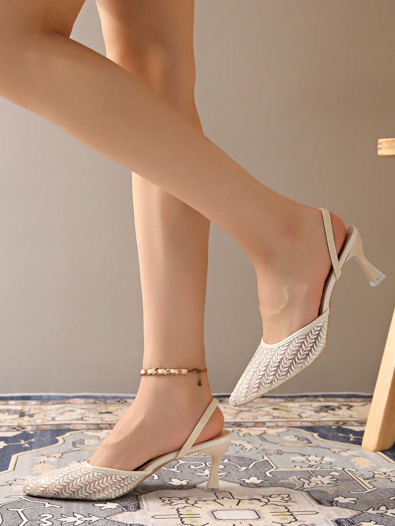 New Chinese Style White High Heel Mules Women Pointy Toe Lace Embroidery Two-Way Slip On Sandals