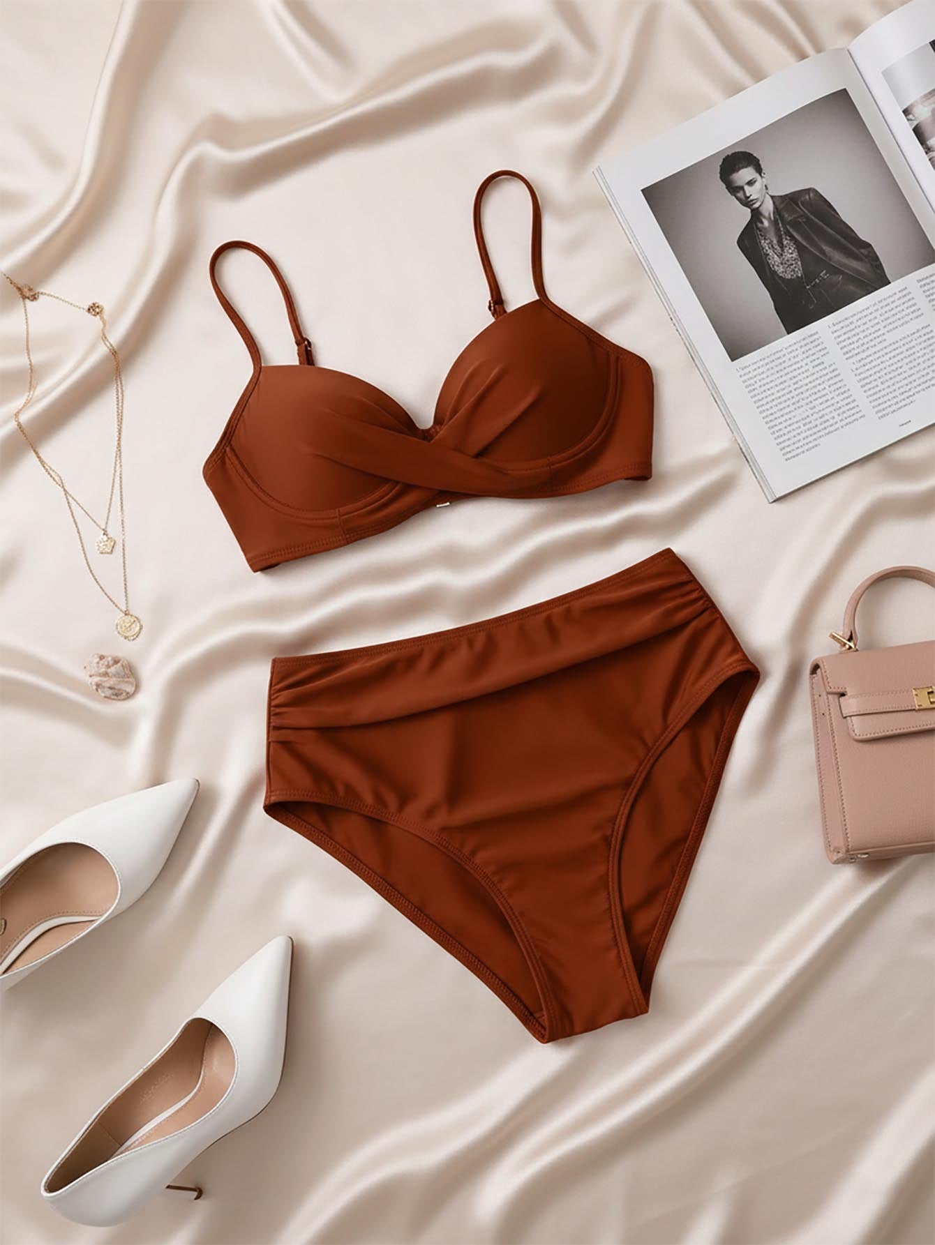 New Design European And American Style Women Solid Color Wire Rimmed Cupped Cross Strap Sexy & Simple