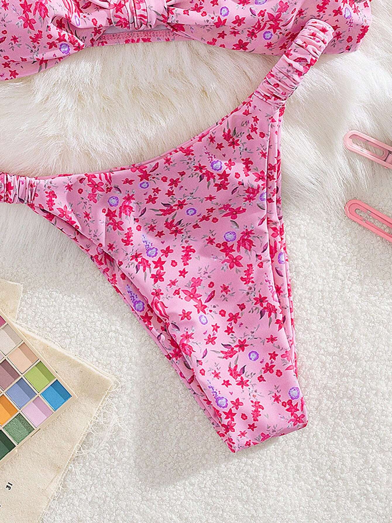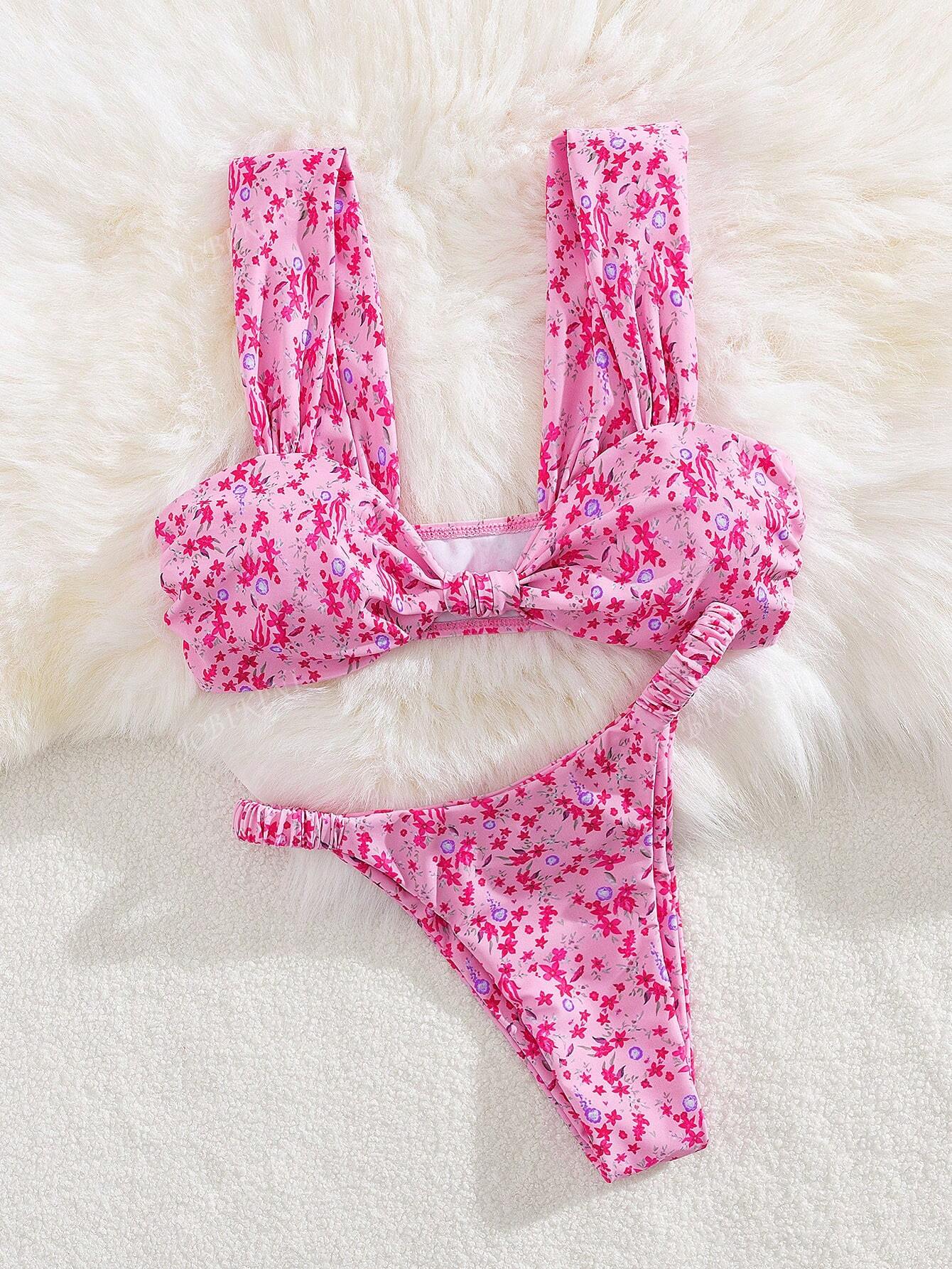 New Soft Fabric Ditsy Floral Thick Strap Elegant Sexy Party Bikini Set