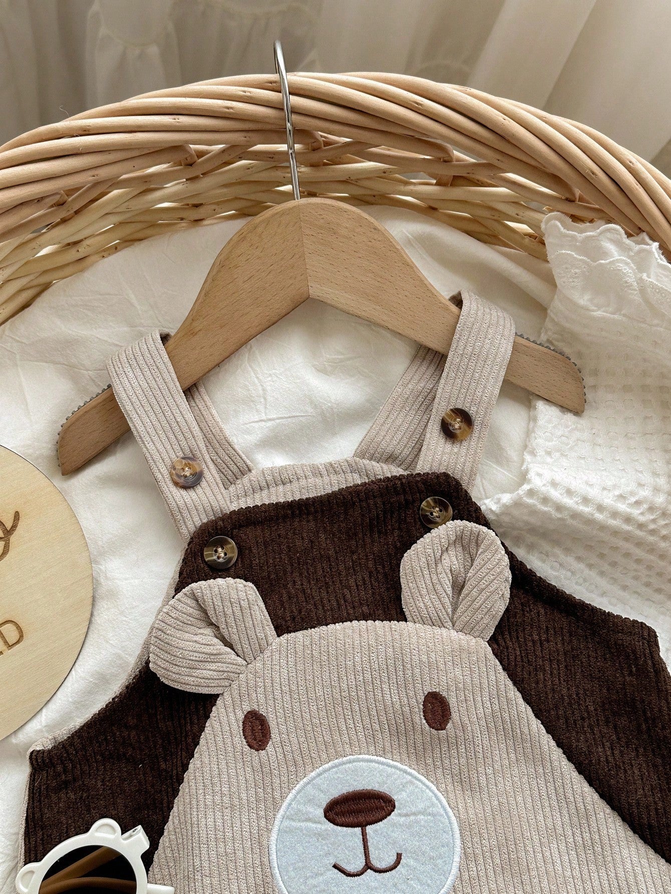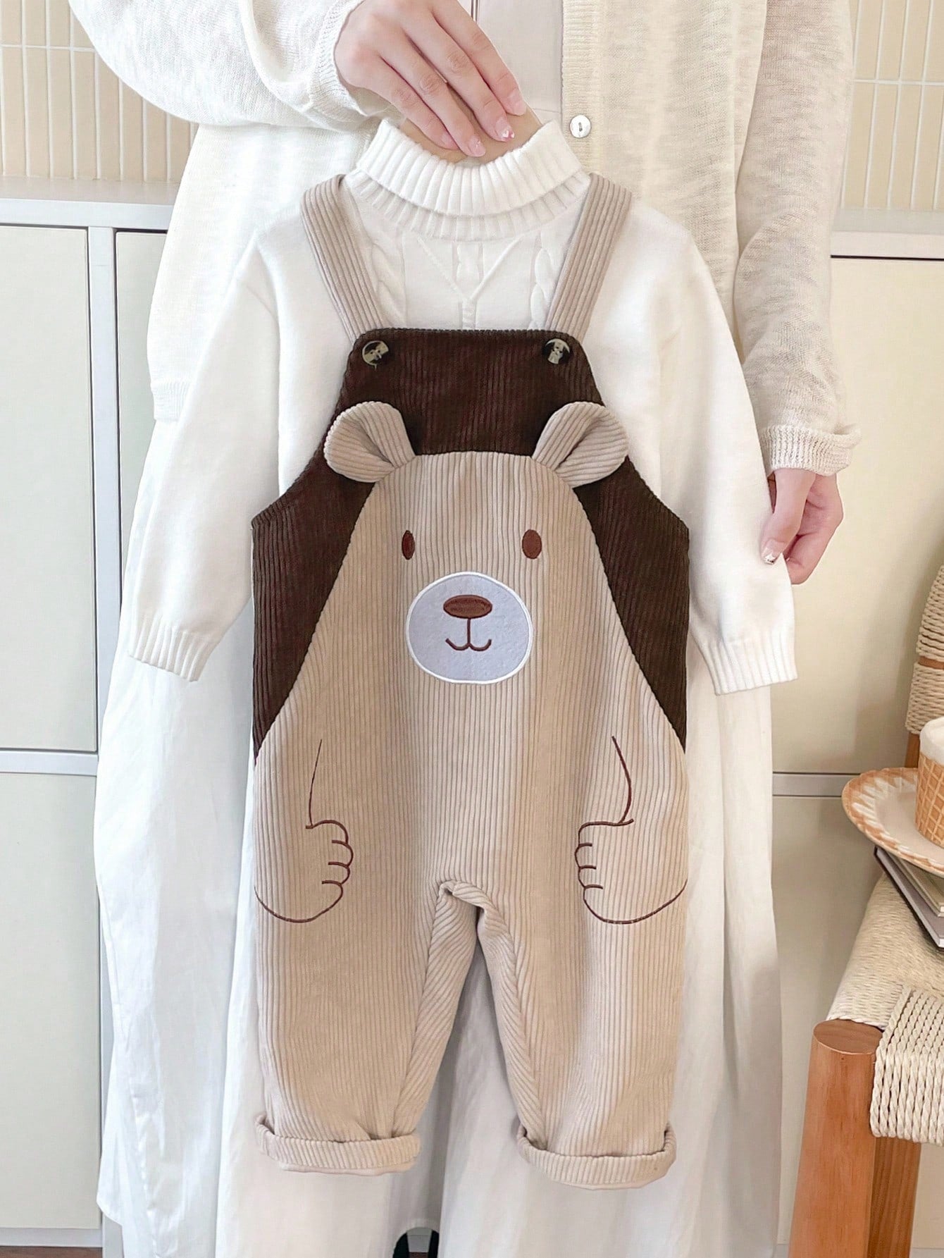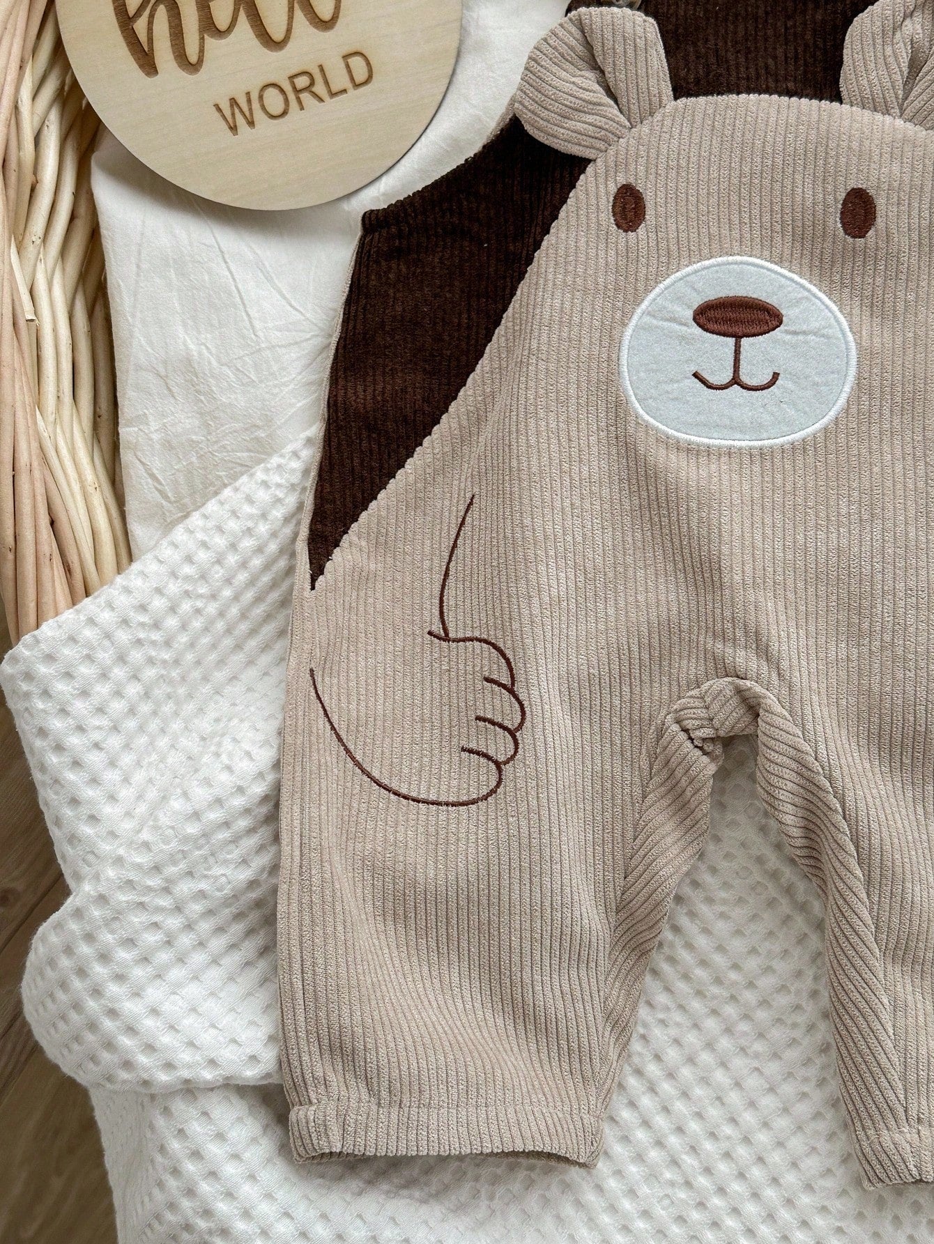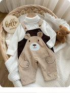 Newborn Baby Boy Cartoon Bear Embroidered Contrast Color Bib Pants