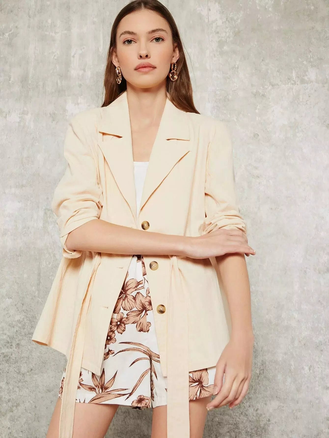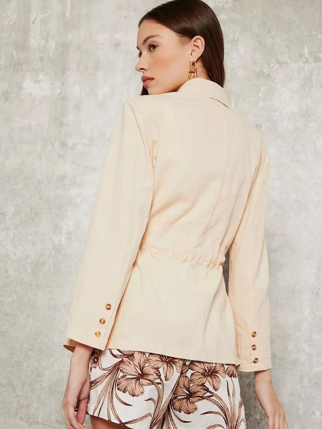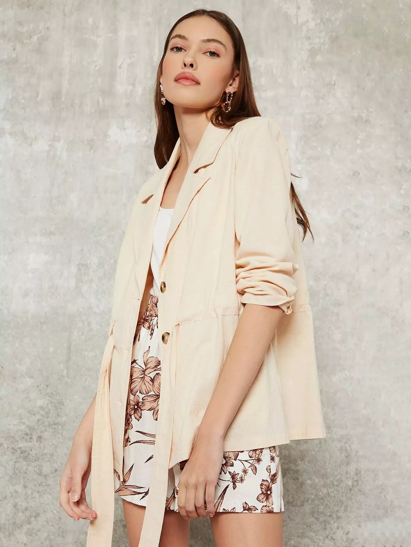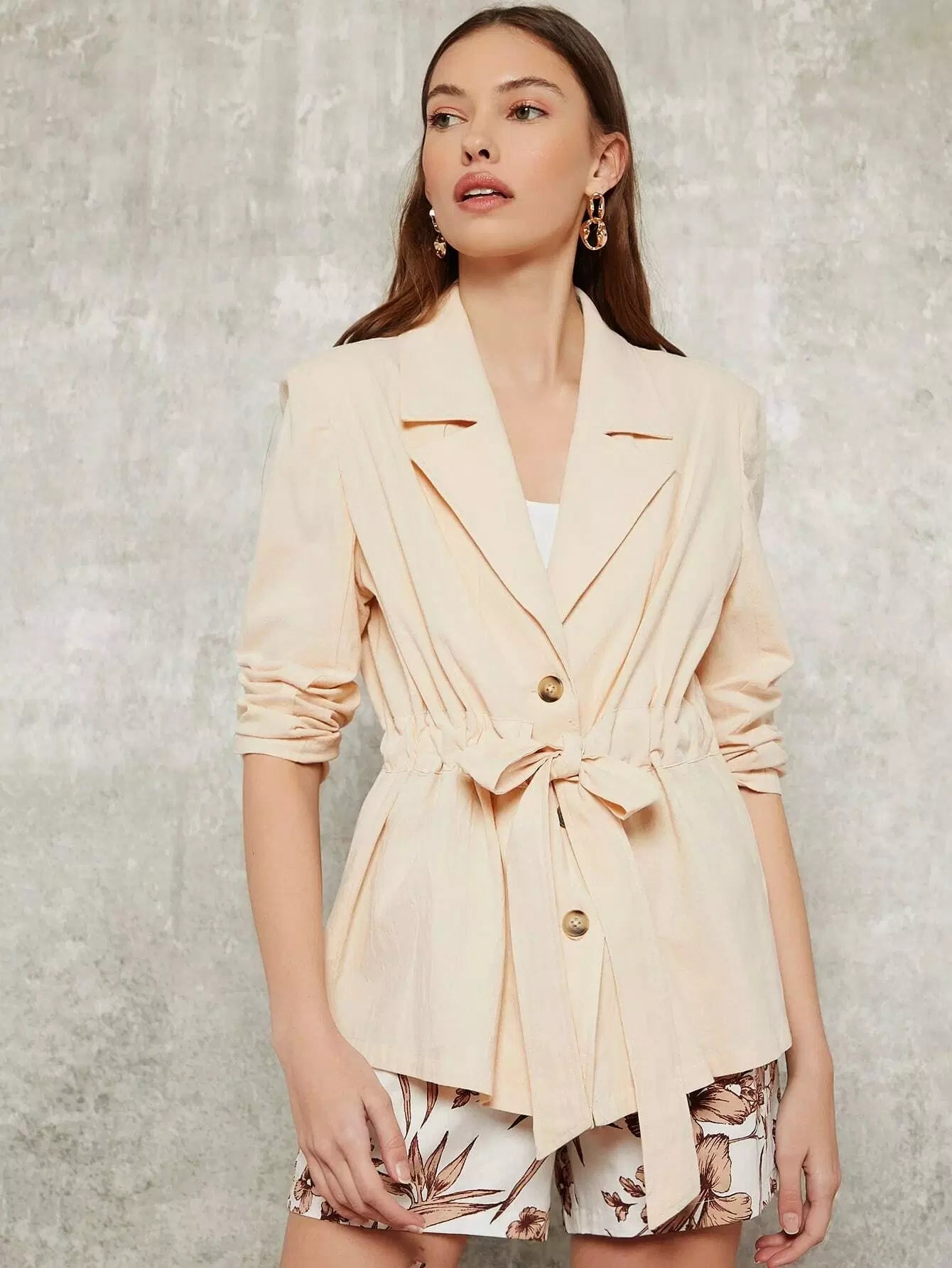 Notched Collar Single Breasted Drawstring Waist Blazer