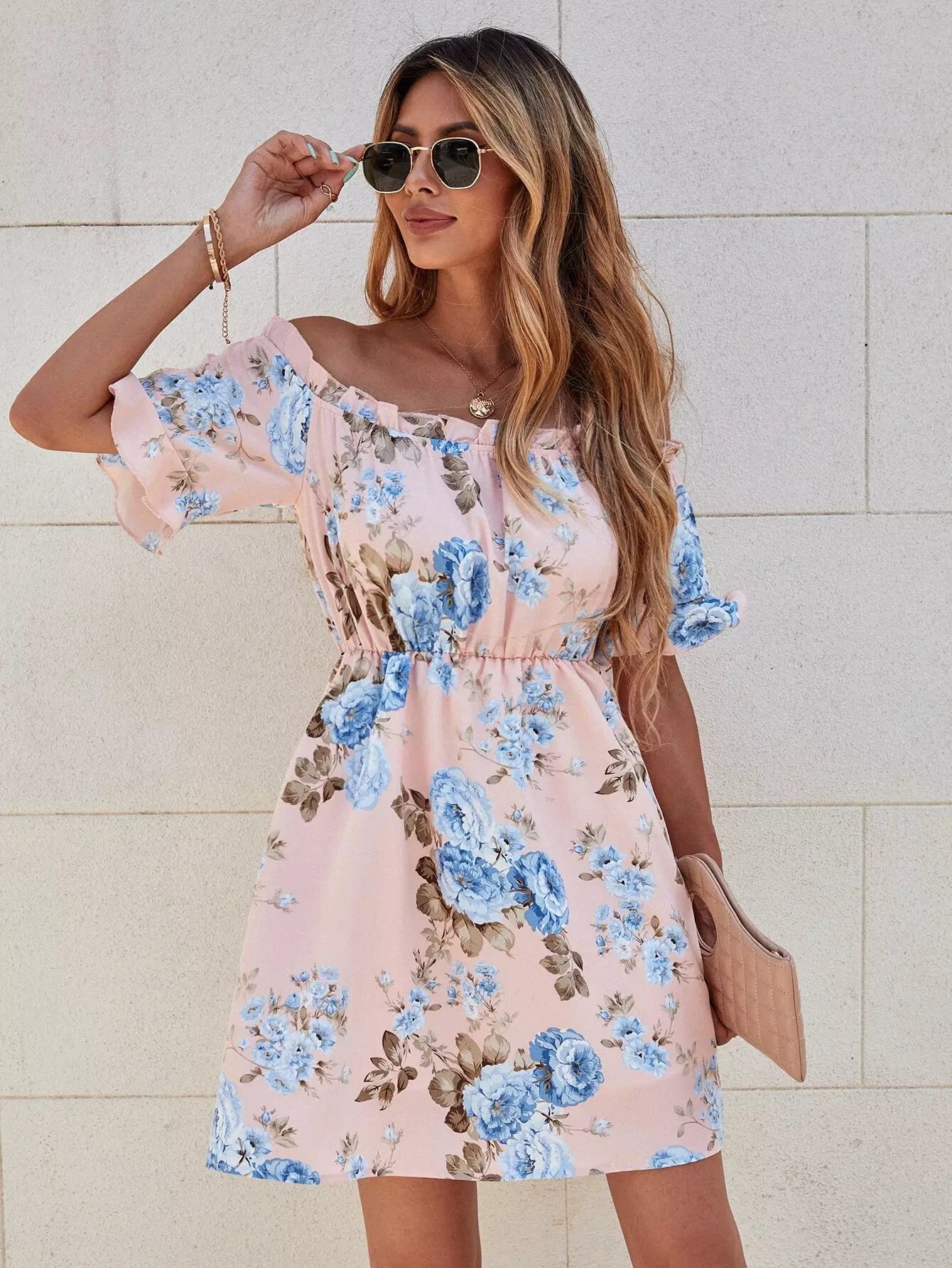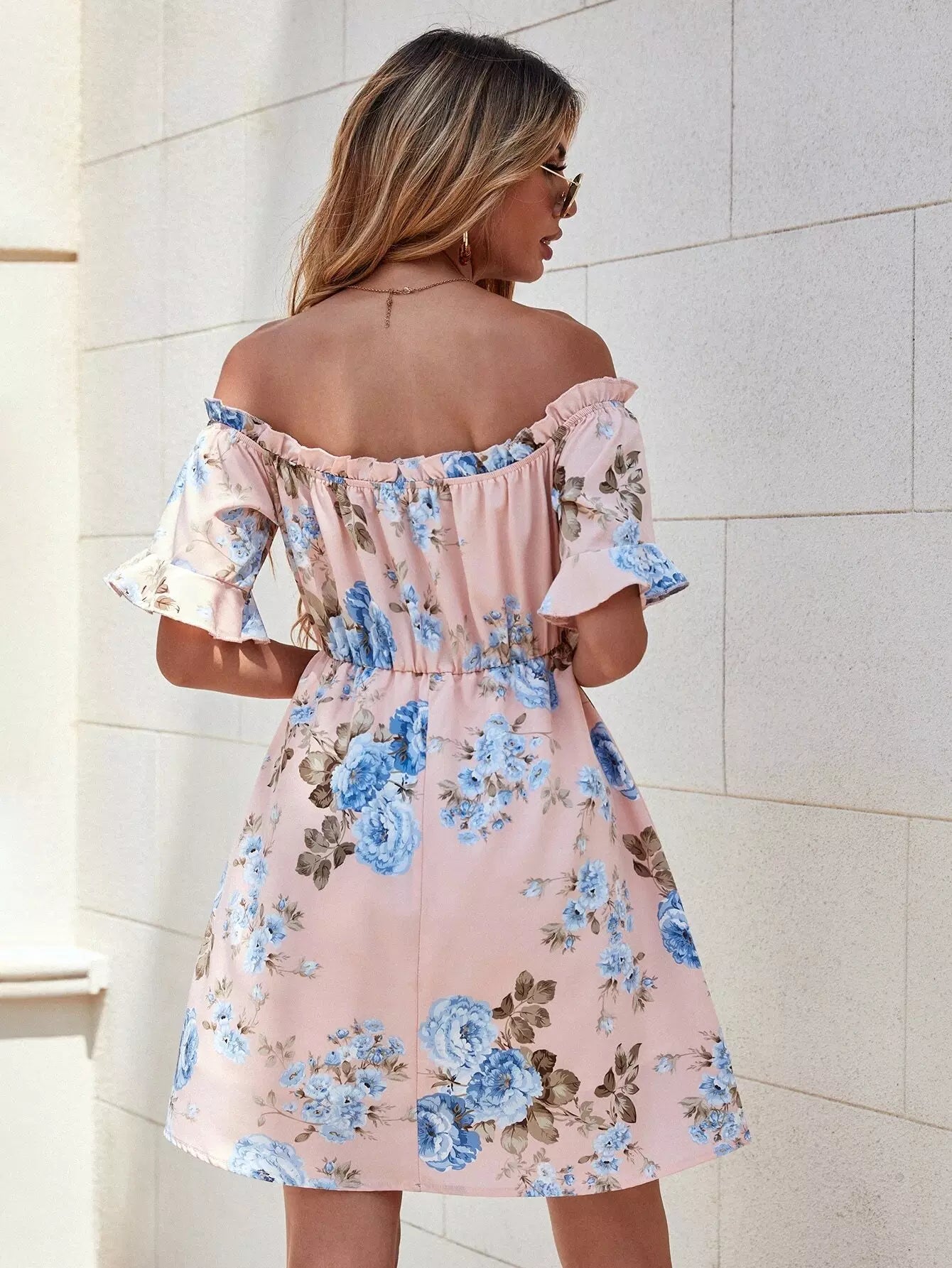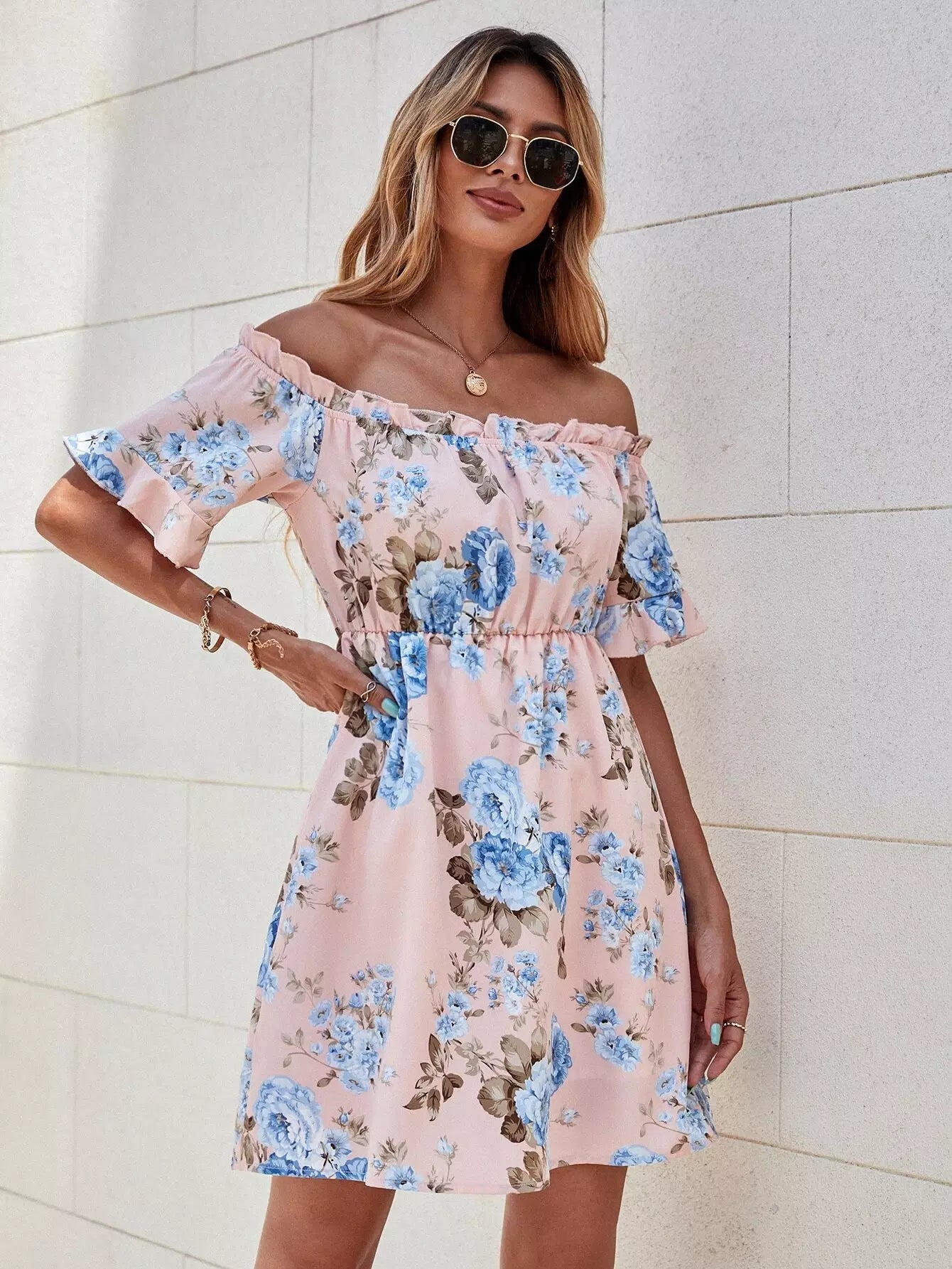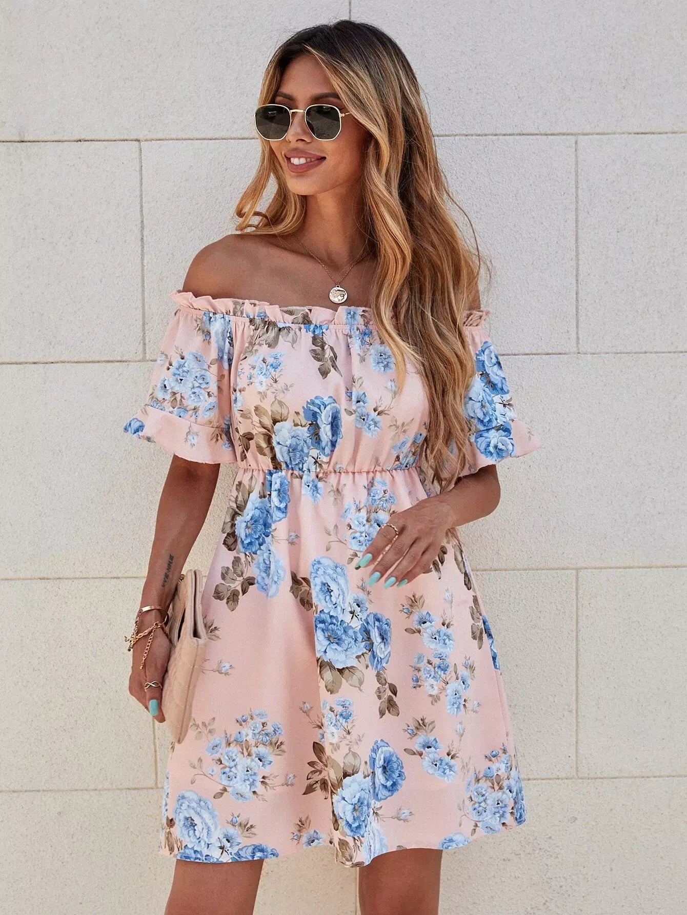 Off The Shoulder Floral Print Dress