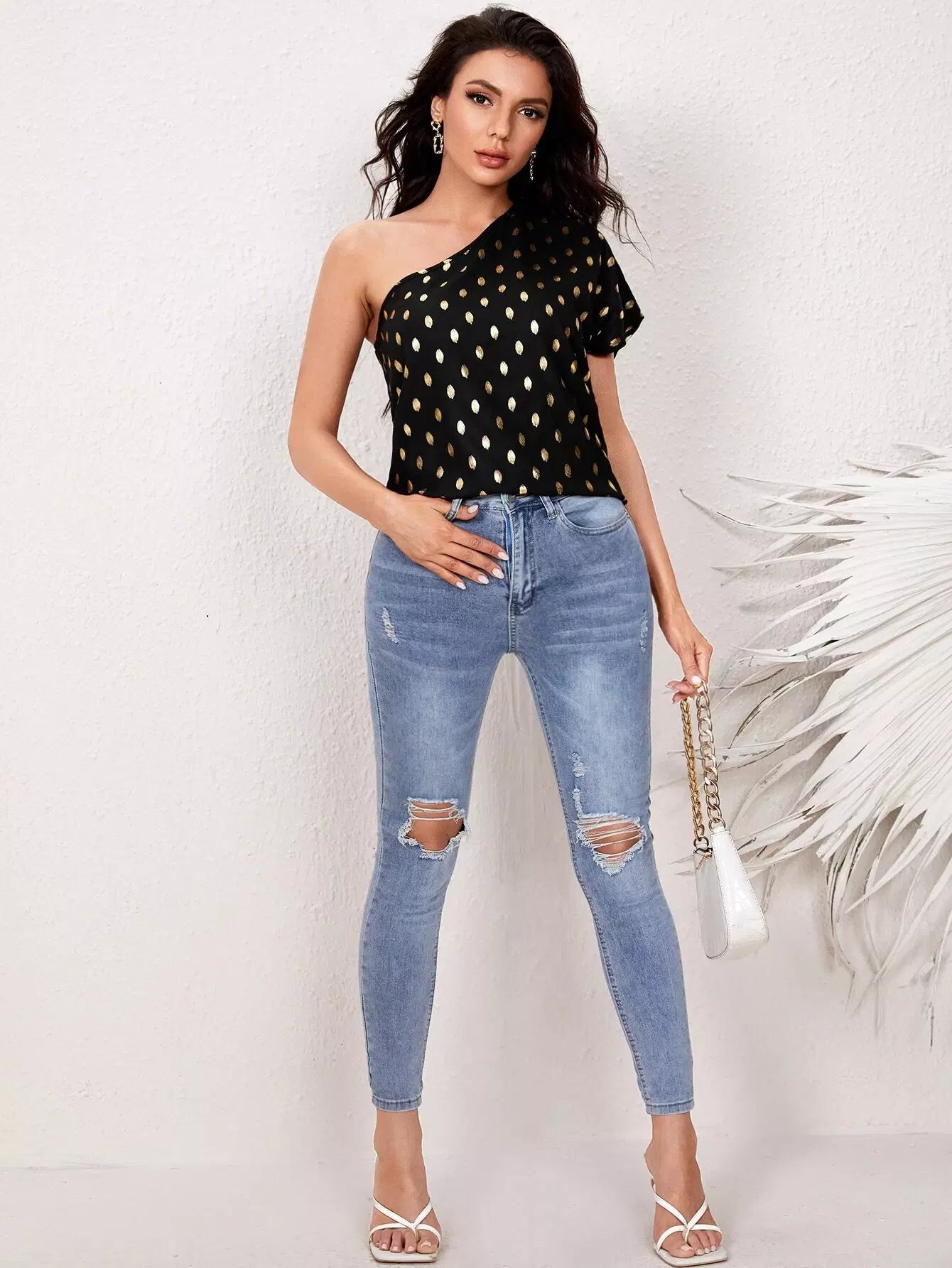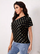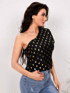 One Shoulder Gold Dot Print Top