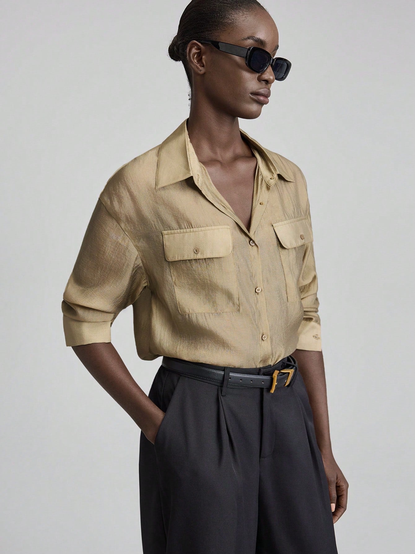 Ontre Relaxed Leisure Front Button Loose Long Sleeve Blouse, Versatile Holiday Top For Party, Beach,