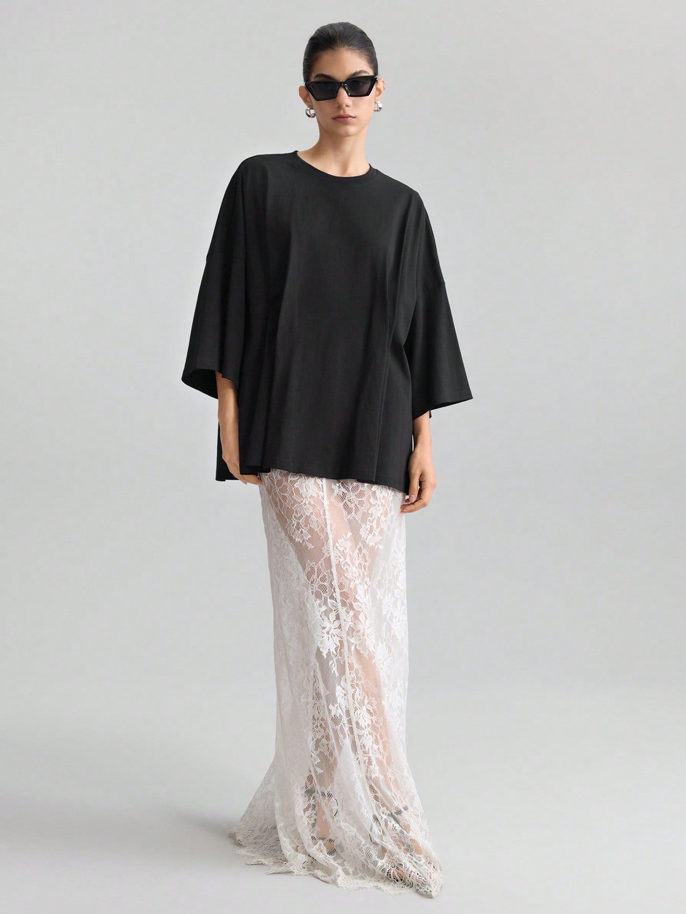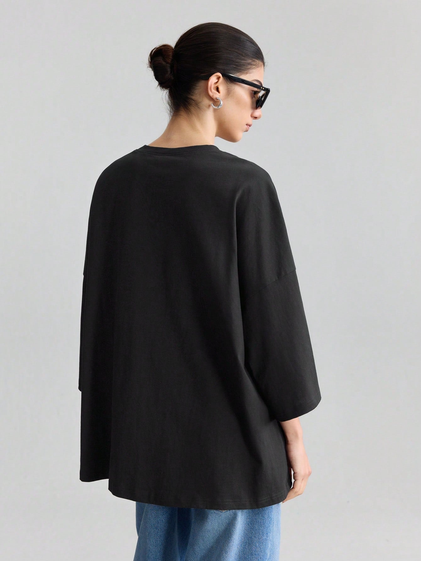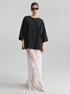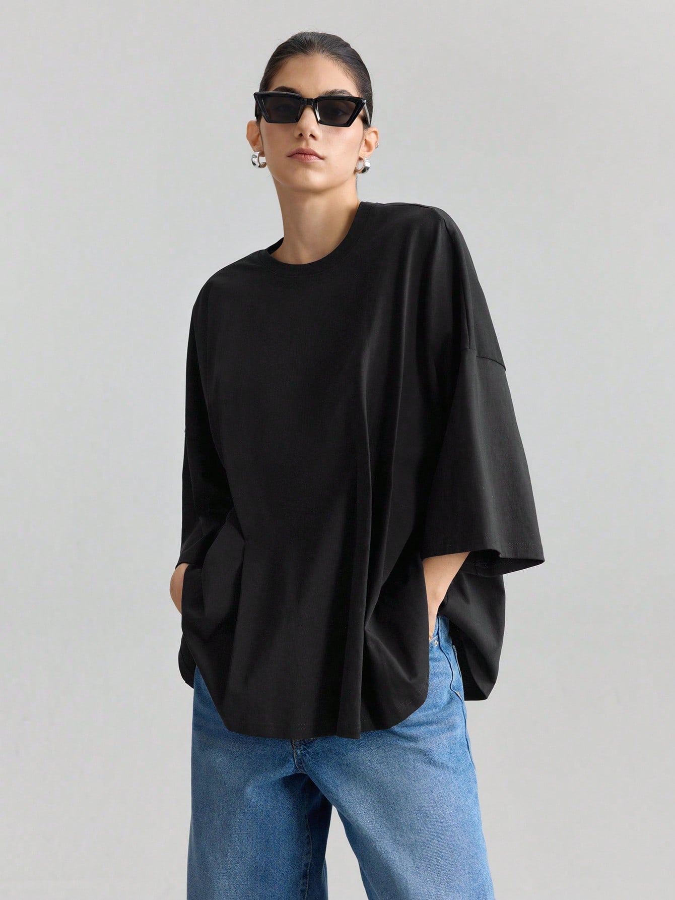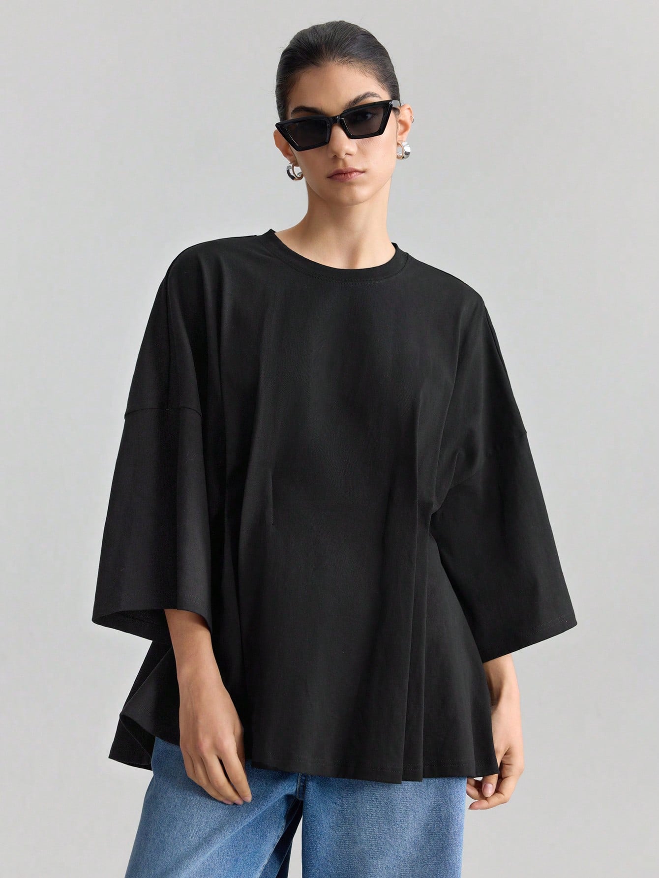 Ontre Women's Oversized Pleated Casual Loose Fit Drop Shoulder Long Sleeve T-Shirt