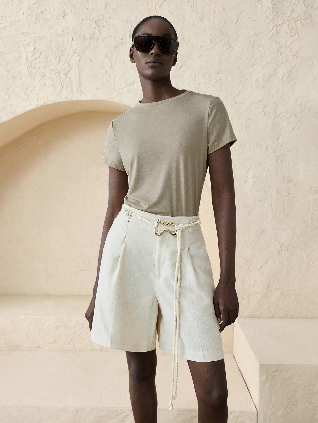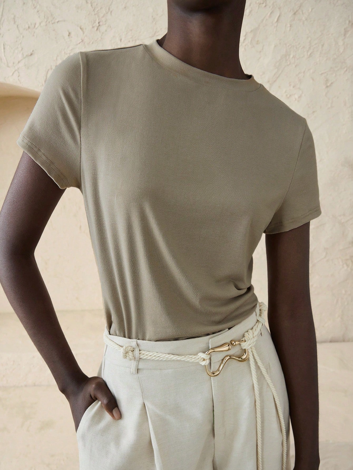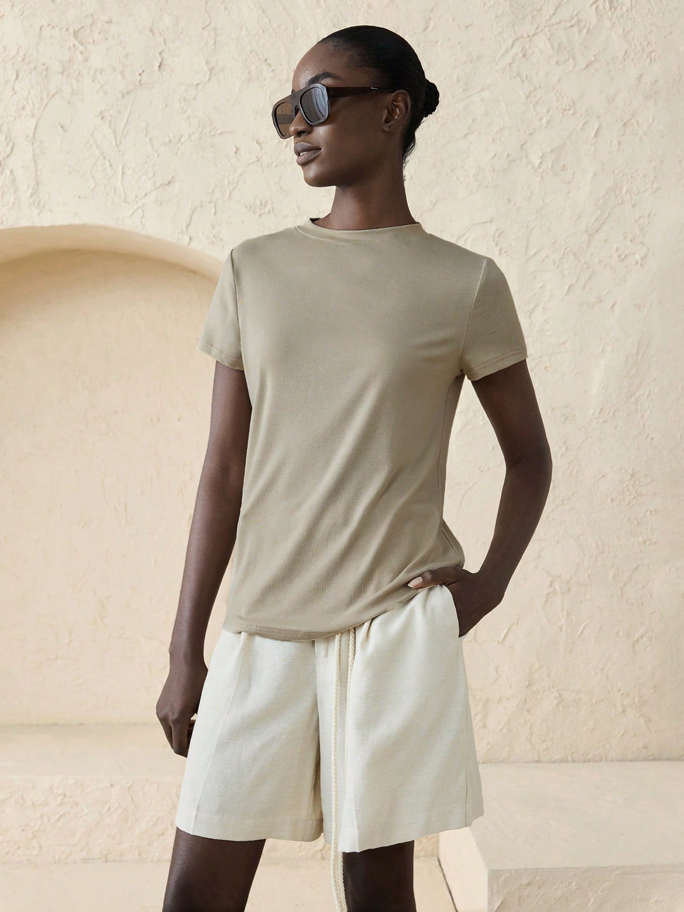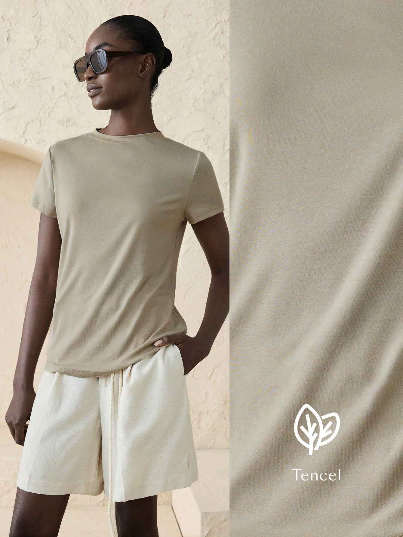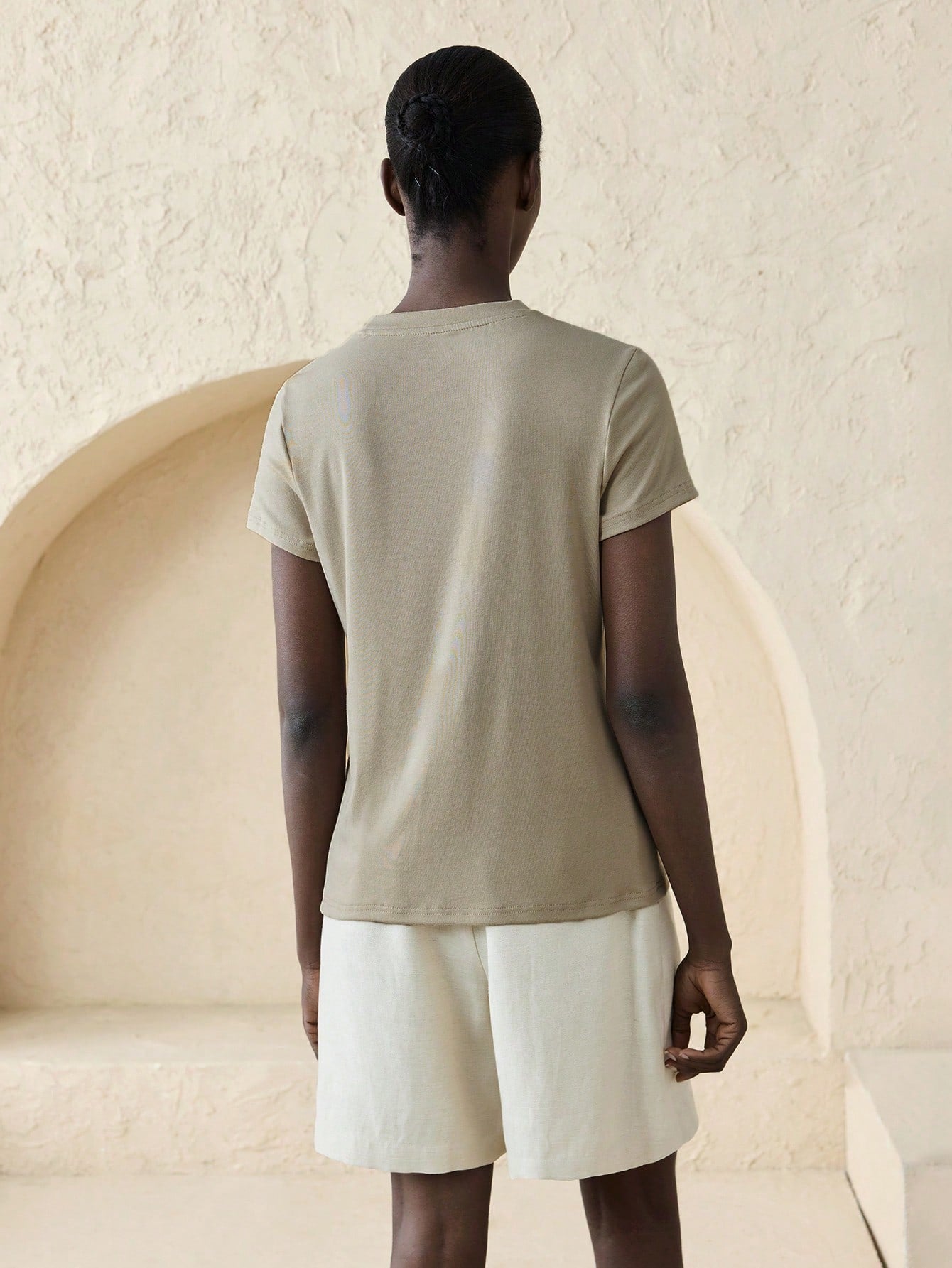 Ontre Women's Sage Green Solid Color Modal Fabric Round Neck Short Sleeve Casual Versatile T-Shirt, Summer