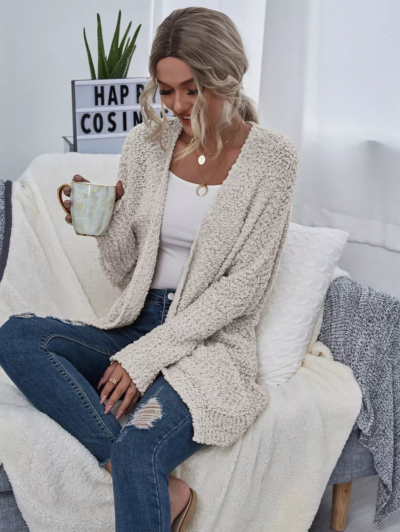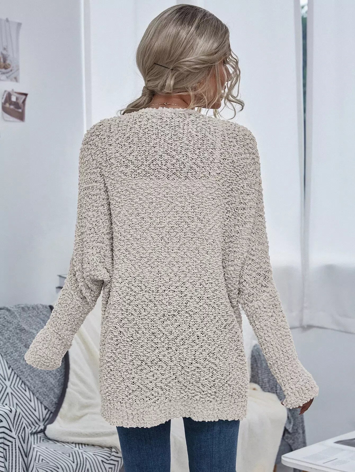 Open Front Popcorn Knit Cardigan