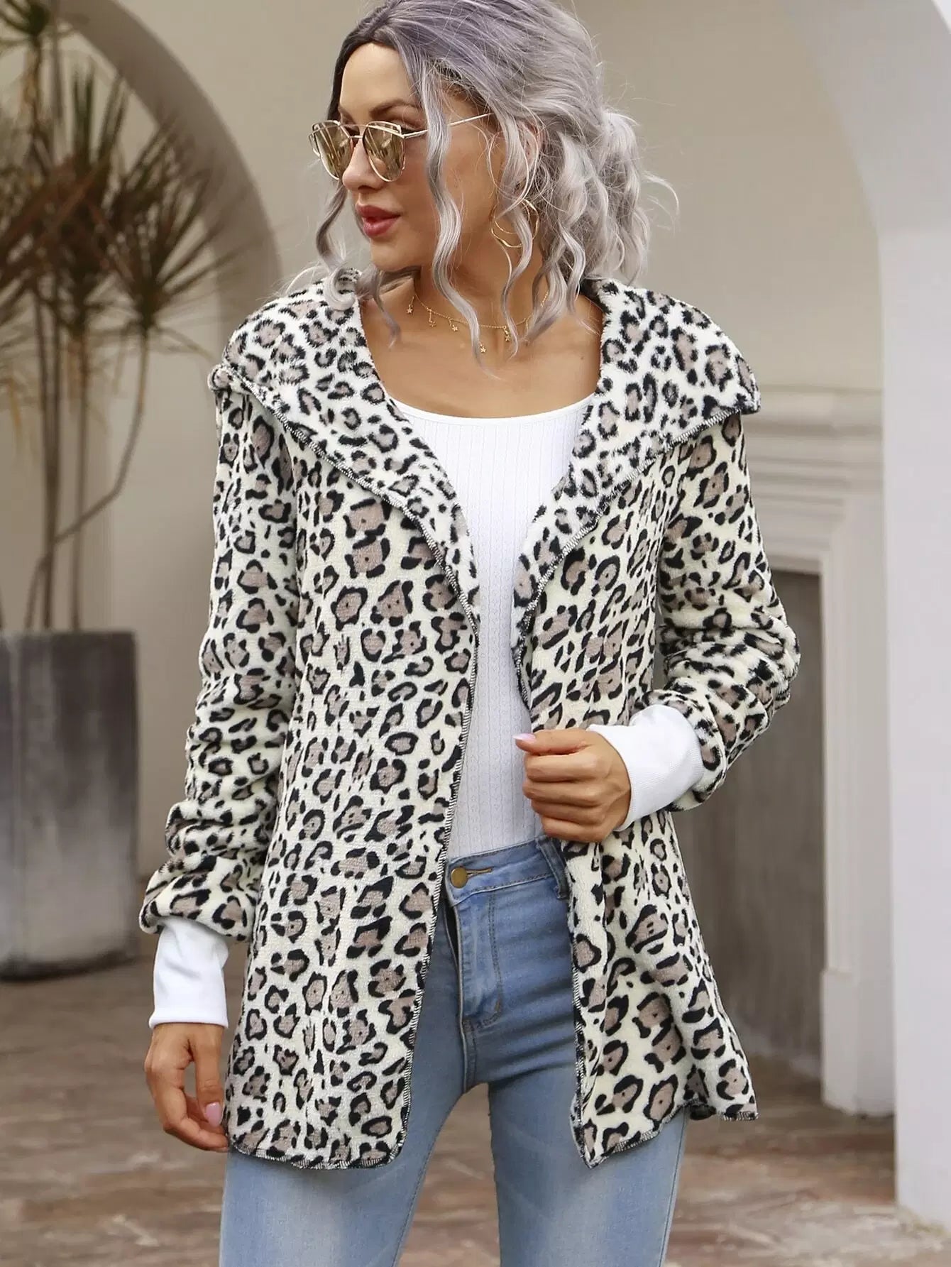Open Front Teddy Hooded Coat