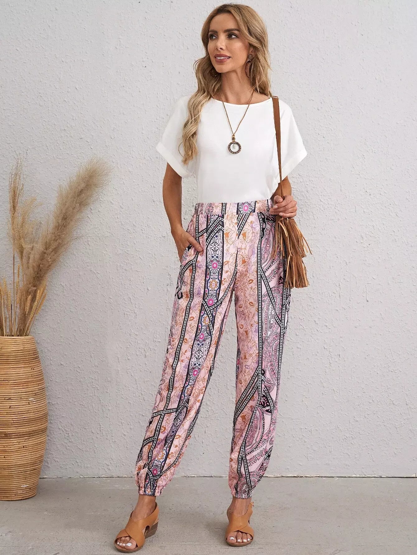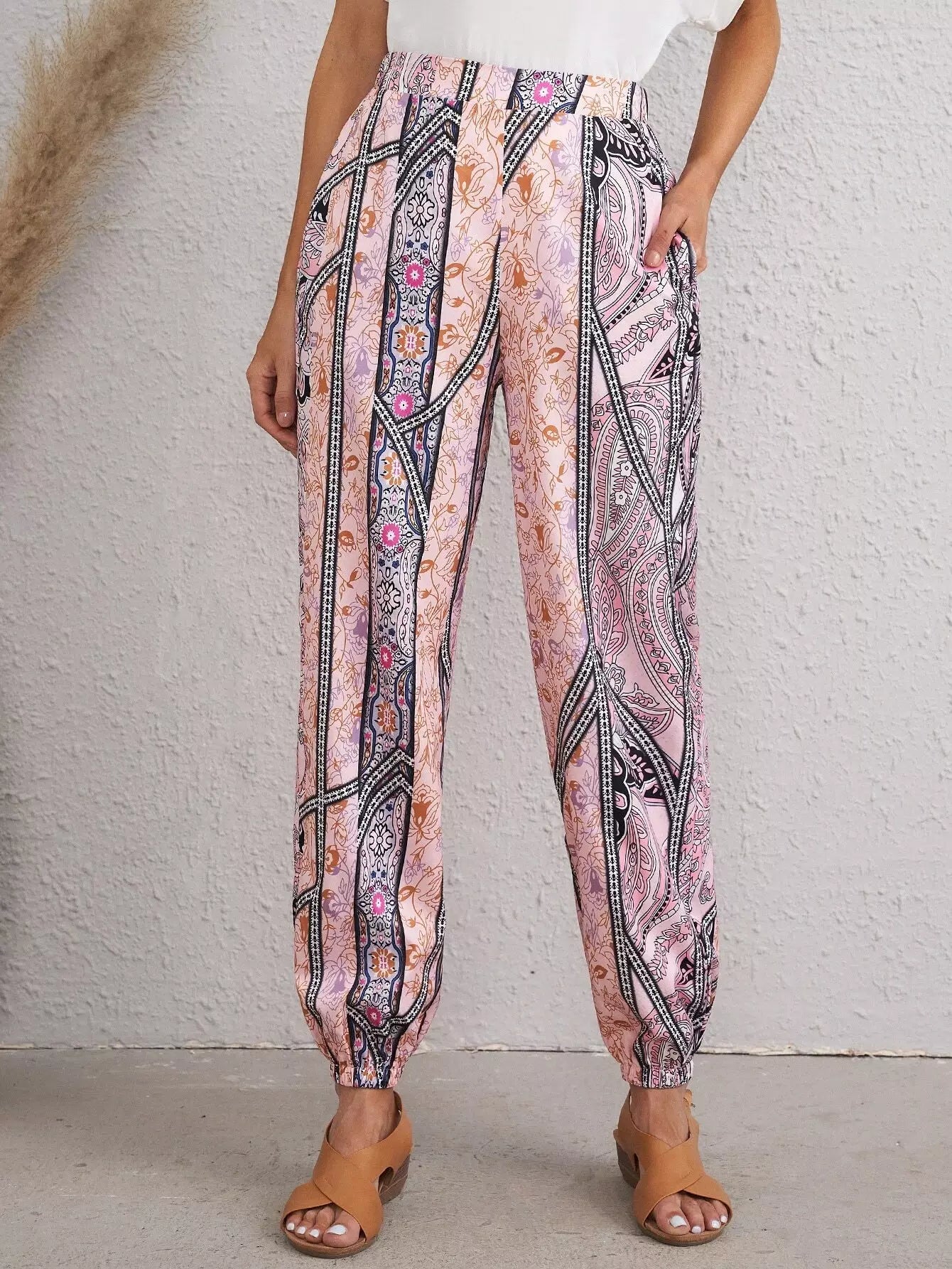 Paisley Print Slant Pocket Pants