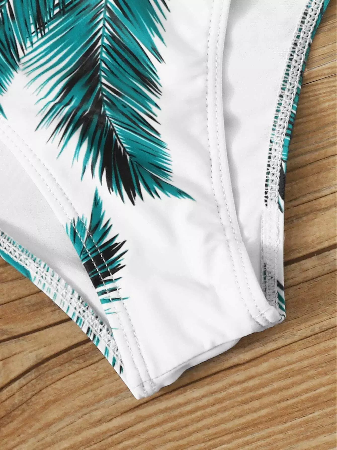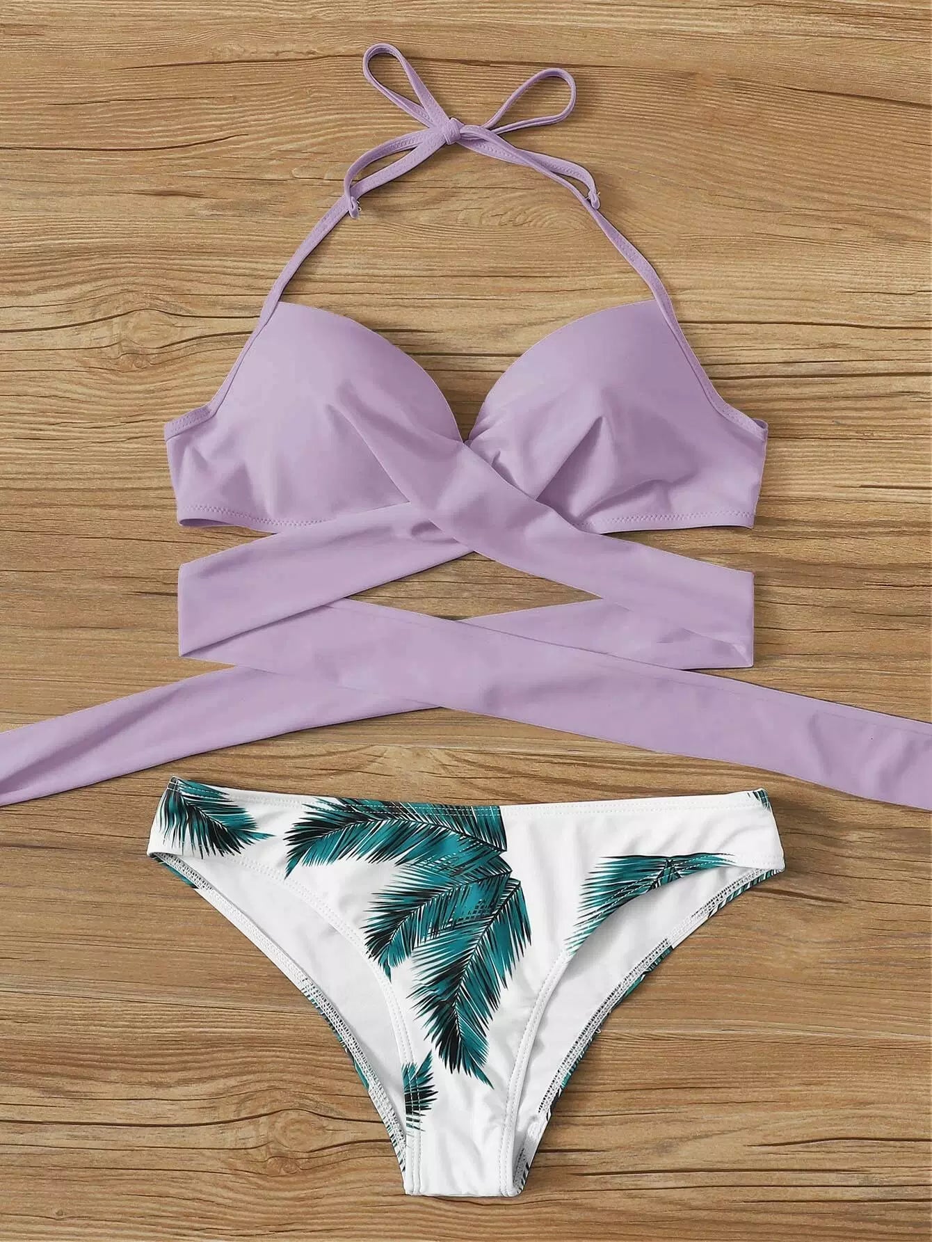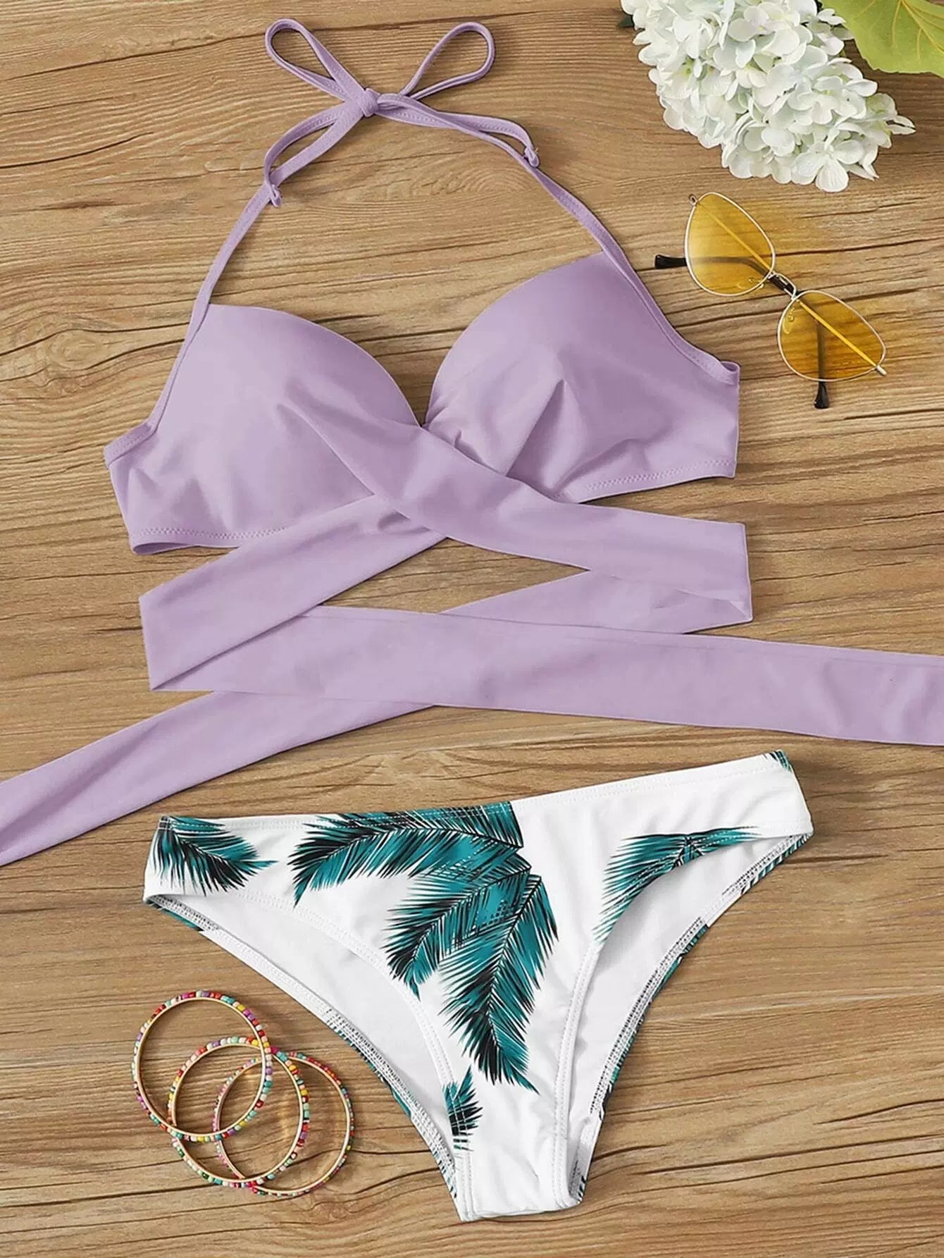Women - Palm Print Wrap Halter Bikini Swimsuit