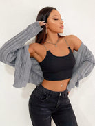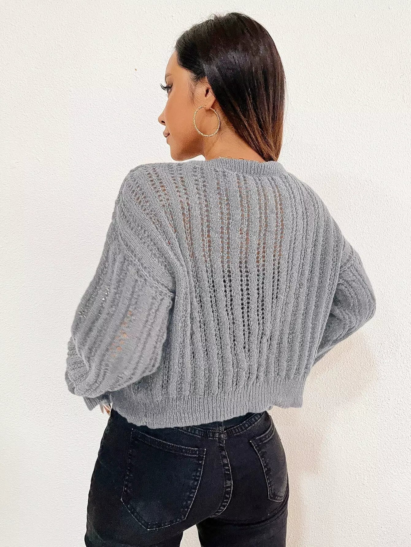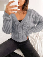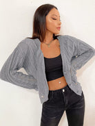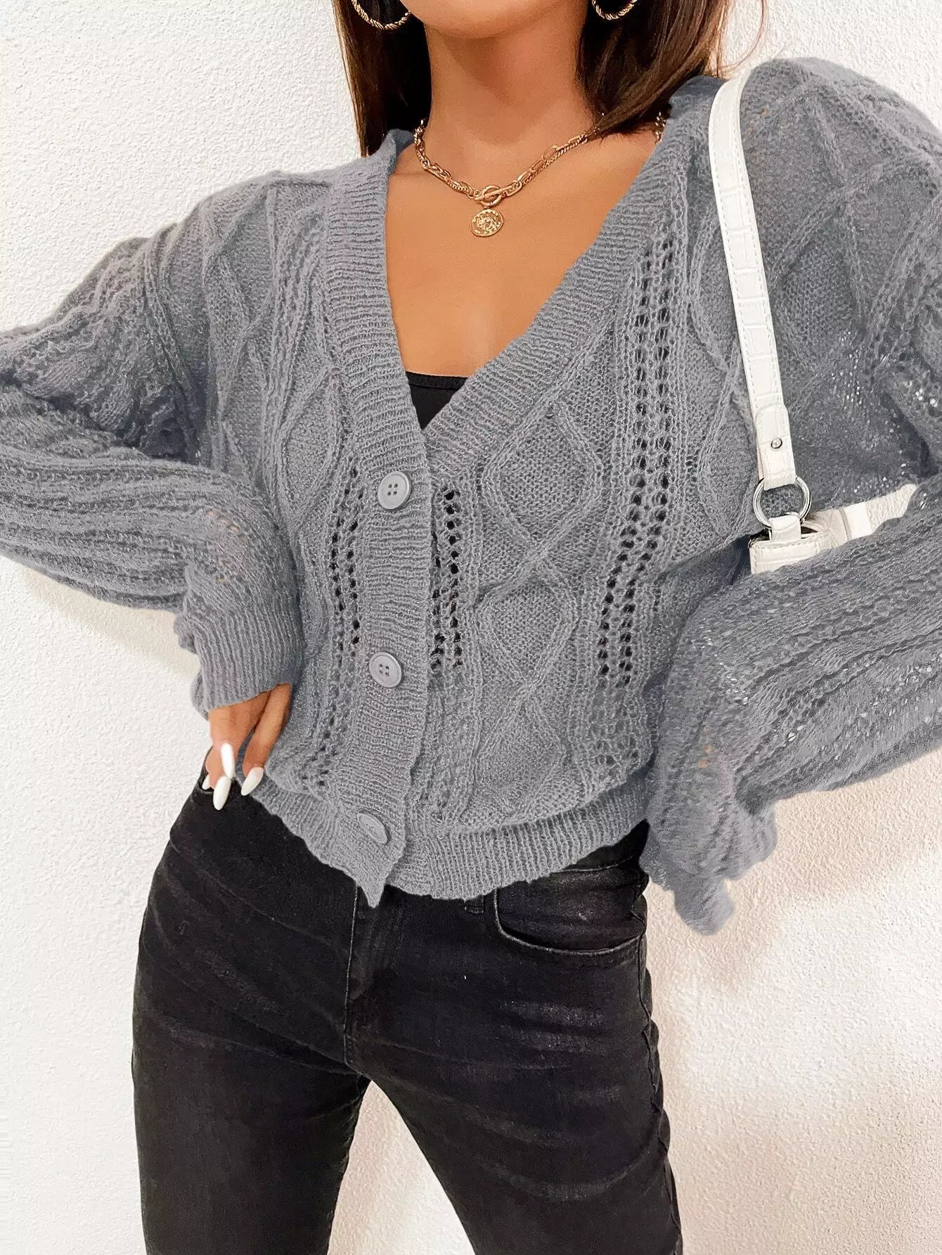 Perforated Knit Button Placket Cardigan