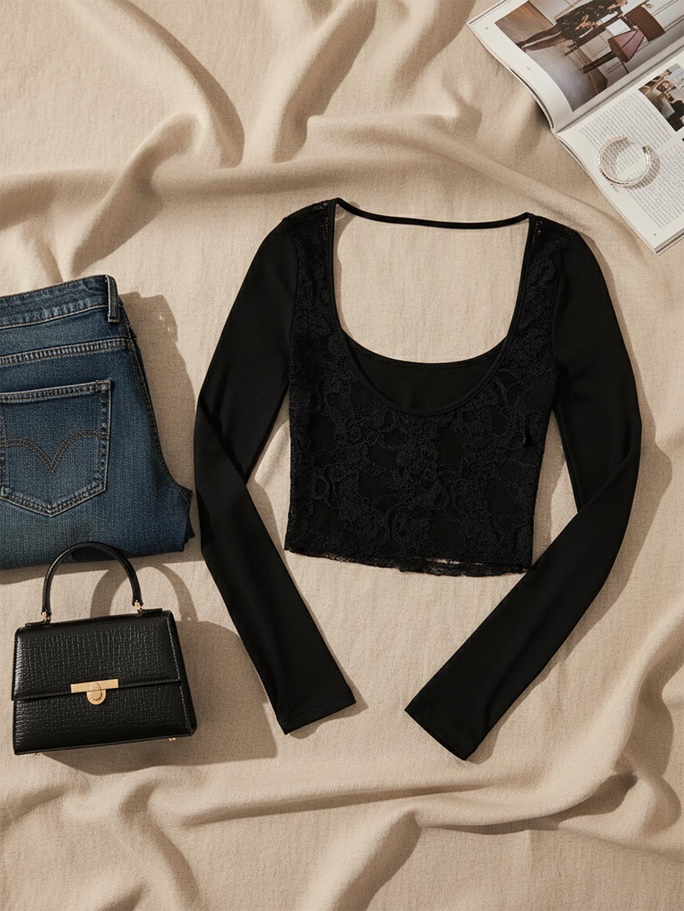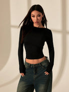 PETITE Backless Lace Stitching Backless Women's T-Shirt Top. Sexy Date Wear Suitable For Summer.