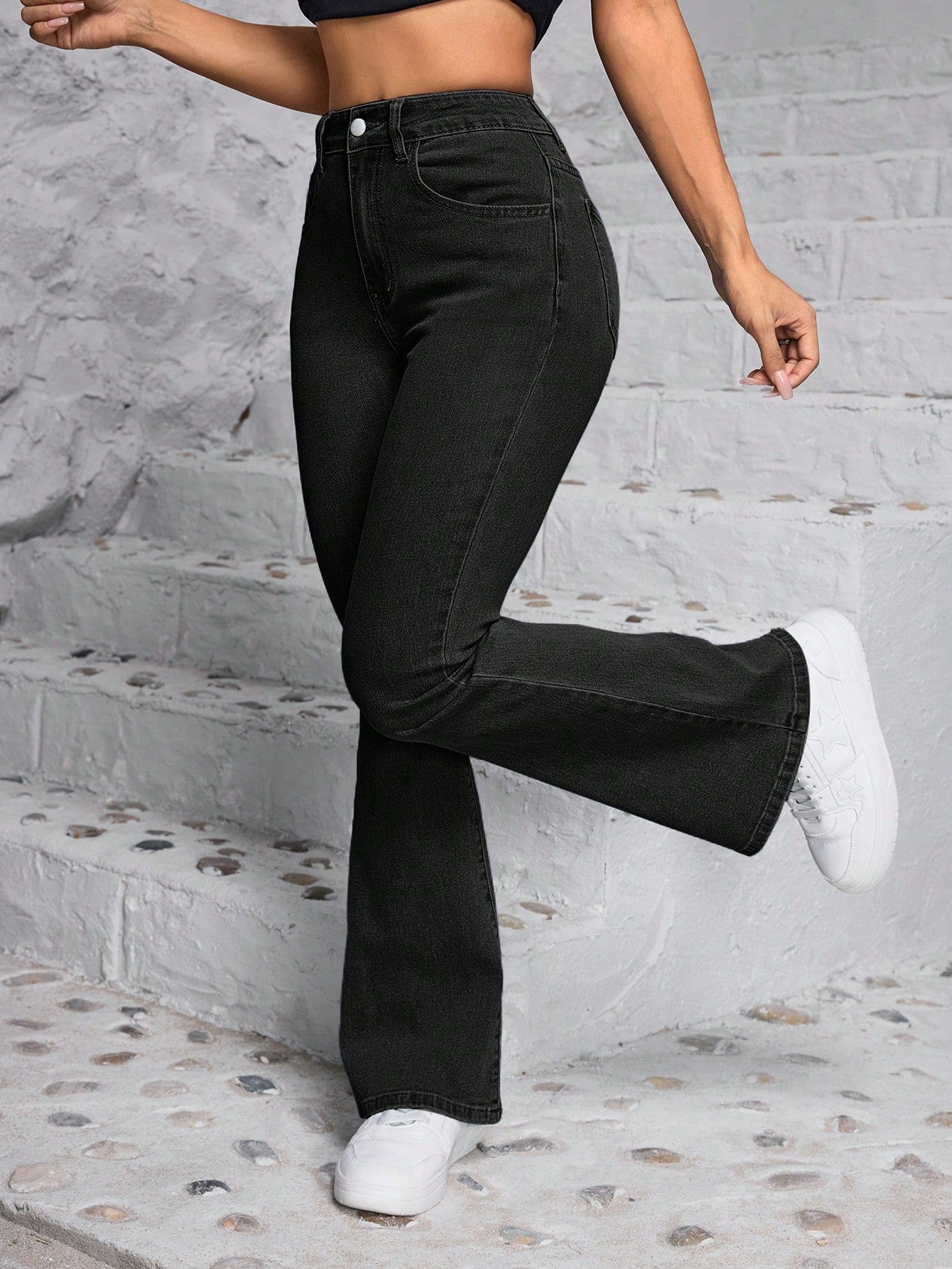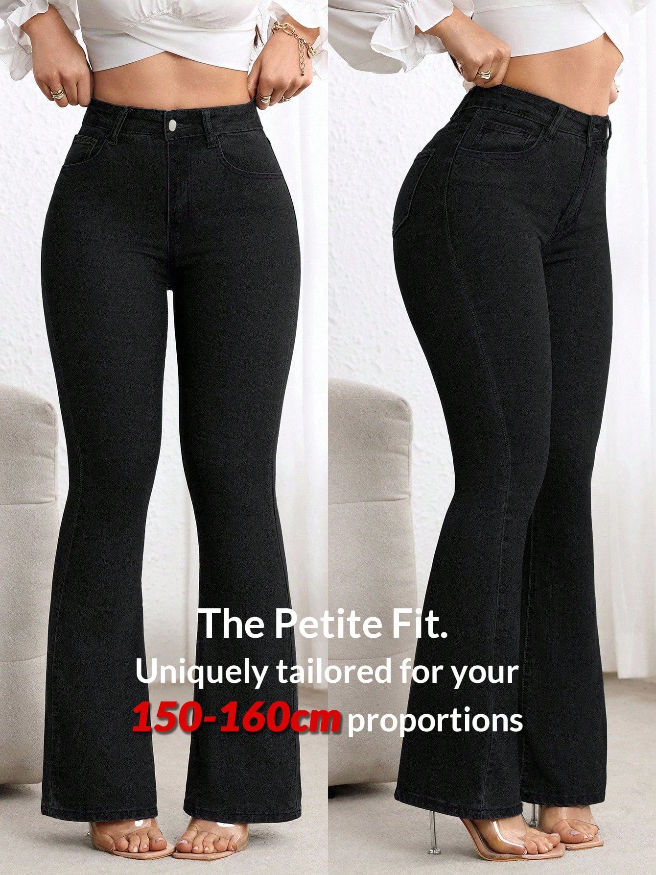 PETITE Casual Versatile Simple Fitted Flare Leg Jeans