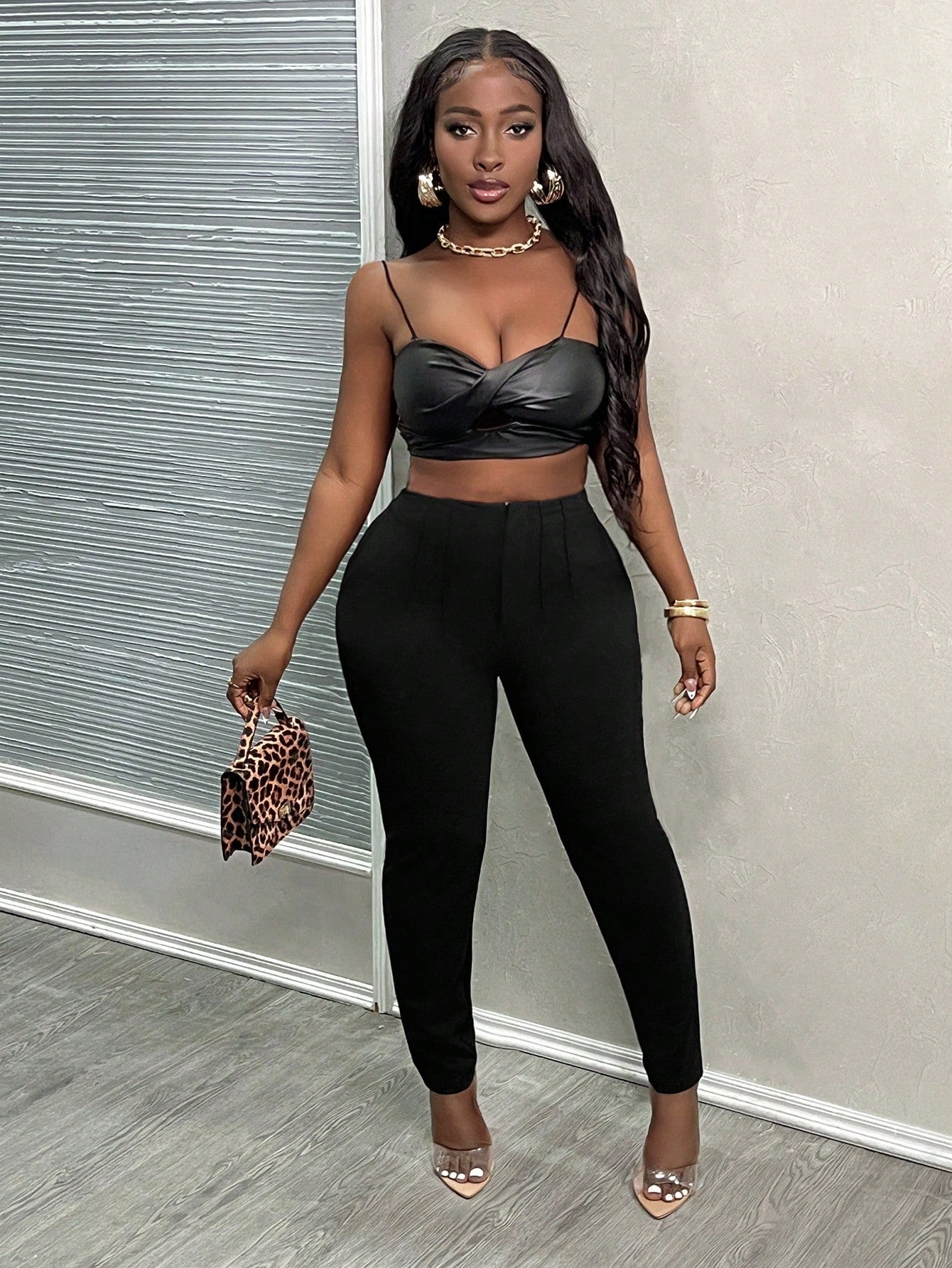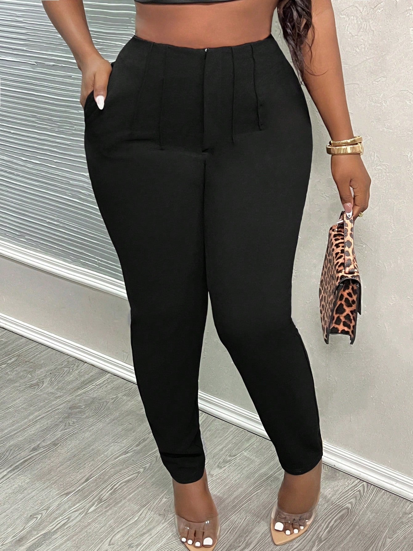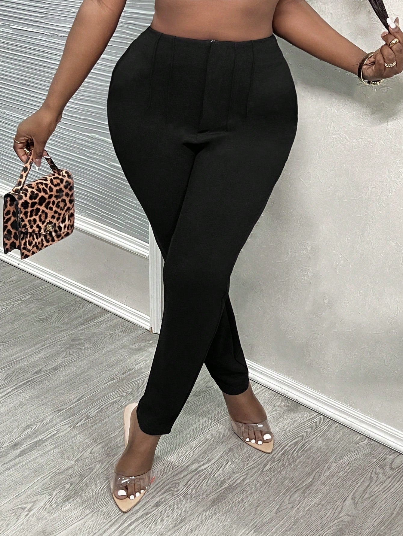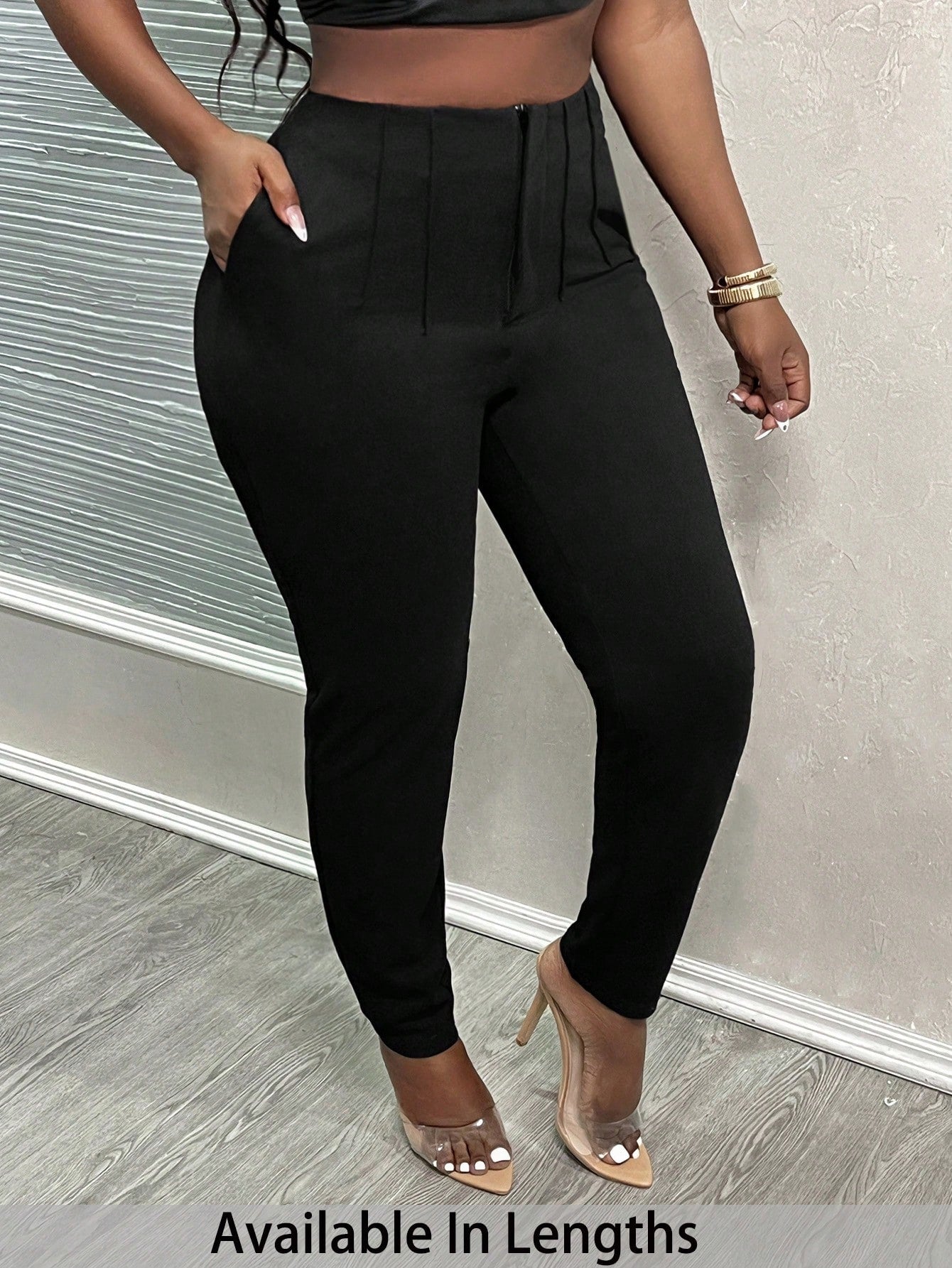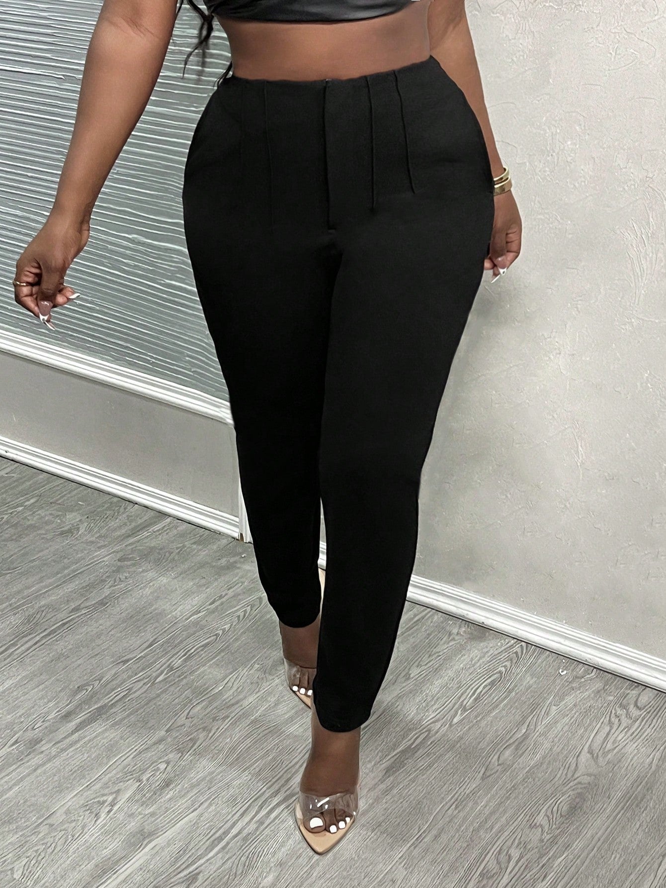 PETITE CURVE Plus Size Petit 2024 New Simple Solid Color Bodycon Toothpick Pleated High Waist Work Cropped