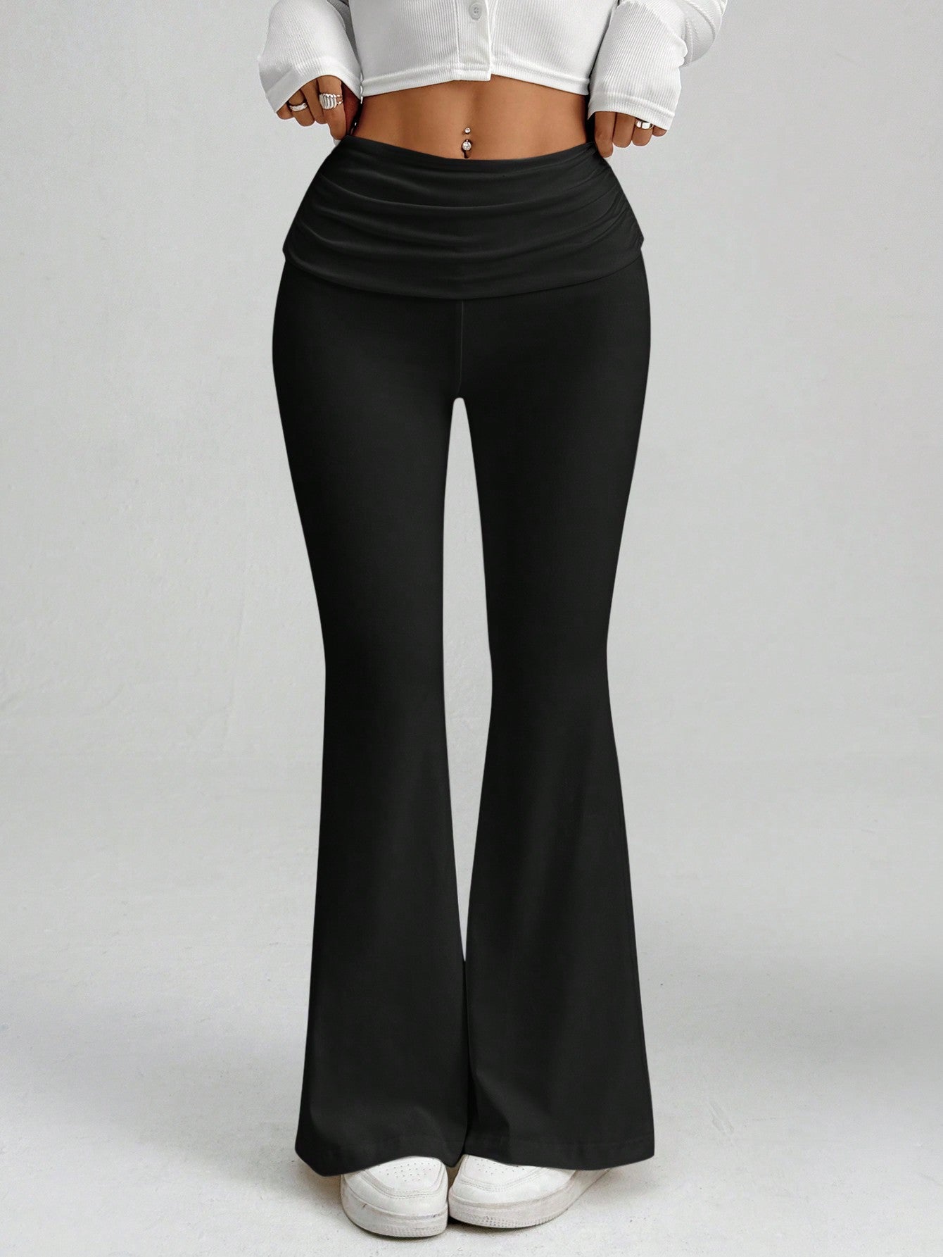 PETITE White Y2k Solid Ruched Flare Leg Pants Flare Leggings