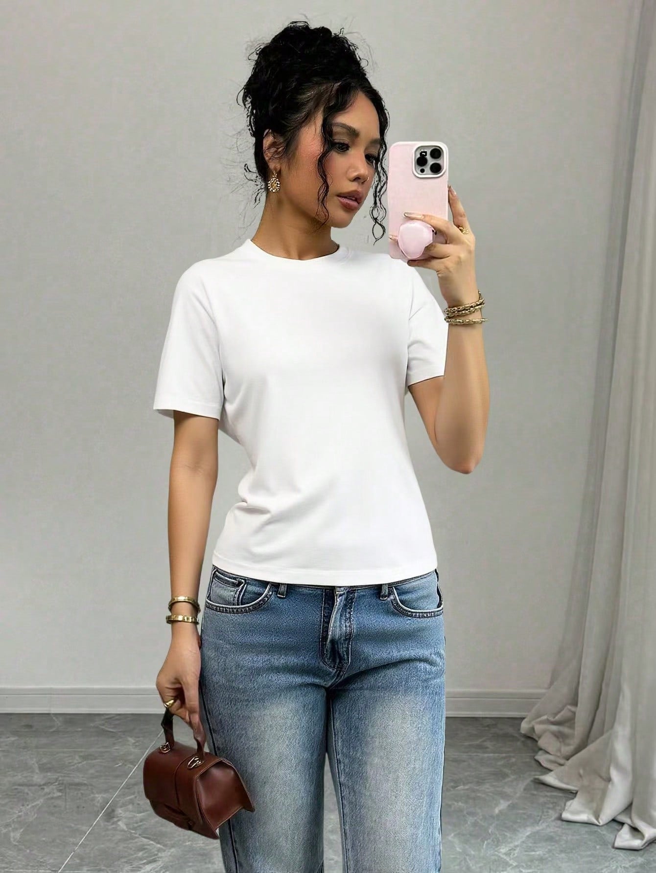 PETITE Women's Casual Versatile Solid Color Short Sleeve T-Shirt