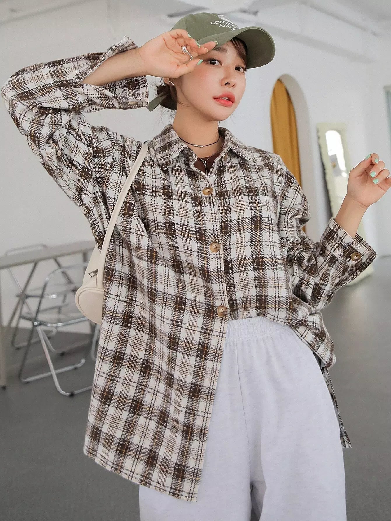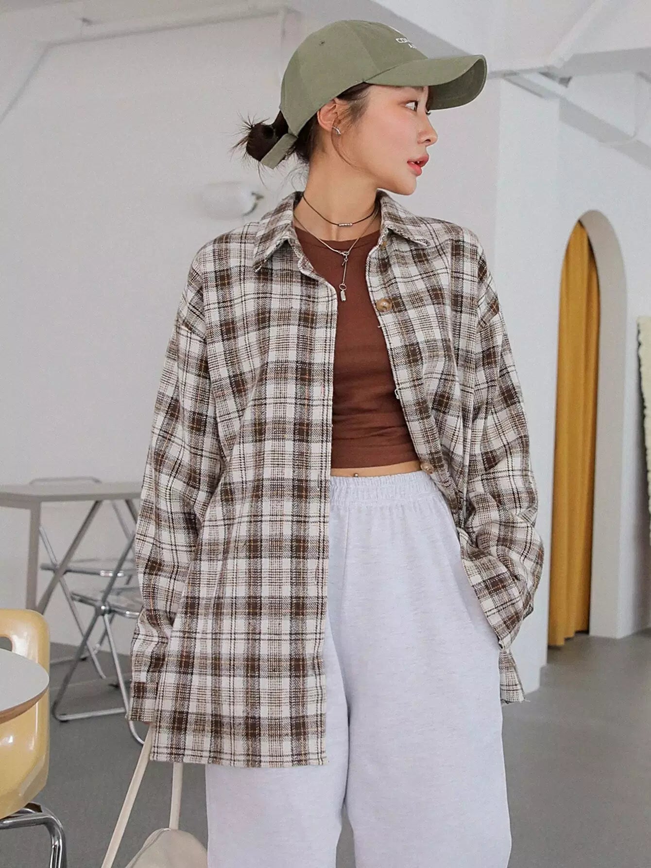 Plaid Drop Shoulder Blouse